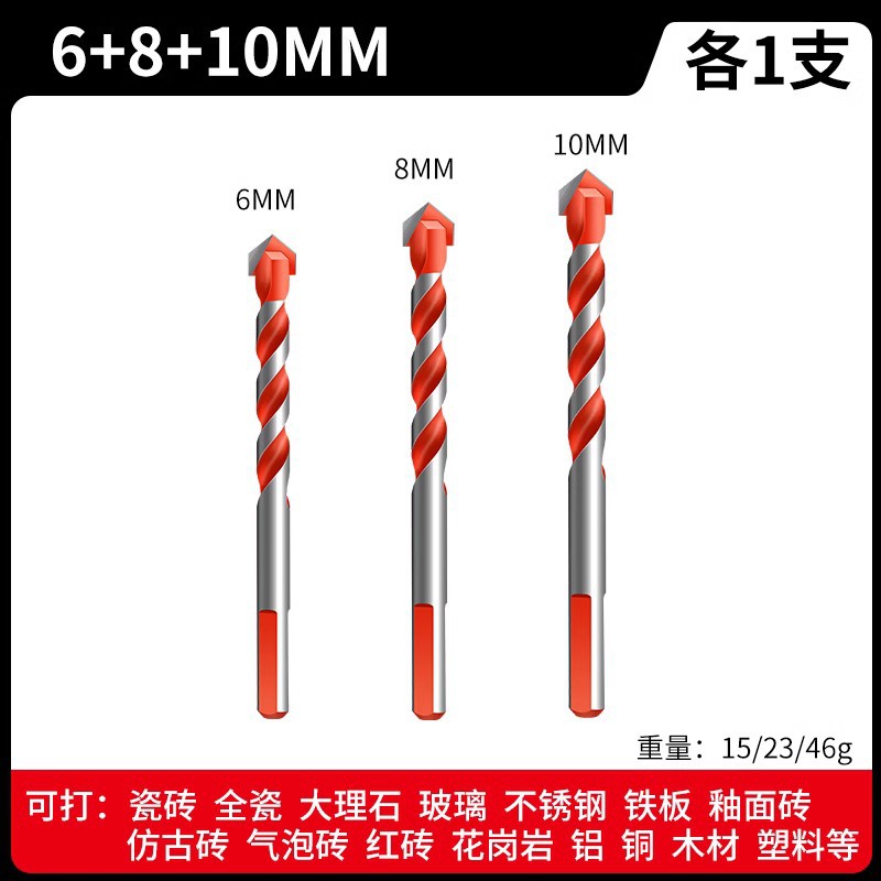 타일 드릴 비트 콘크리트 구멍 드릴링 오버 로드 드릴 합금 삼각형 드릴 6mm 유리 시멘트 Daquan 핸드 드릴