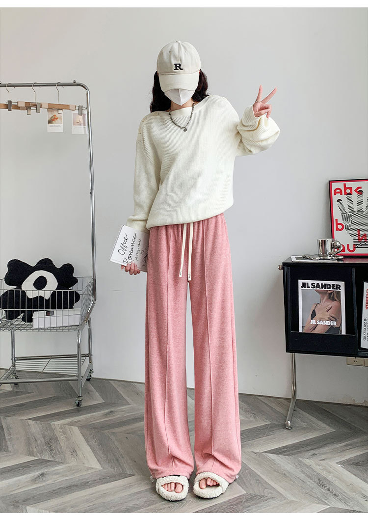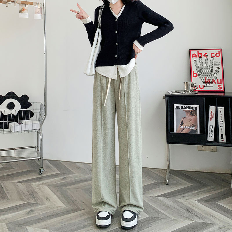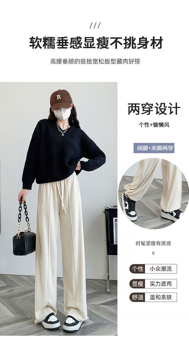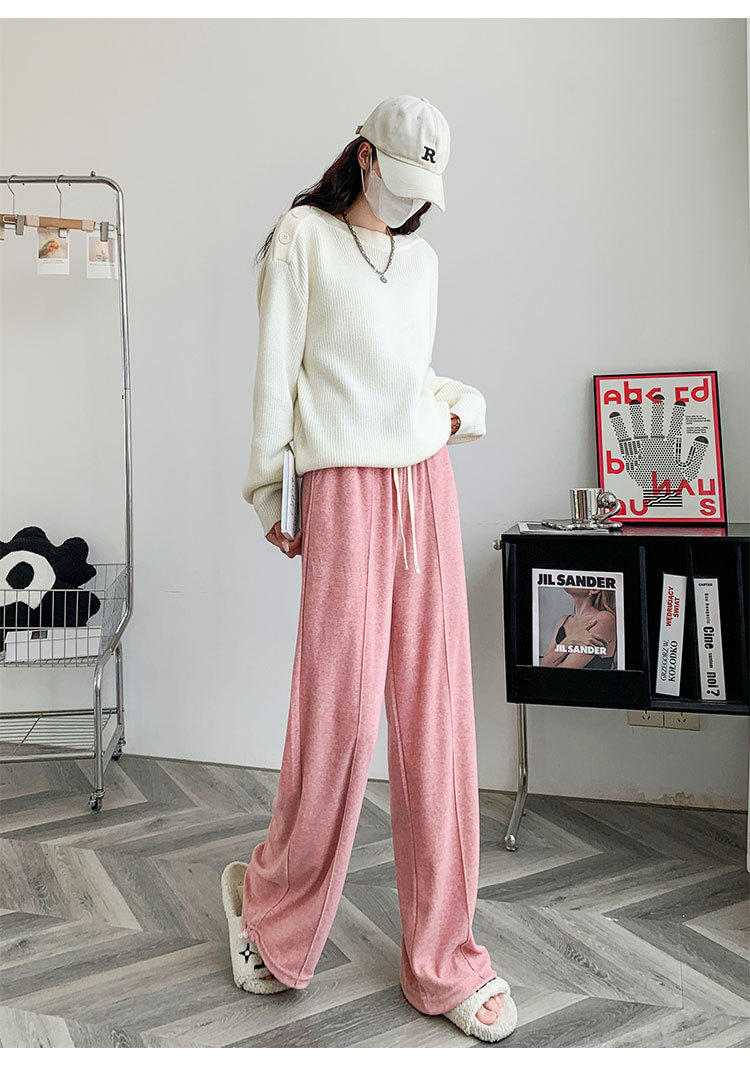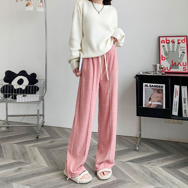 가을과 겨울 찹쌀 바지 입고 와이드 레그 바지 여자의 가을 하이 웨이스트 느슨한 캐주얼 바지 게으른 스타일 니트 바지스토어 가기