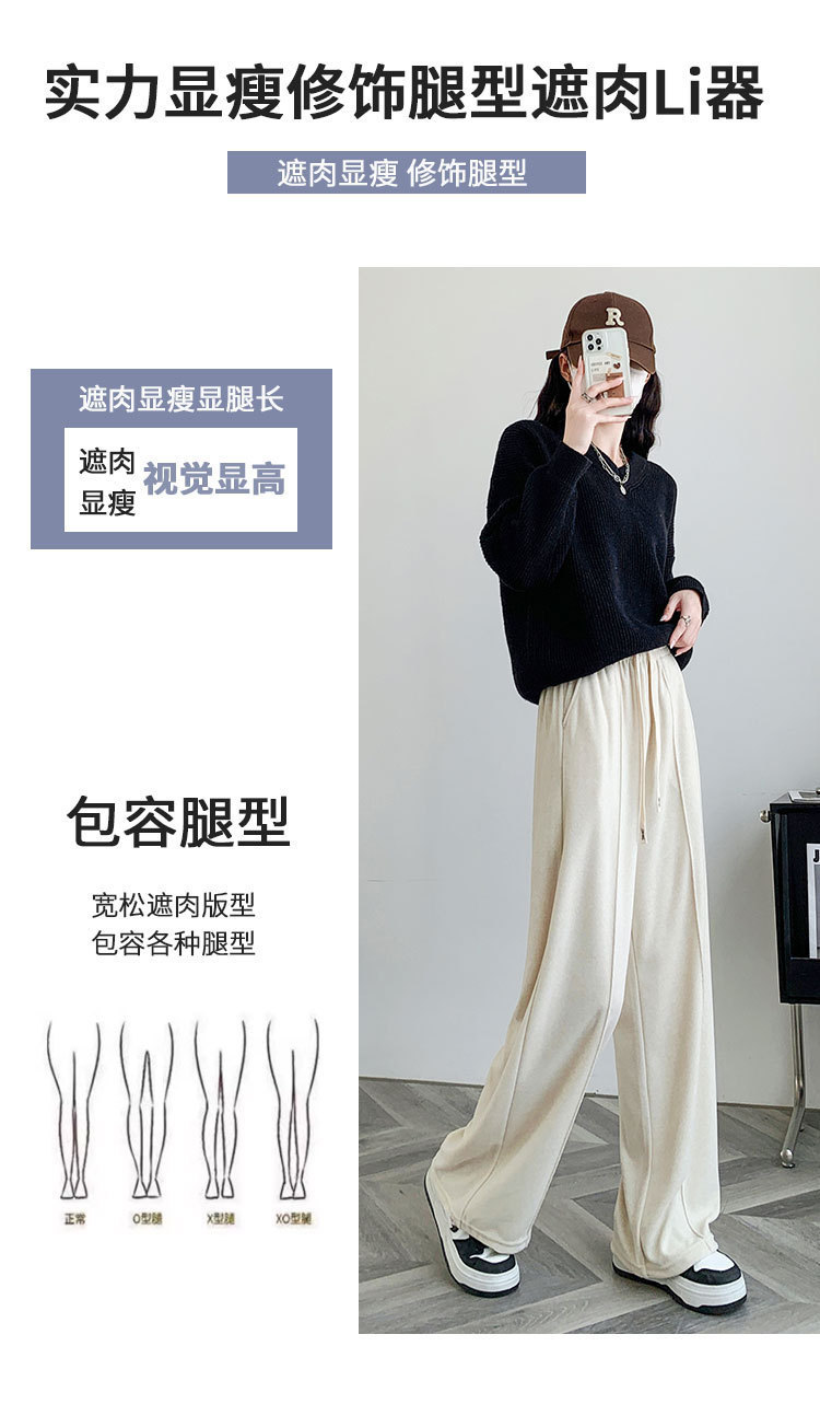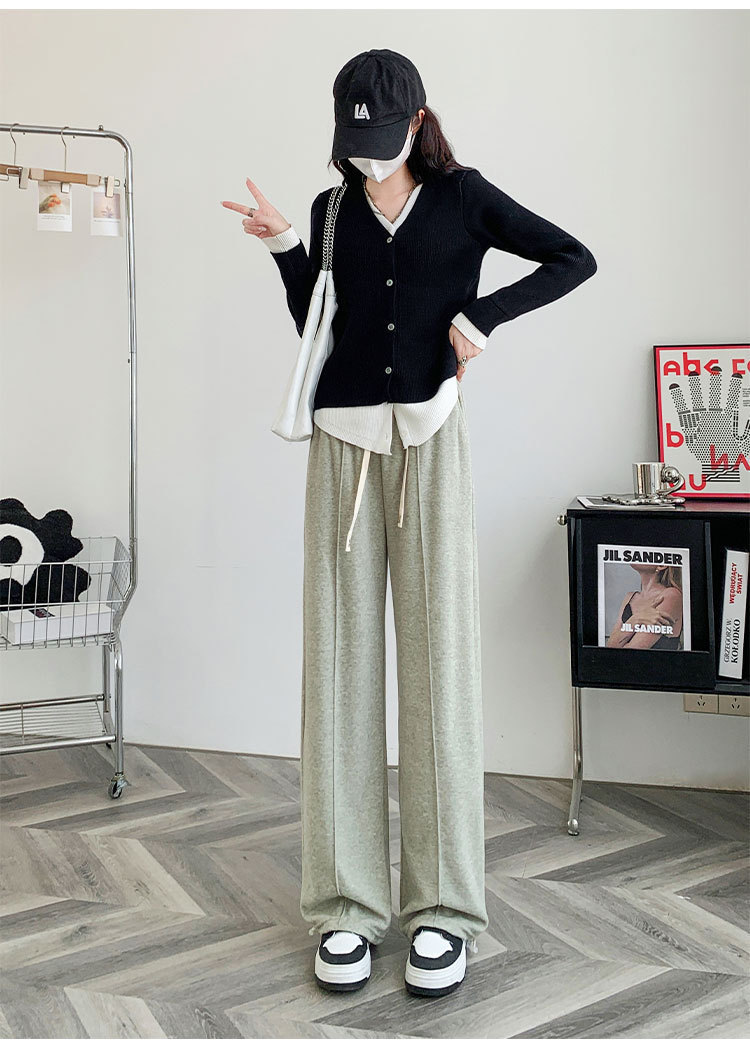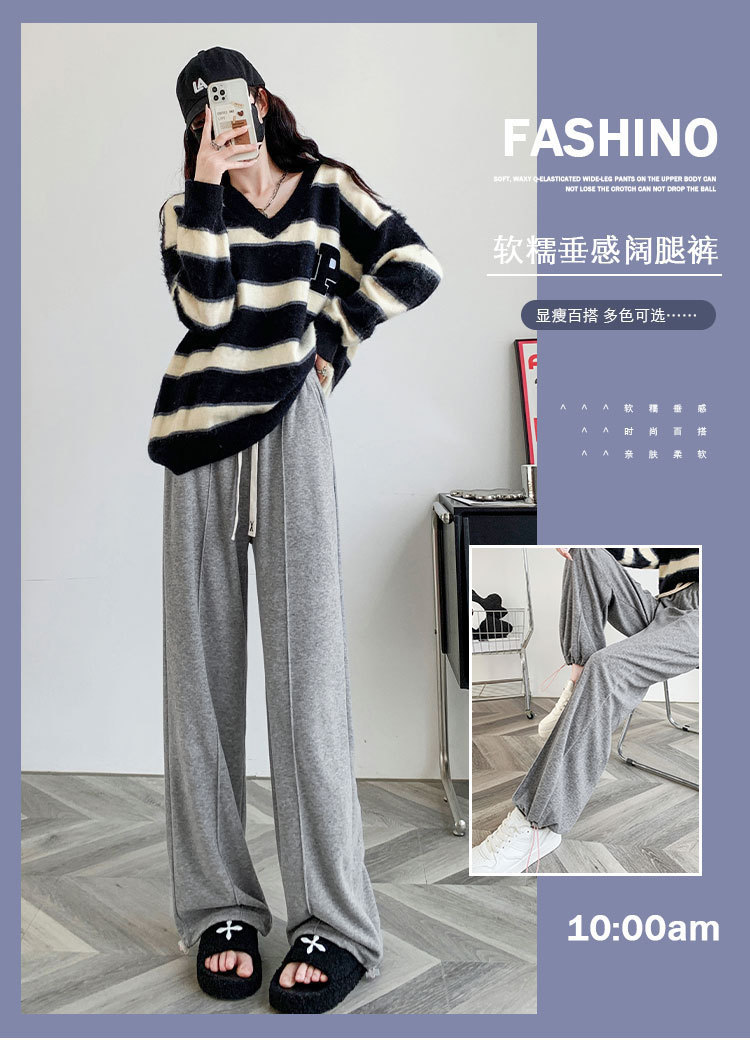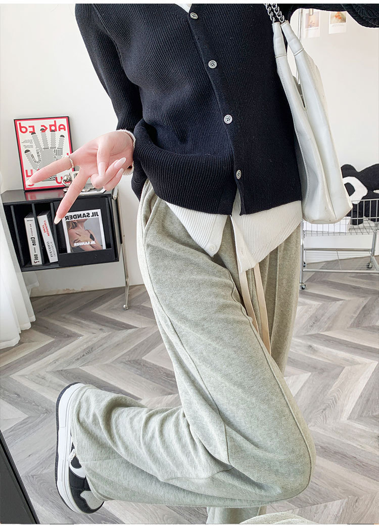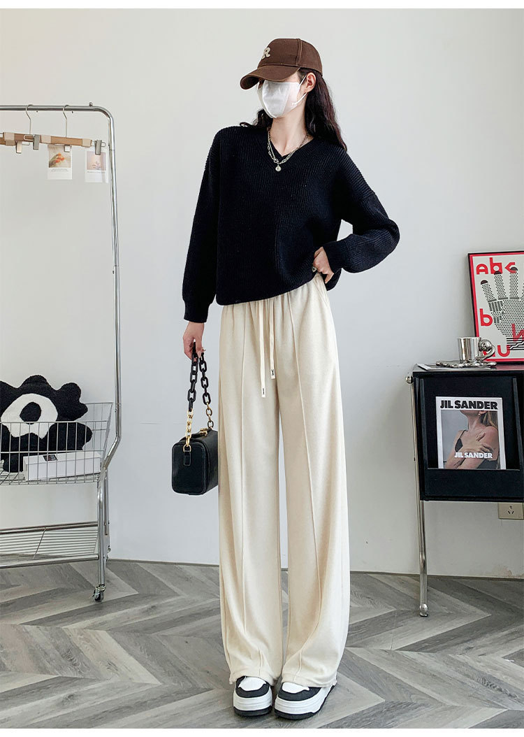 가을과 겨울 찹쌀 바지 입고 와이드 레그 바지 여자의 가을 하이 웨이스트 느슨한 캐주얼 바지 게으른 스타일 니트 바지스토어 가기