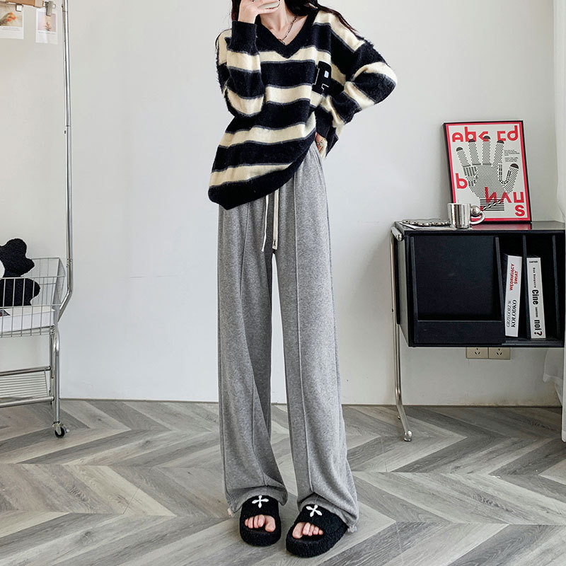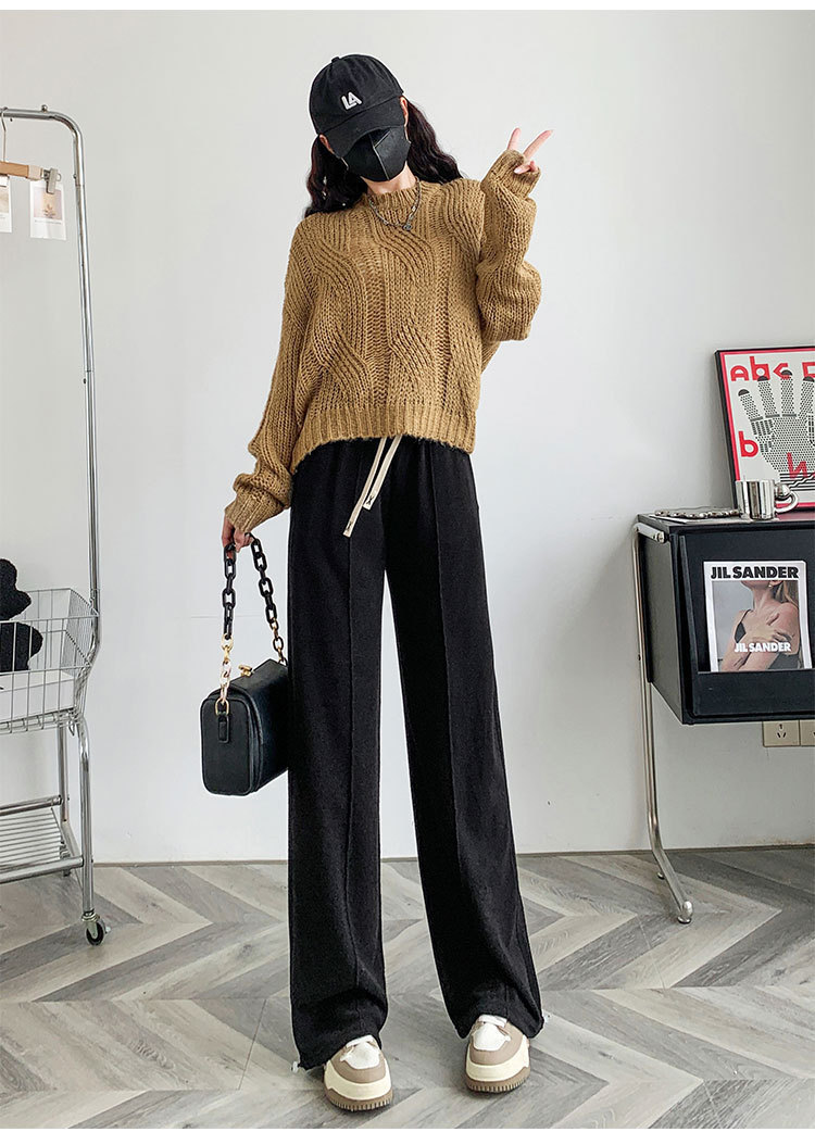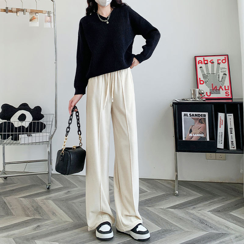 가을과 겨울 찹쌀 바지 입고 와이드 레그 바지 여자의 가을 하이 웨이스트 느슨한 캐주얼 바지 게으른 스타일 니트 바지