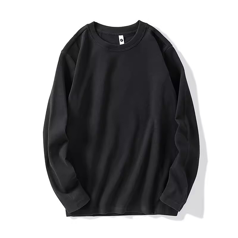 양면 벨벳 크루 넥 보텀 셔츠 스웨터가있는 남성용 긴팔 티셔츠 남성용 고급 감각 셔츠 머리카락 세대스토어 가기
