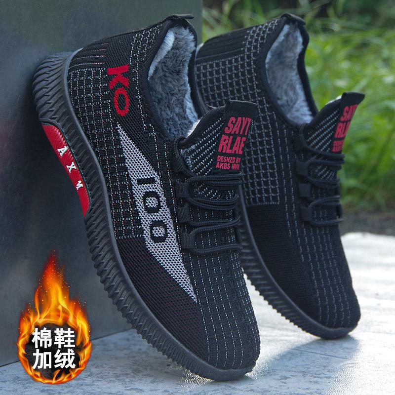 면화 남성용 겨울 슬립 온 기모 두꺼운 따뜻한 남성용 소프트 솔 경량 가을 및 겨울 새로운 스포츠 캐주얼 신발스토어 가기