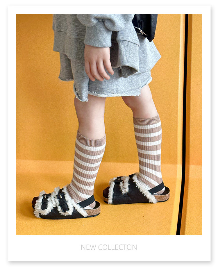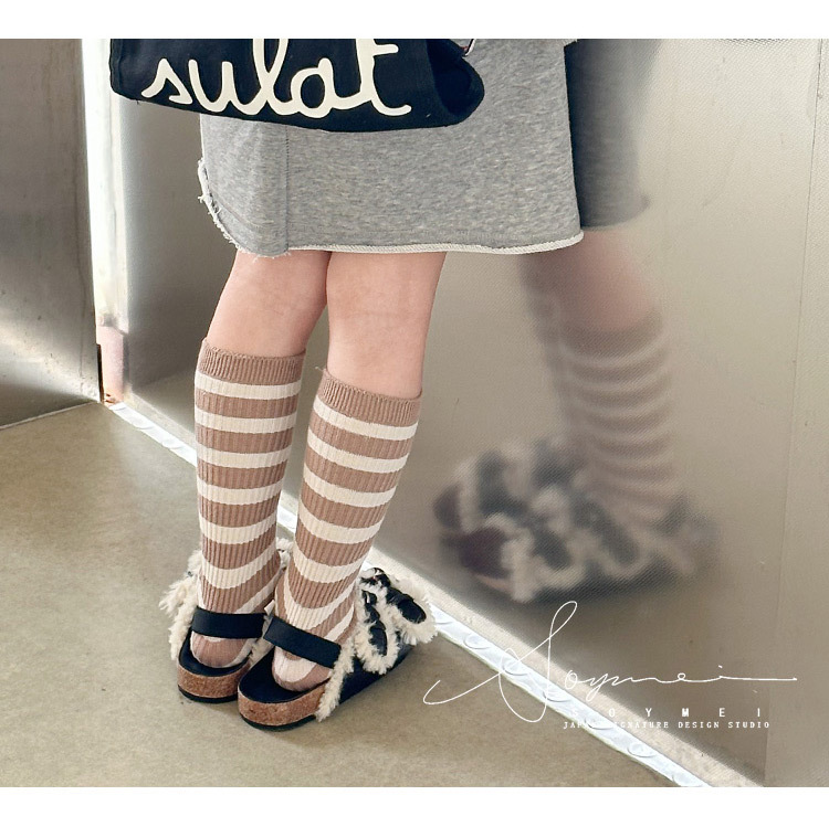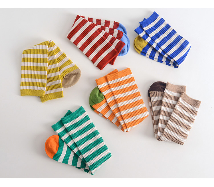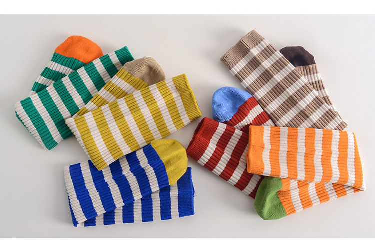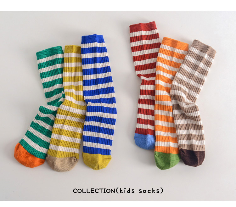 어린이 다채로운 스트라이프 면 양말 봄과 가을 한국 스타일 대비 색상 세련된 세련된 양말 여아 얕은 양말 아기 스택 양말스토어 가기