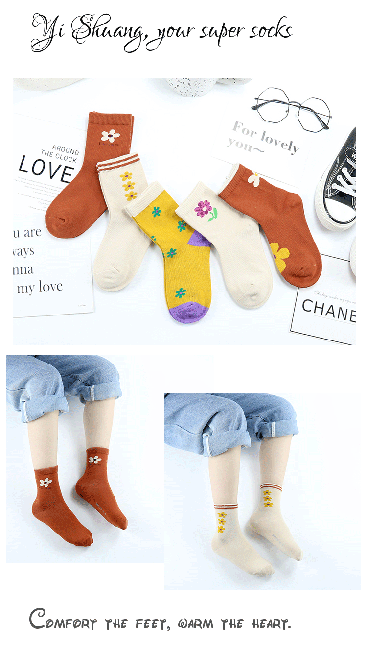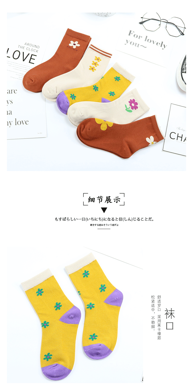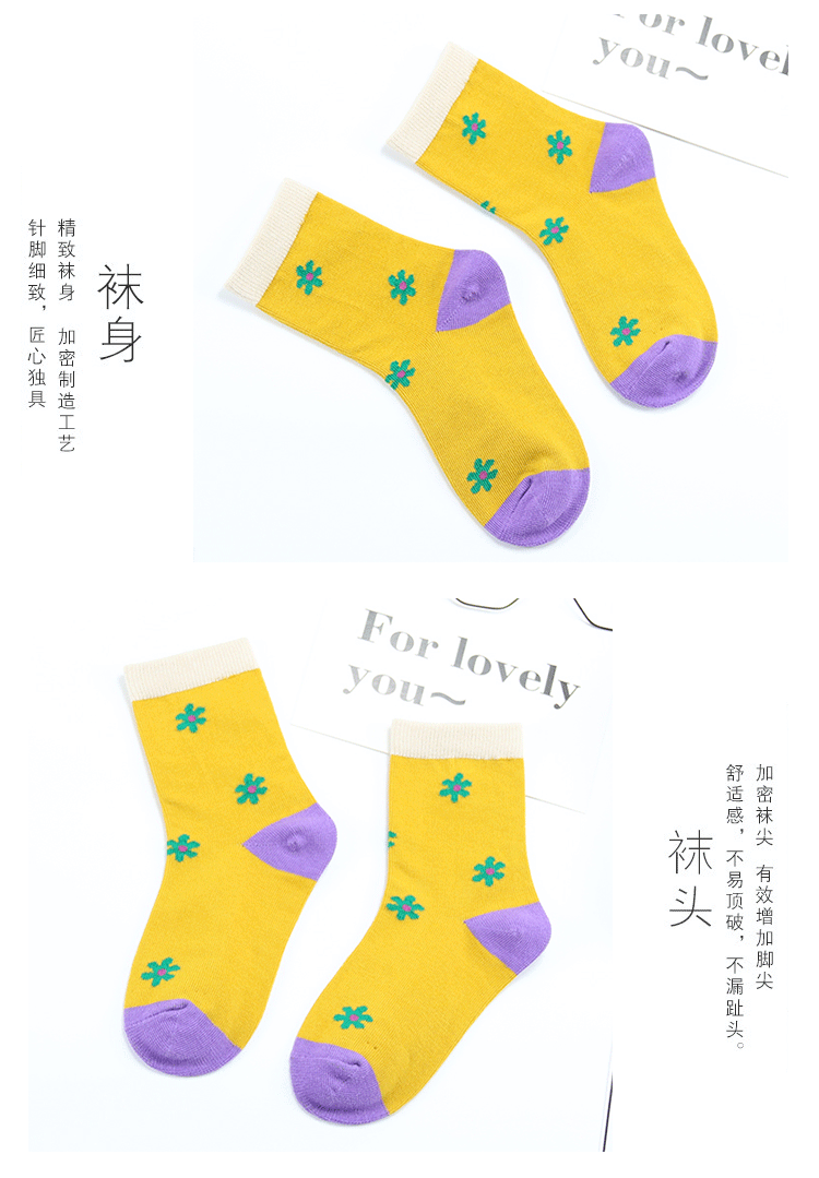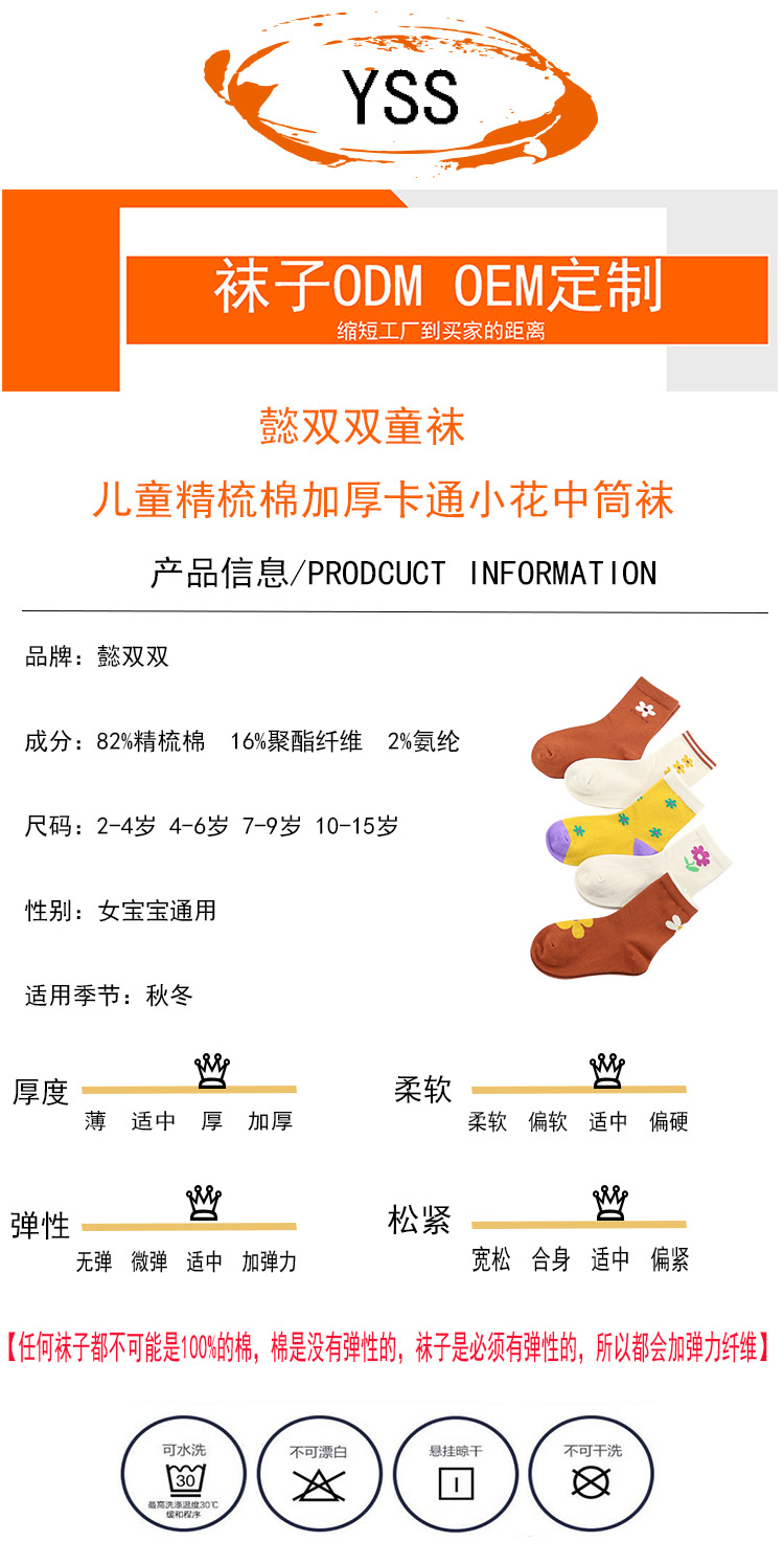 이순신 쌍 어린이 양말 가을과 겨울 새로운 두꺼운 만화 꽃 중간 양말 빗질 면 소녀 한국식 어린이 양말스토어 가기