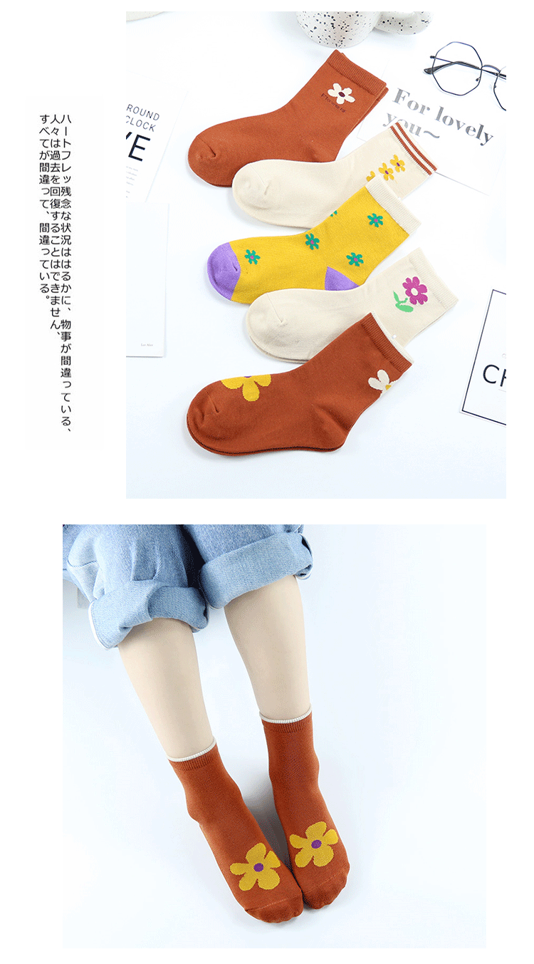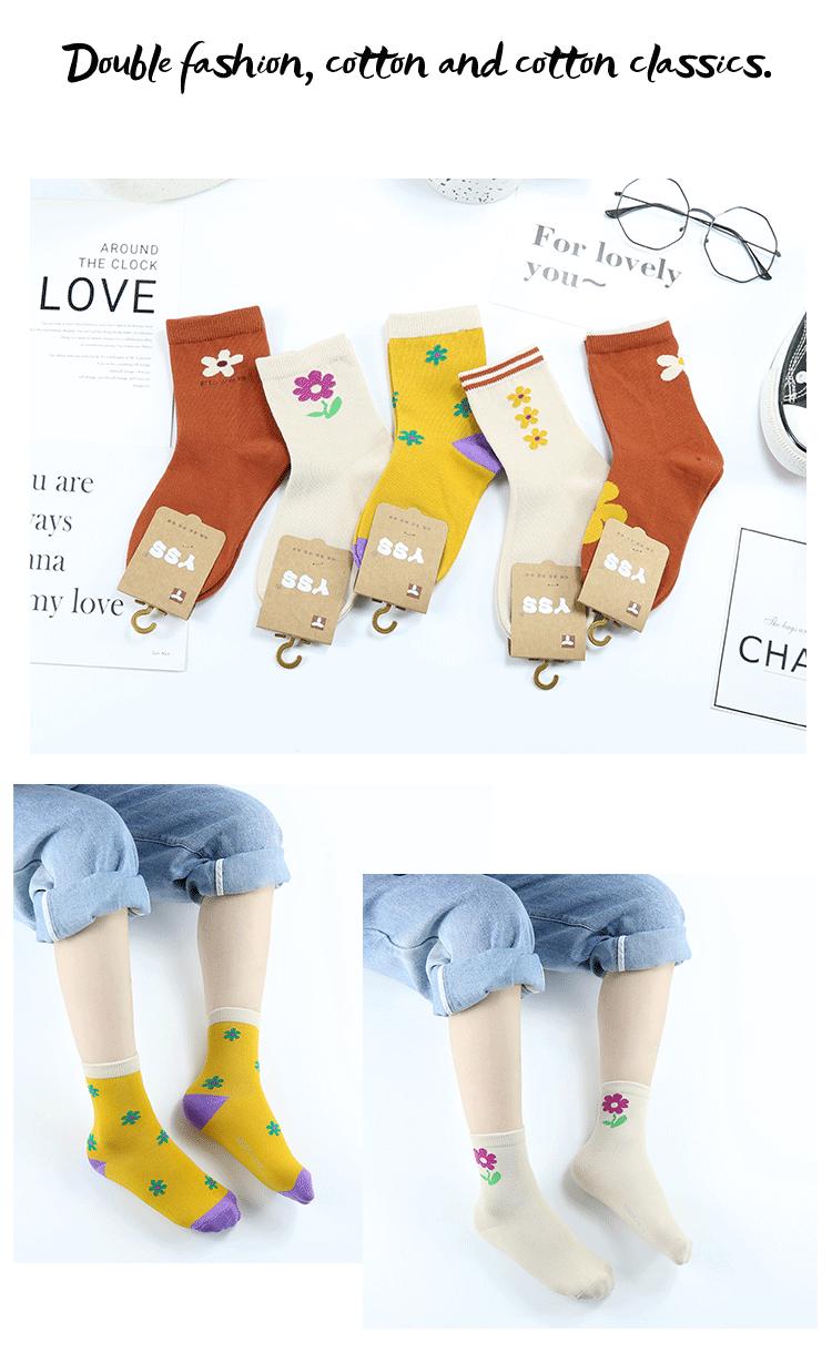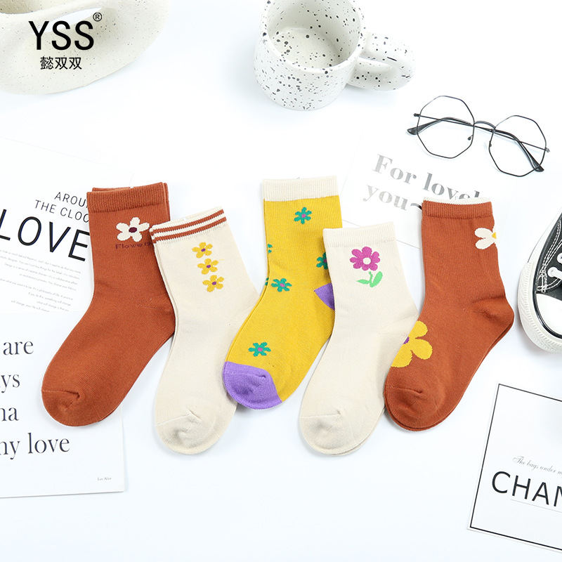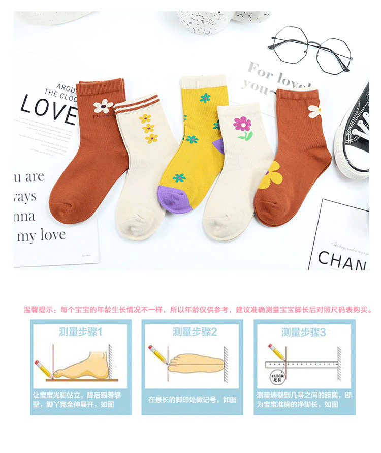 이순신 쌍 어린이 양말 가을과 겨울 새로운 두꺼운 만화 꽃 중간 양말 빗질 면 소녀 한국식 어린이 양말스토어 가기