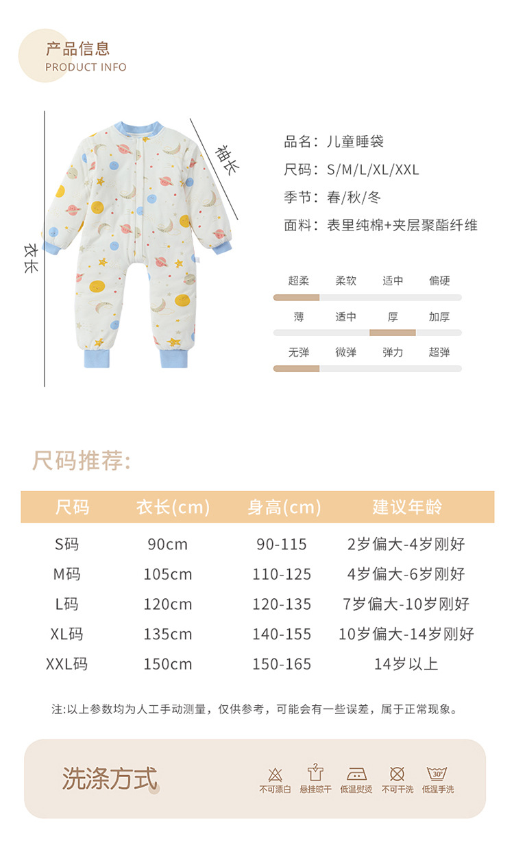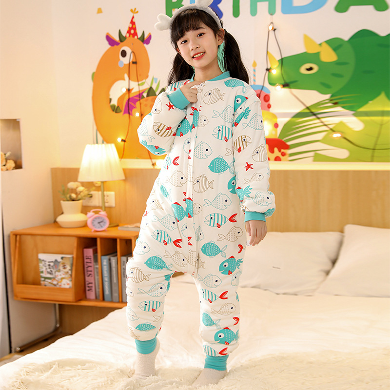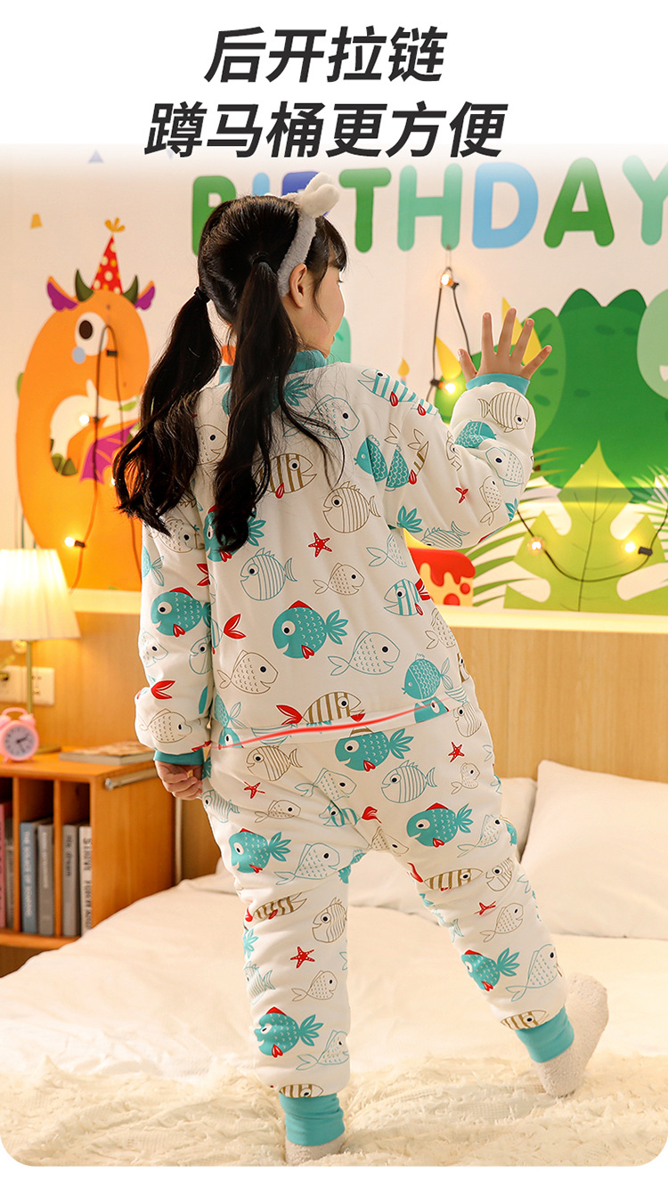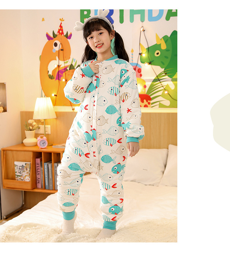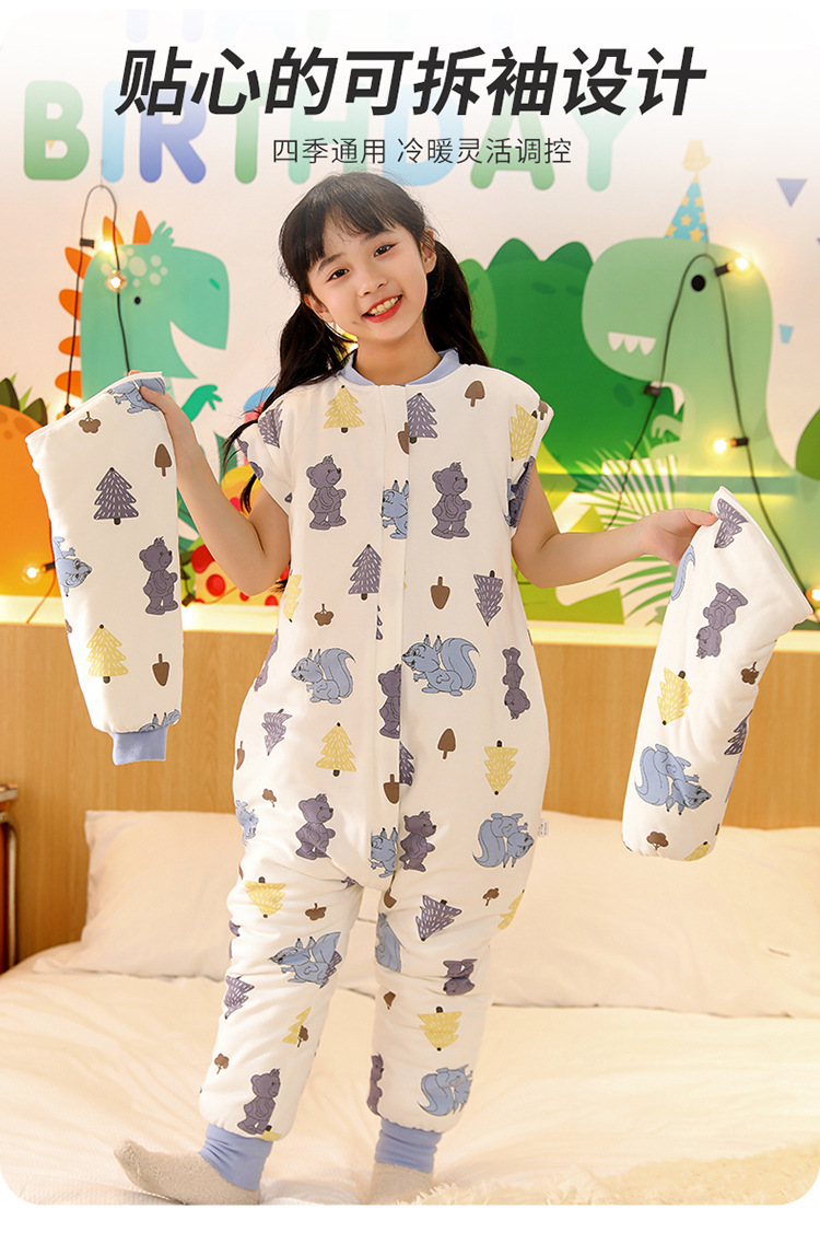 중대형 어린이용 분리형 침낭, 아기 가을 겨울용 두꺼운 보온 학생 어린이 일체형 잠옷, 발차기 방지 이불스토어 가기