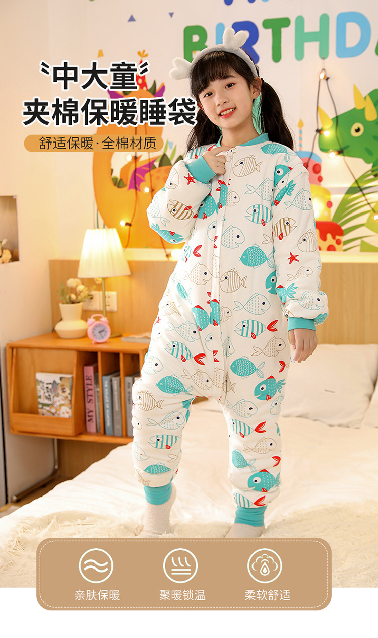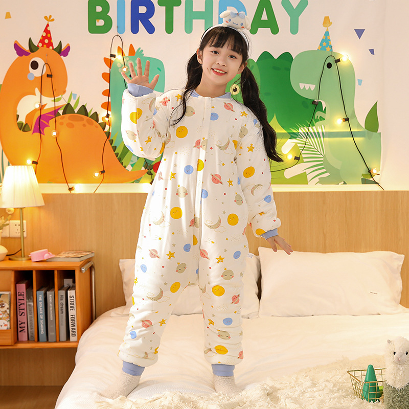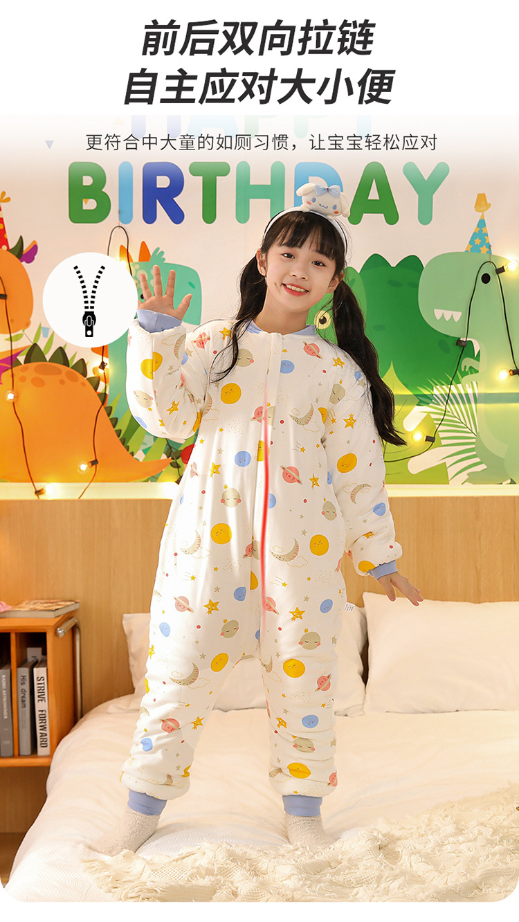 중대형 어린이용 분리형 침낭, 아기 가을 겨울용 두꺼운 보온 학생 어린이 일체형 잠옷, 발차기 방지 이불