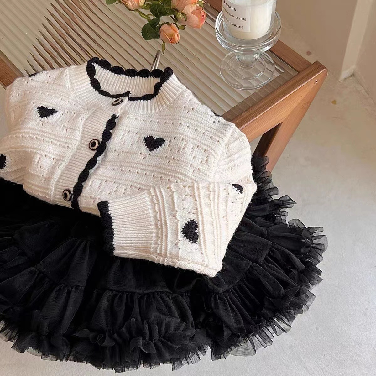 여아용 스웨터 재킷 2025 신상 봄 가을 패션 귀여운 소녀 하트 모양 레이스 가디건 아기 니트웨어 트렌디