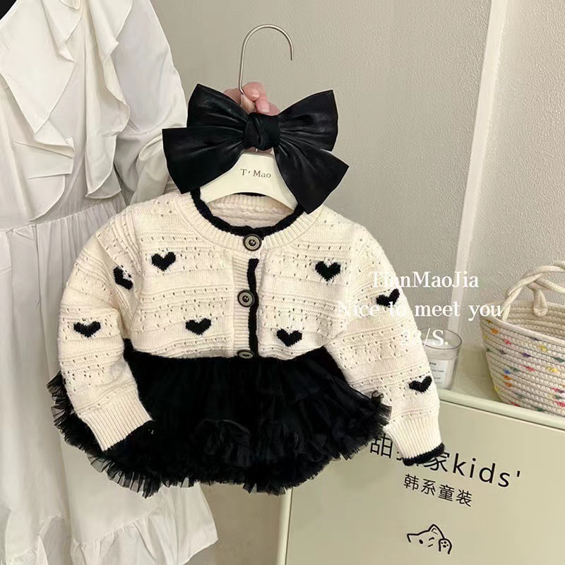 여아용 스웨터 재킷 2025 신상 봄 가을 패션 귀여운 소녀 하트 모양 레이스 가디건 아기 니트웨어 트렌디스토어 가기