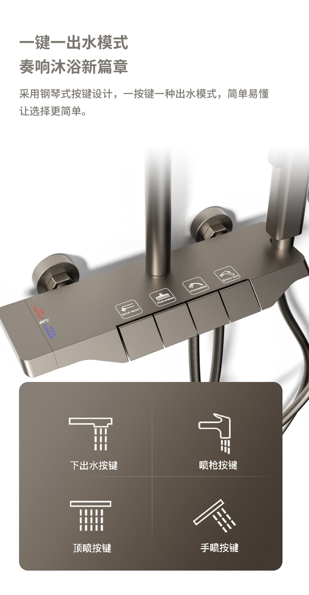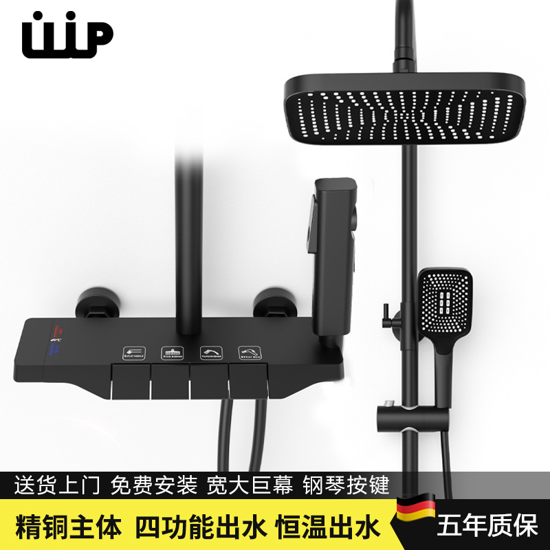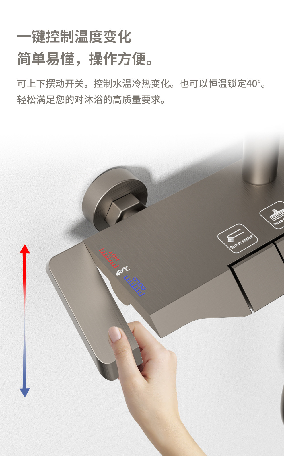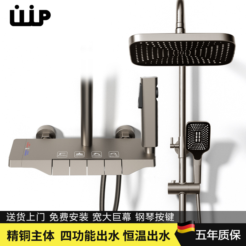 Tian Jie Top 스프레이 건 그레이 온도 조절 샤워 세트 디지털 디스플레이 비 목욕 모든 구리 목욕 가구 압력 샤워스토어 가기