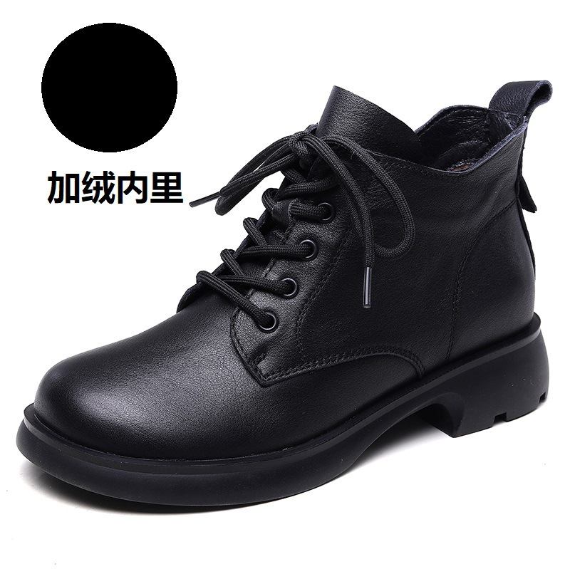 여성용 신발 새로운 2023 폭발 정품 가죽 마틴 부츠 여성용 영국 스타일 복고풍 가죽 신발 모든 매치 플랫 캐주얼 발목 부츠스토어 가기