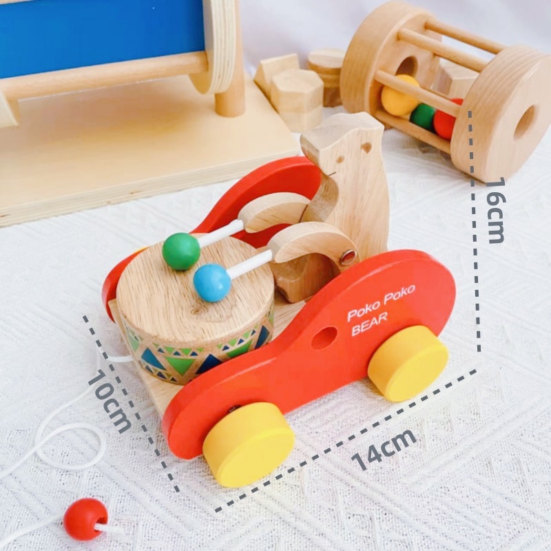 益智玩具蒙氏0-3岁纺织鼓早教投币盒榉木滚动鼓教具