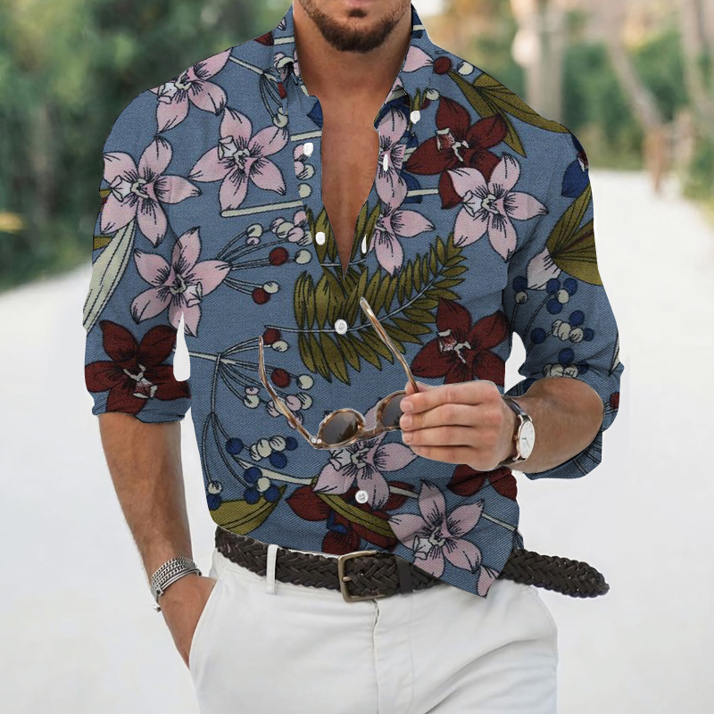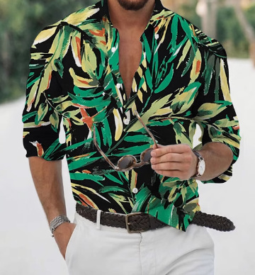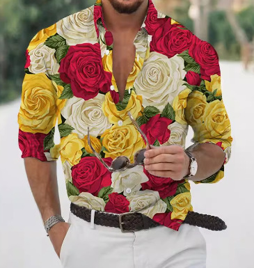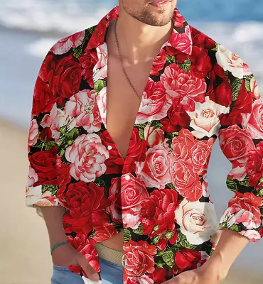 대외 무역 유럽과 미국 뜨거운 3D 셔츠 꽃 셔츠 옷깃 새로운 캐주얼 긴 소매 재고 여름 데일리 코트
