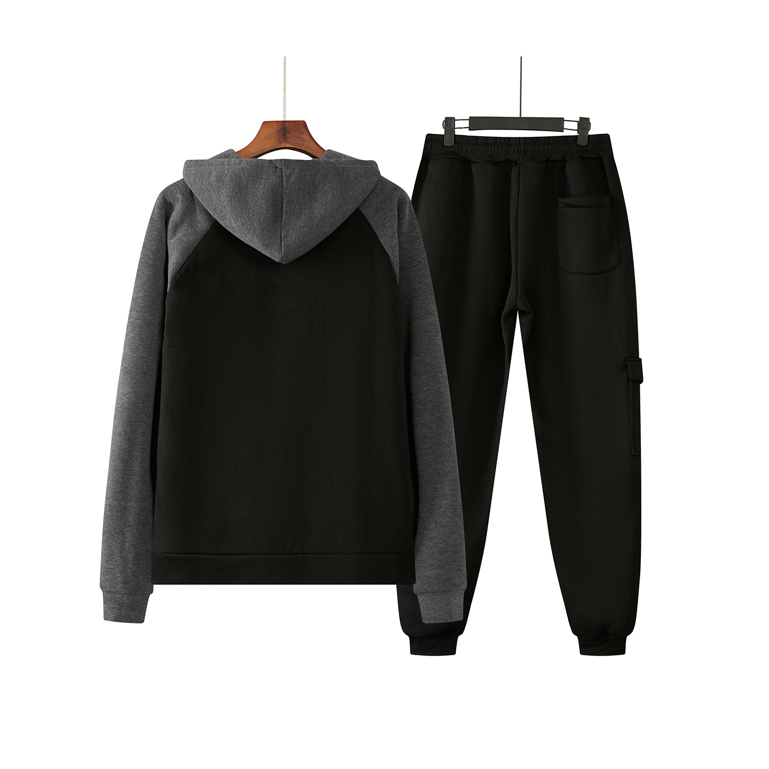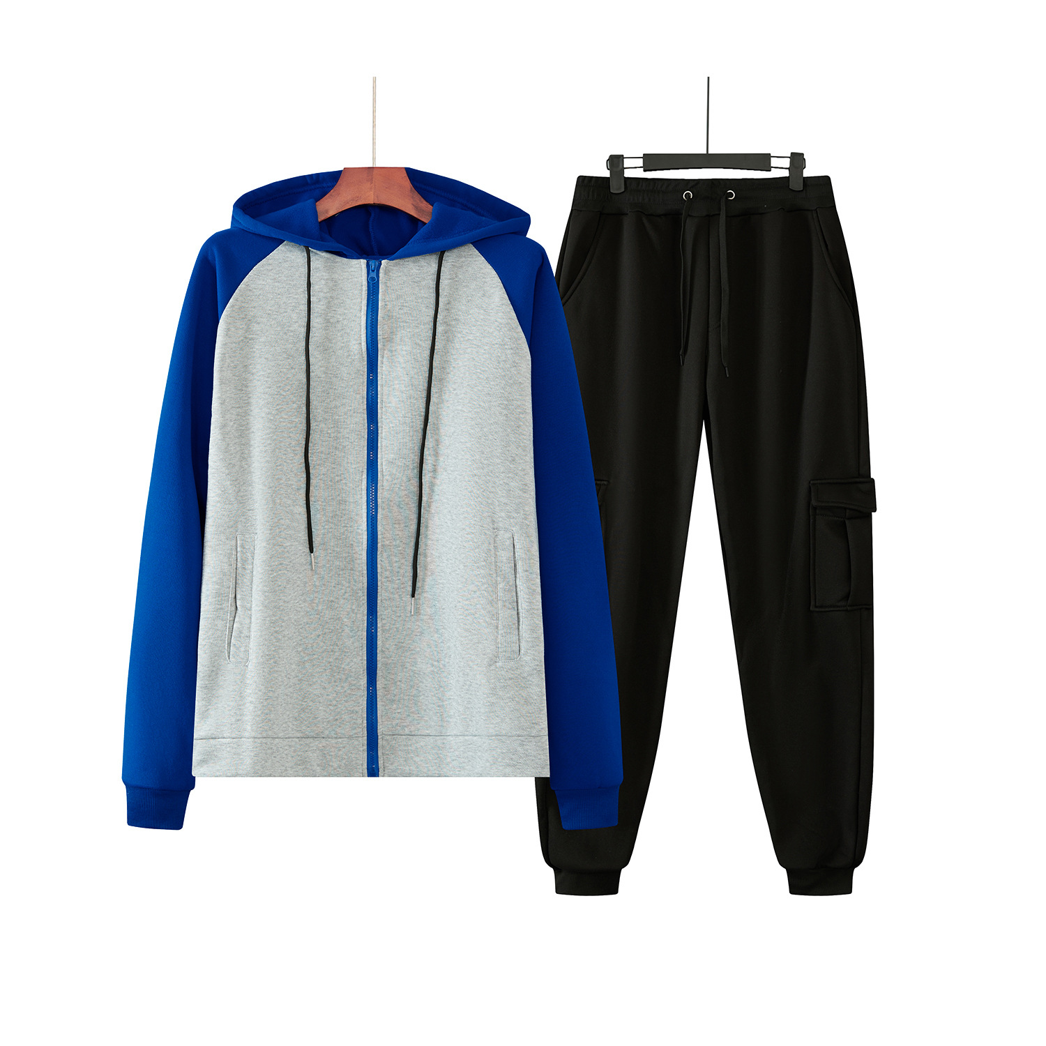 크로스 국경 외국 무역 새로운 카디건 스웨터 세트 플러스 사이즈 따뜻한 후드 캐주얼 남성 기모 스포츠웨어 세트