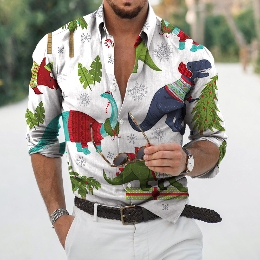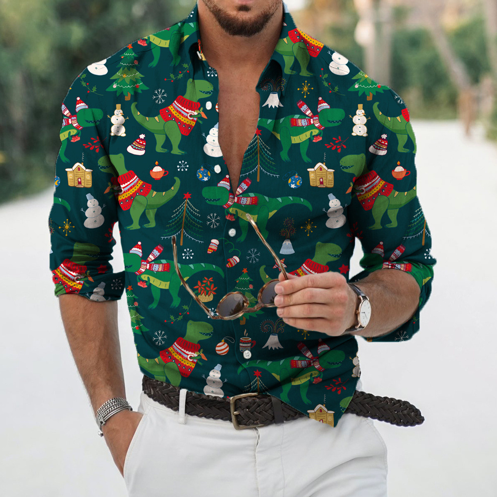 크로스 보더 핫 세일 3D 긴 소매 셔츠 크리스마스 시리즈 긴 소매 셔츠 하와이 느슨한 플러스 사이즈 가을과 겨울 남자의 탑