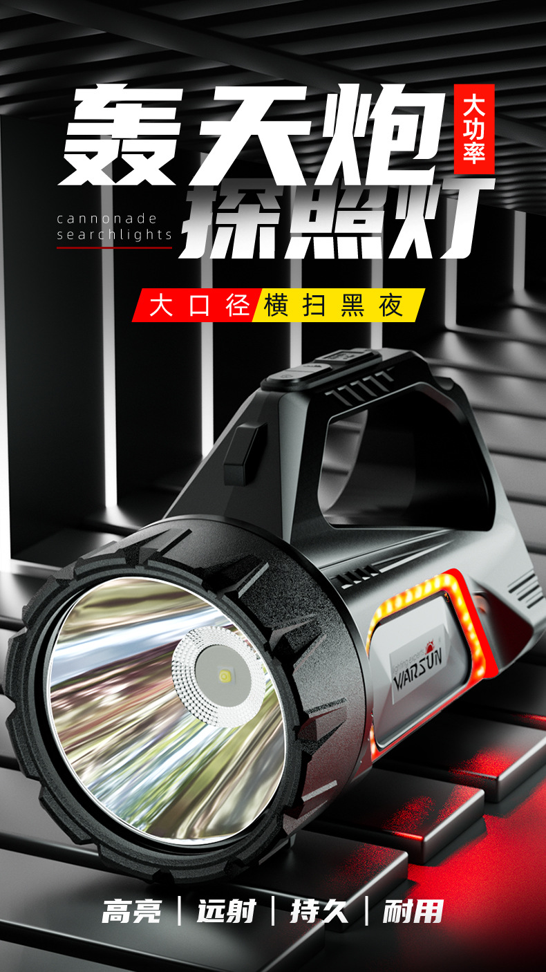 월슨 DA03 강한 빛 충전 슈퍼 밝은 야외 장거리 비상 조명 태양 순찰 휴대용 탐지