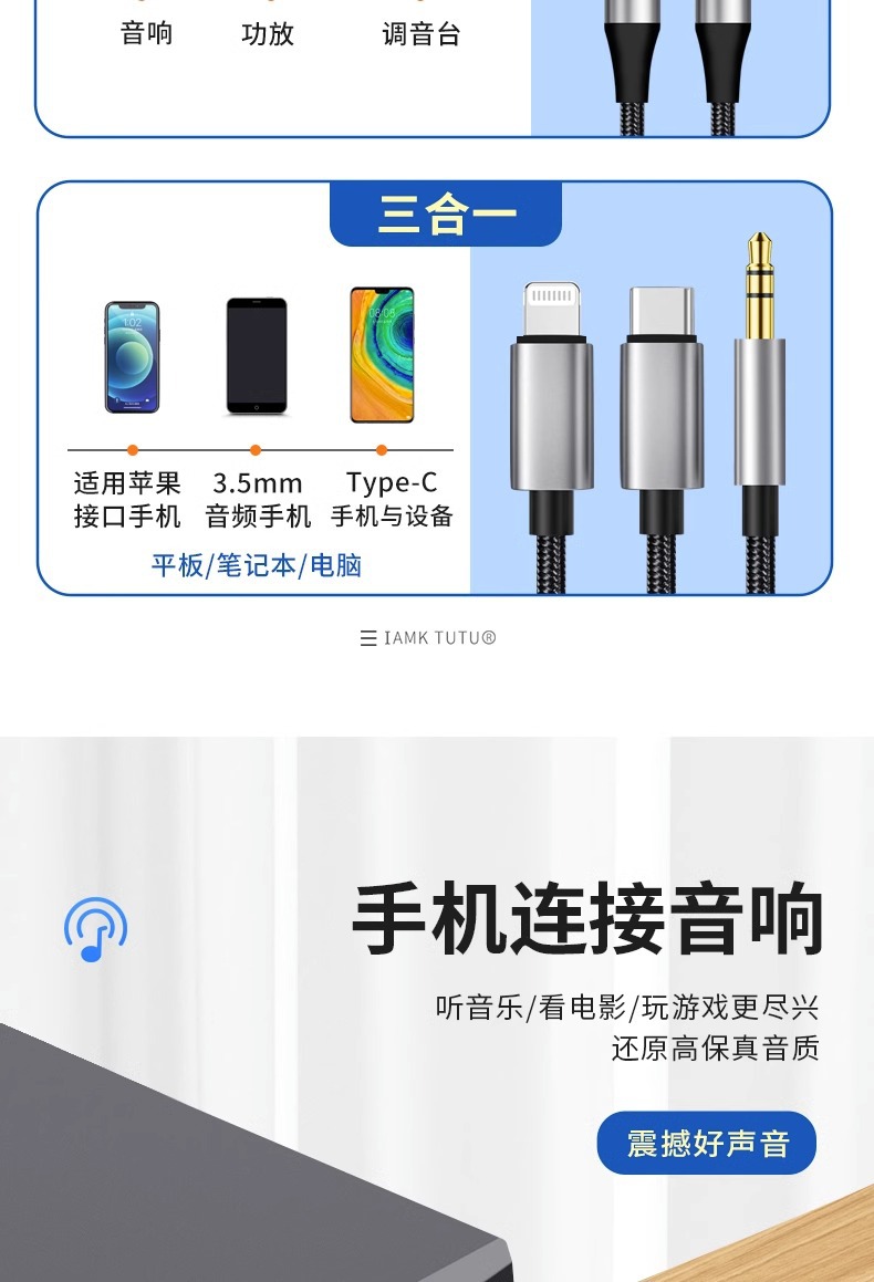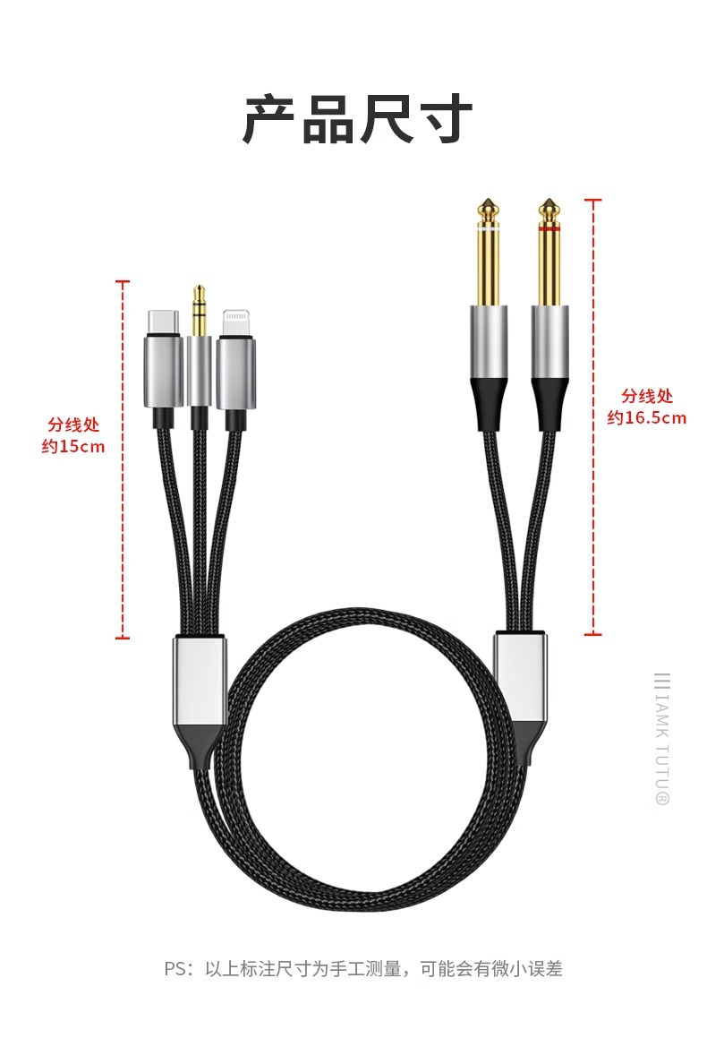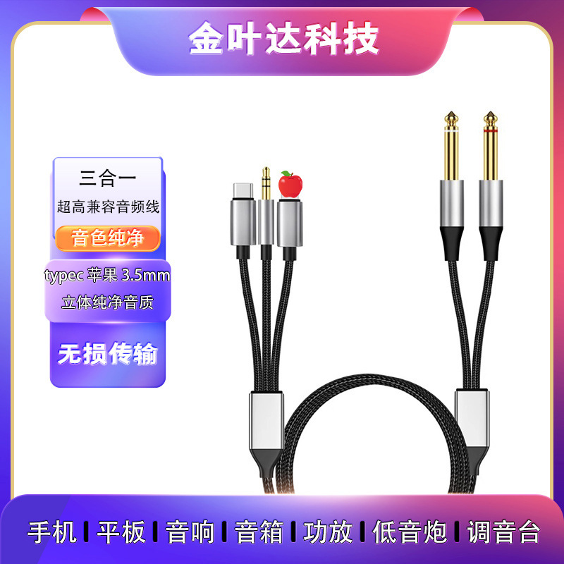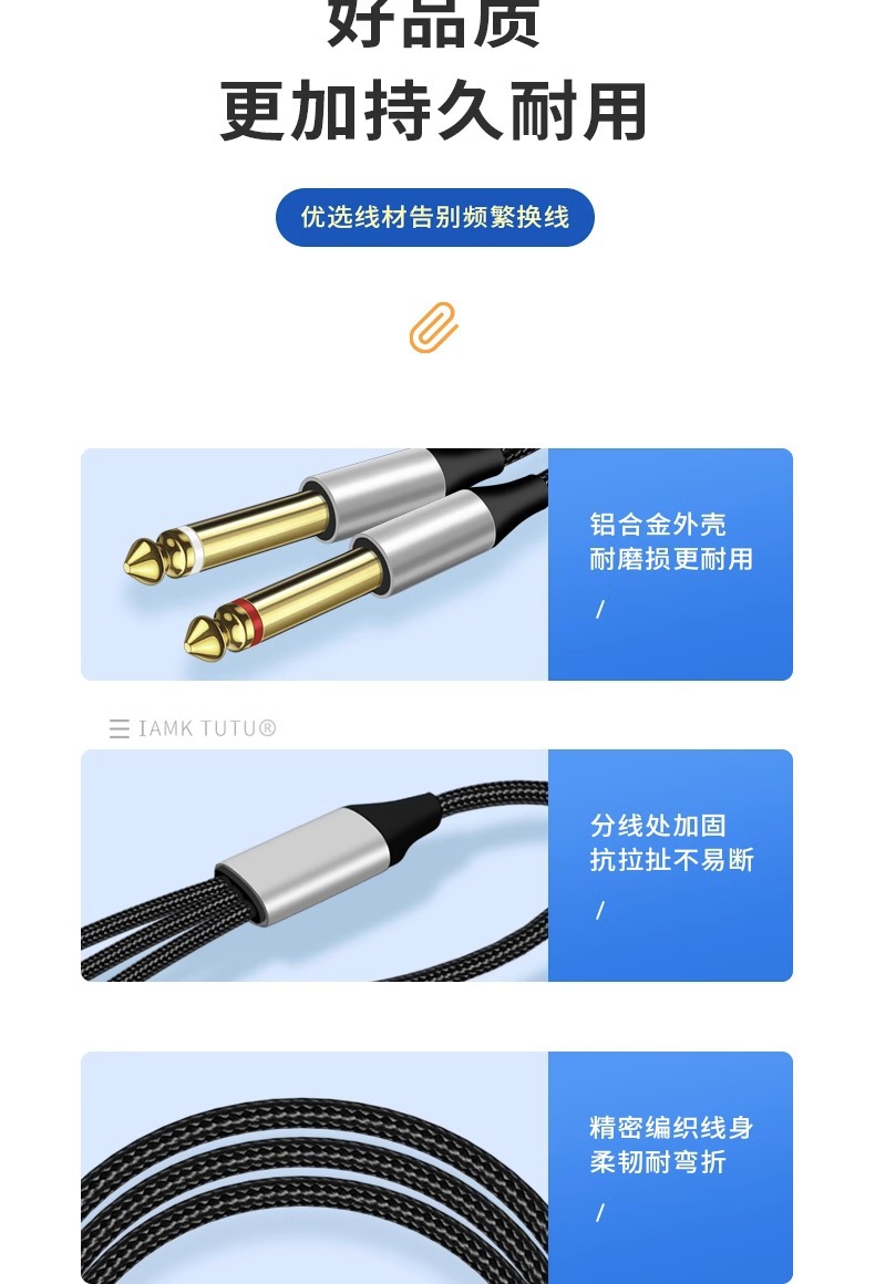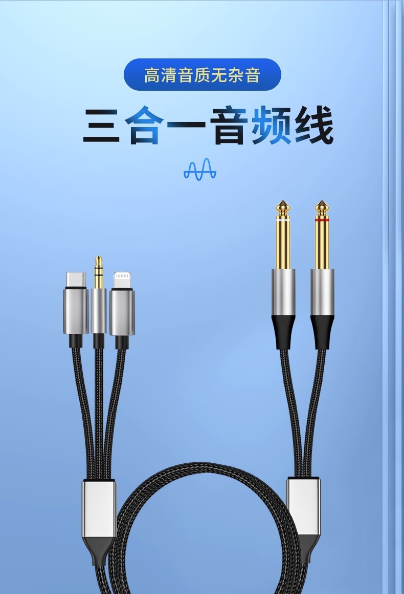 오디오 케이블 타입 휴대폰 3.5mm 이중 6.5 3-in-1 오디오 케이블 믹서 스피커 앰프 전자 키보드스토어 가기