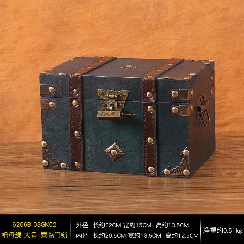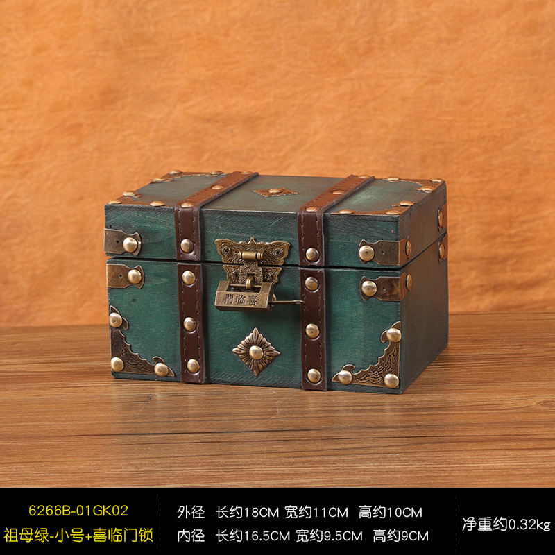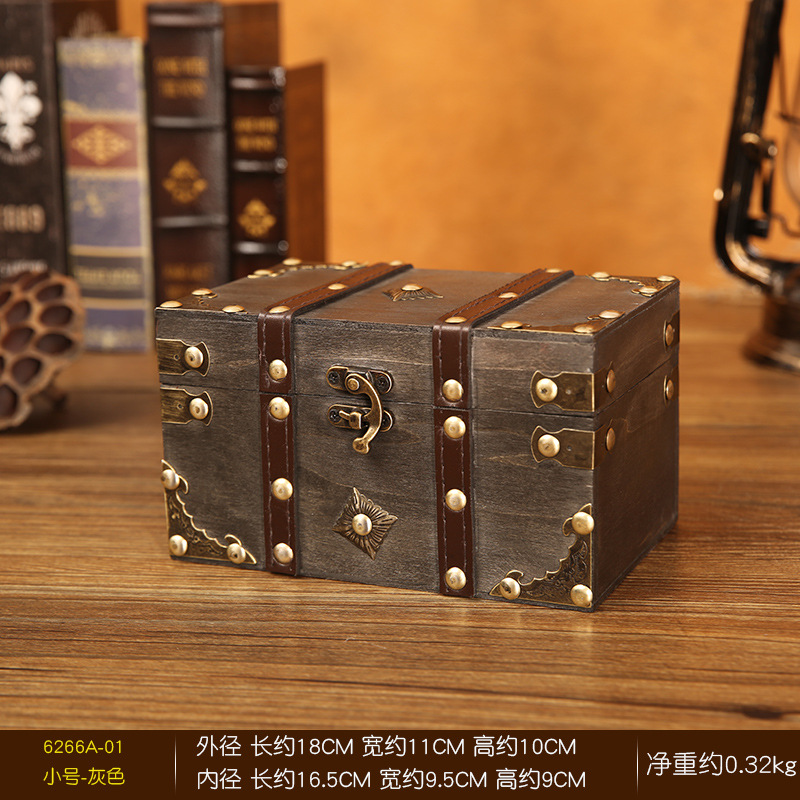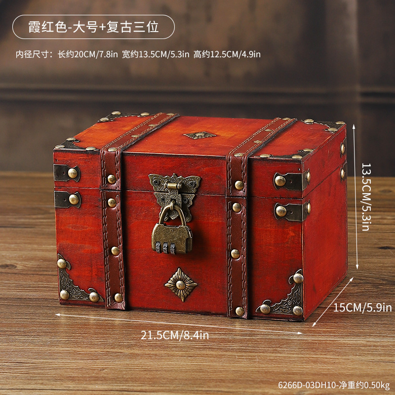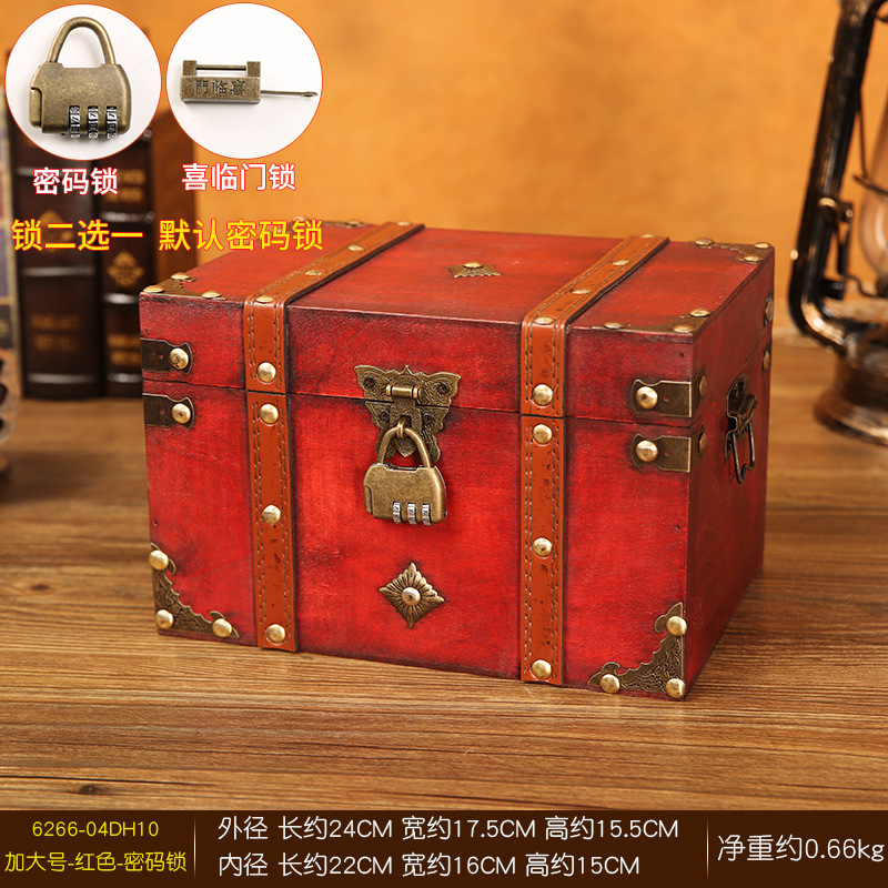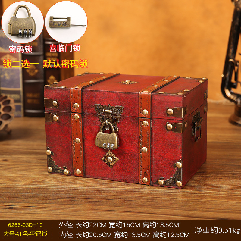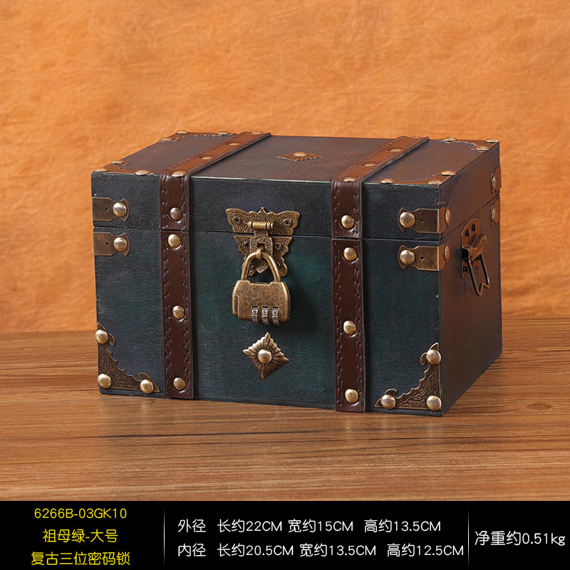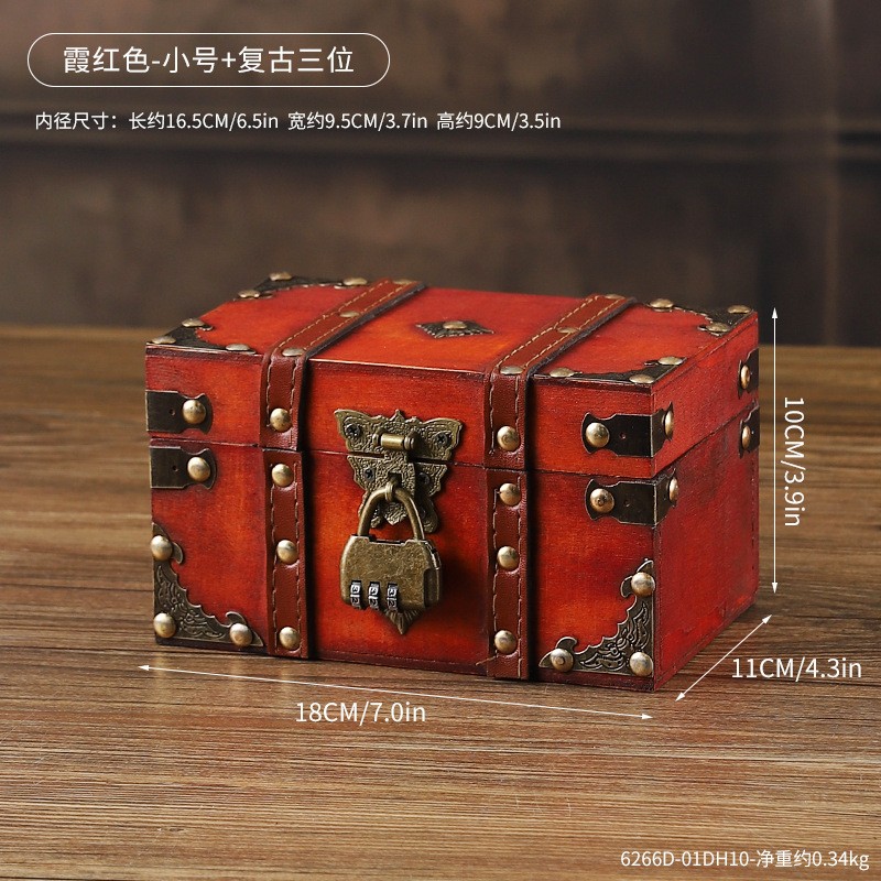 자물쇠가있는 새로운 골동품 나무 상자 나무 보관함 해적 보물 상자 암호 잠금 보물 상자 영화 촬영 소품스토어 가기