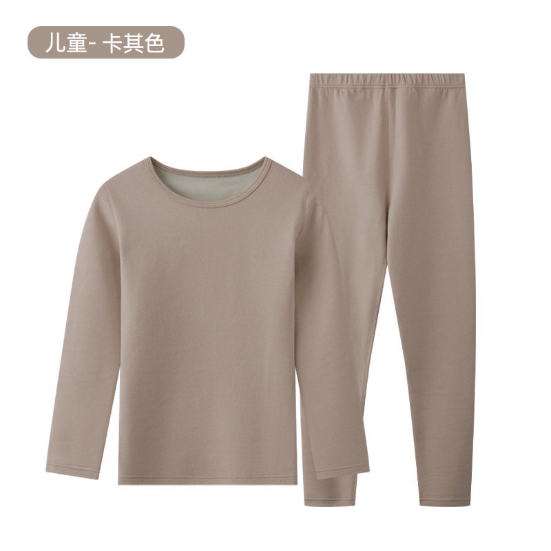 가을과 겨울 남성과 여성의 어린이 벨벳 열 속옷 어린이 세트 가을 의류 가을 바지 중형 및 대형 어린이 바닥 이음매없는 내복 코튼 패딩 의류