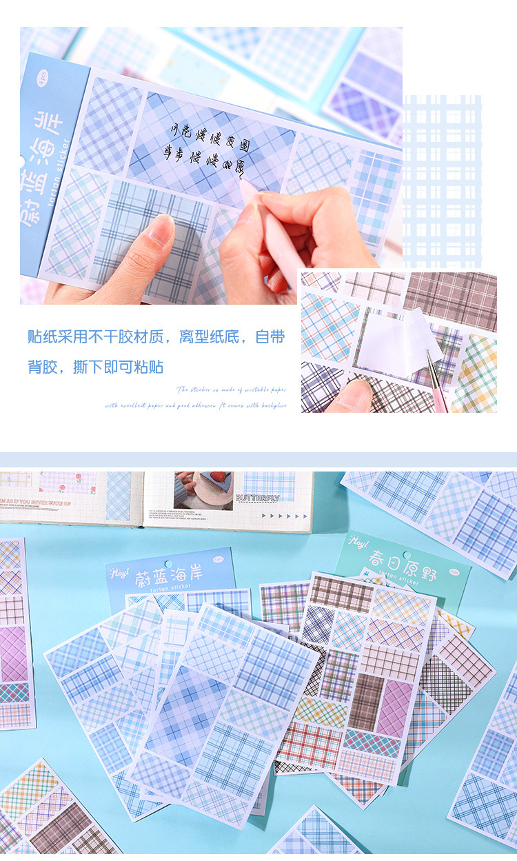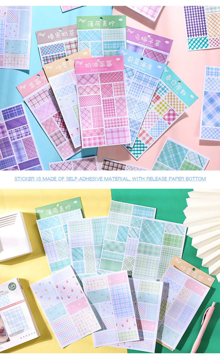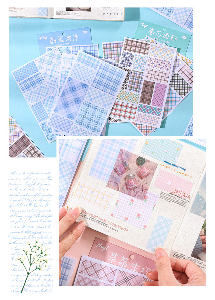 격자 무늬 스티커 높은 색상 값 색상 손 계정 격자 무늬 재료 장식 DIY 뒷면 찢을 수있는 배경 콜라주 재료 종이스토어 가기