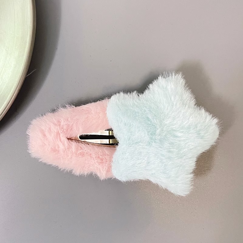 귀여운 가을과 겨울 플러시 푹신한 5 점 별 bb 앞머리 클립 사이드 머리핀 클립 백 헤드 머리핀 헤어 액세서리