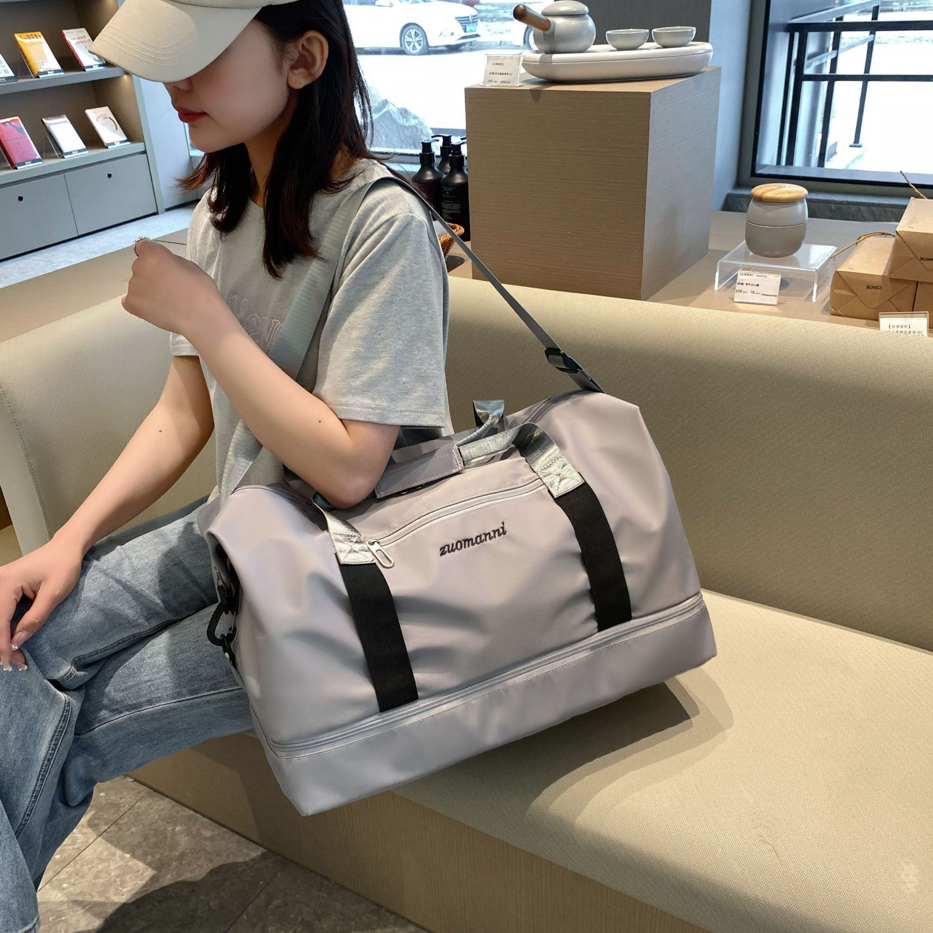 Jianneng 건식 및 습식 분리 스포츠 피트니스 요가 가방 단거리 신발 휴대용 여행 가방 숄더 보딩 수하물 대형 가방스토어 가기