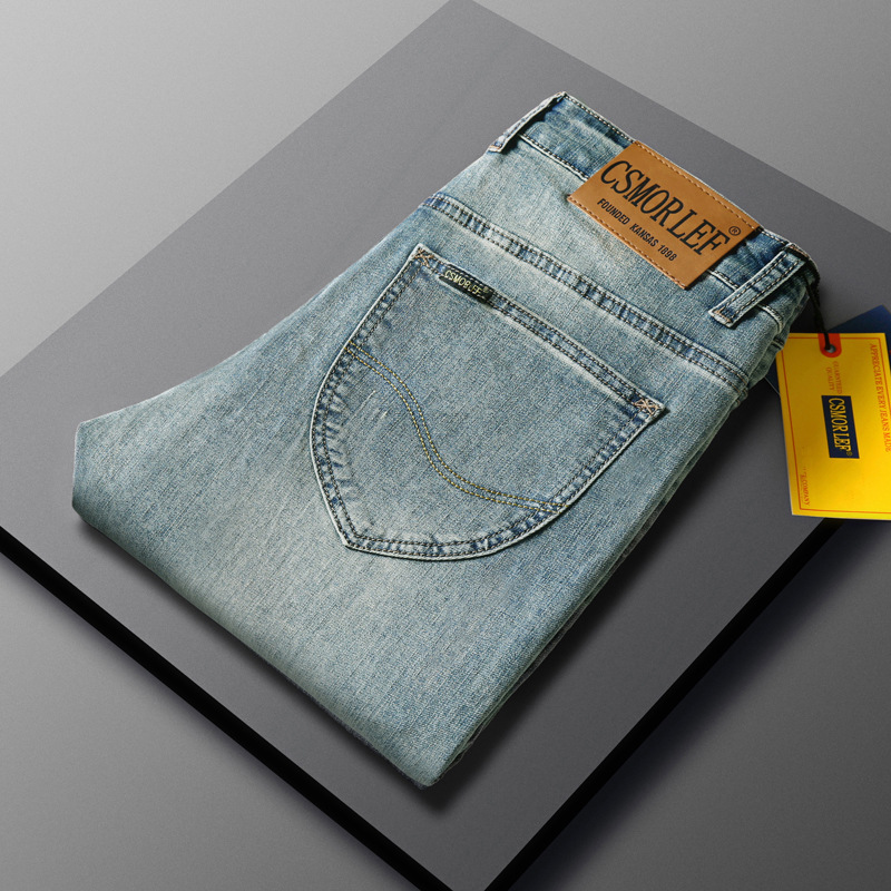 CSMORLEF 남성용 청바지 가을 겨울 슬림핏 스트레이트 비즈니스 다용도 바지 남성용 신축성 있는 해외 남성복 긴바지스토어 가기