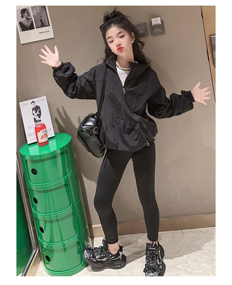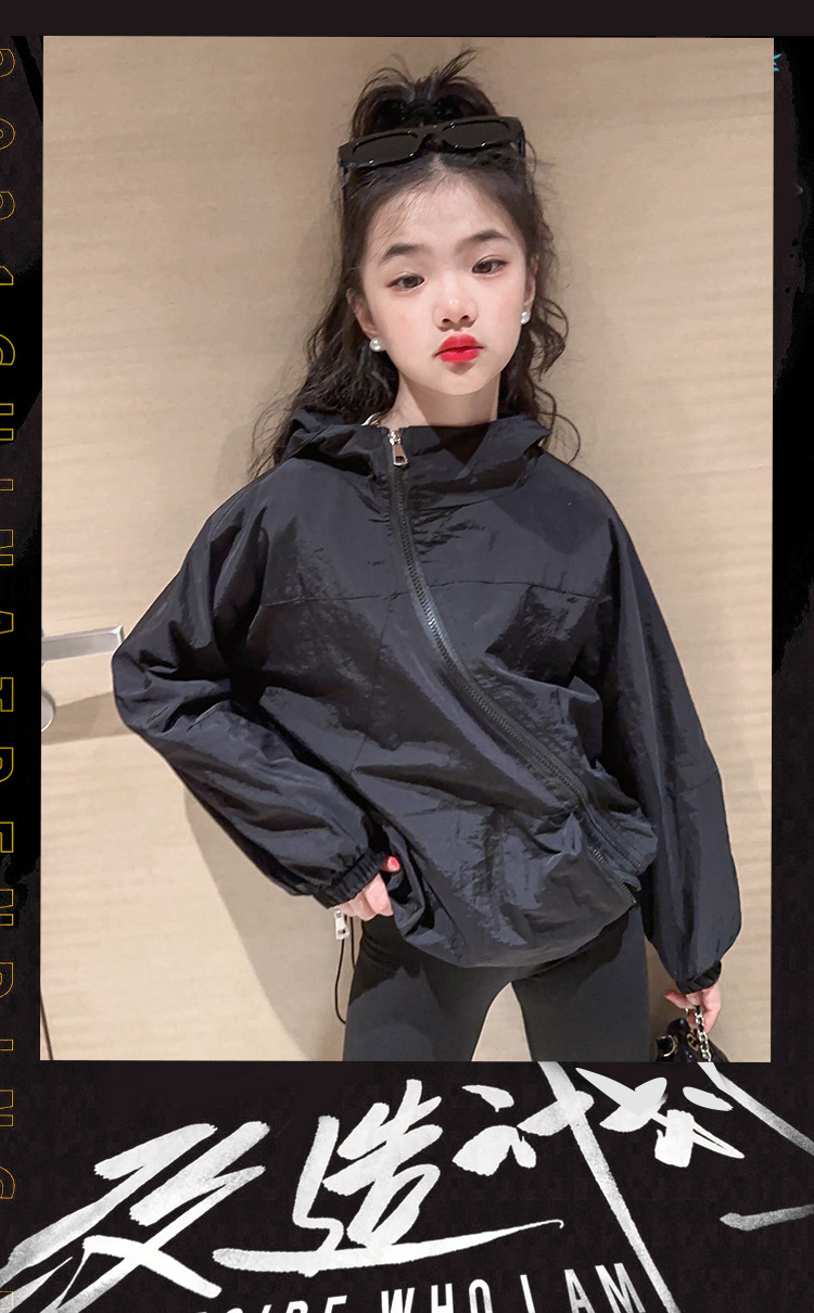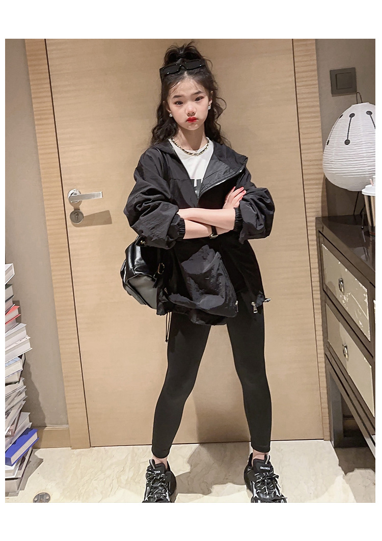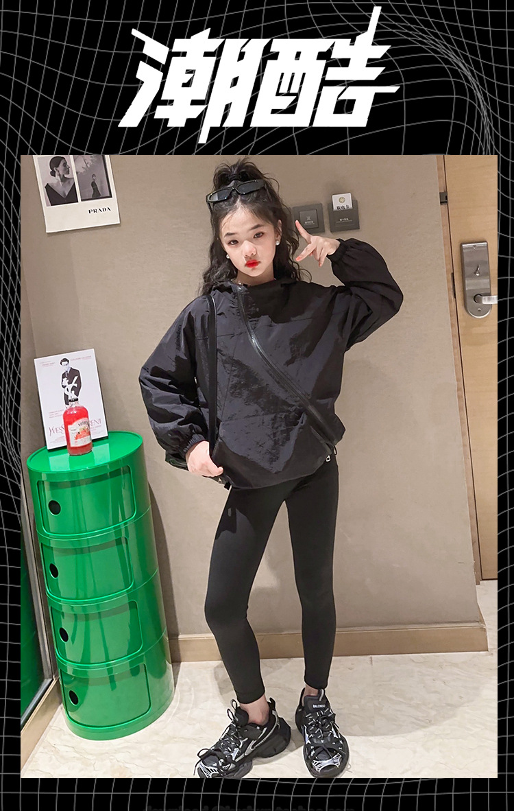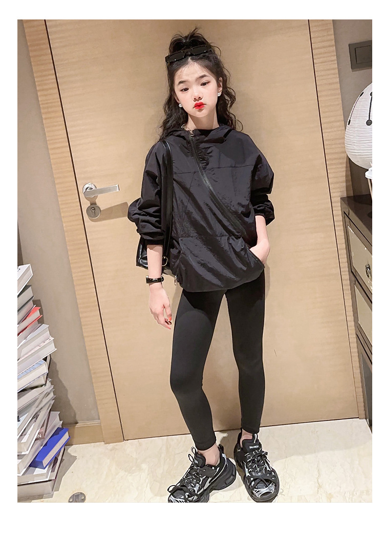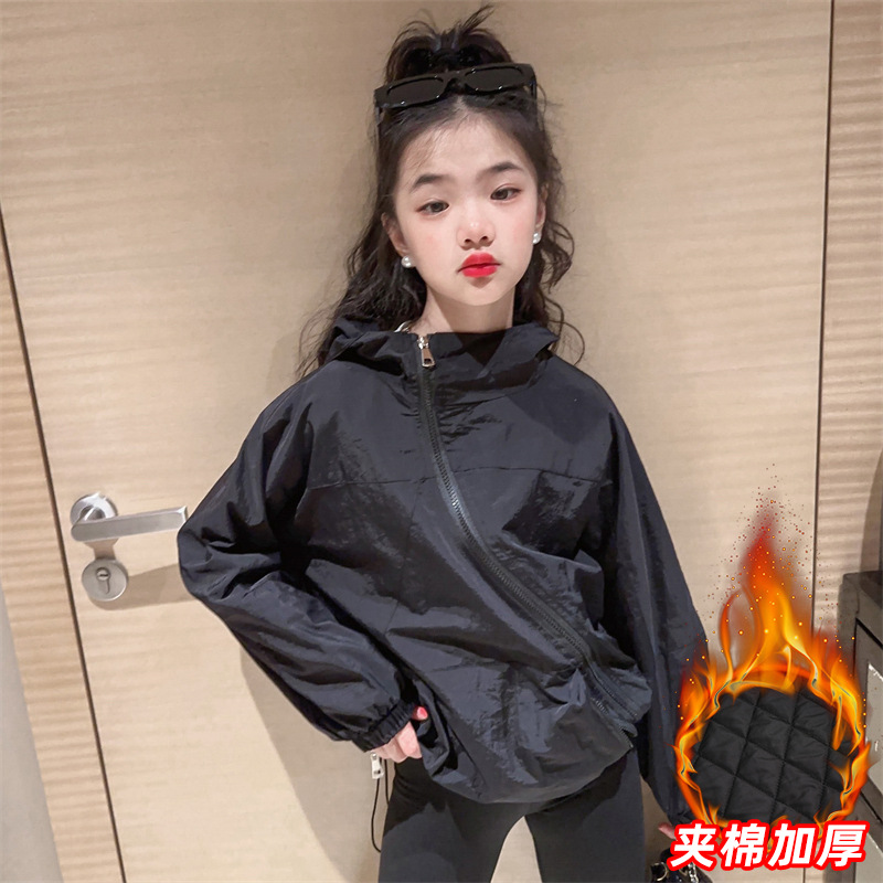여아 러쉬 자켓 가을 옷 어린이 유행 단색 후드 탑 미드 빅 어린이 늦은 가을 방풍 스포츠 재킷