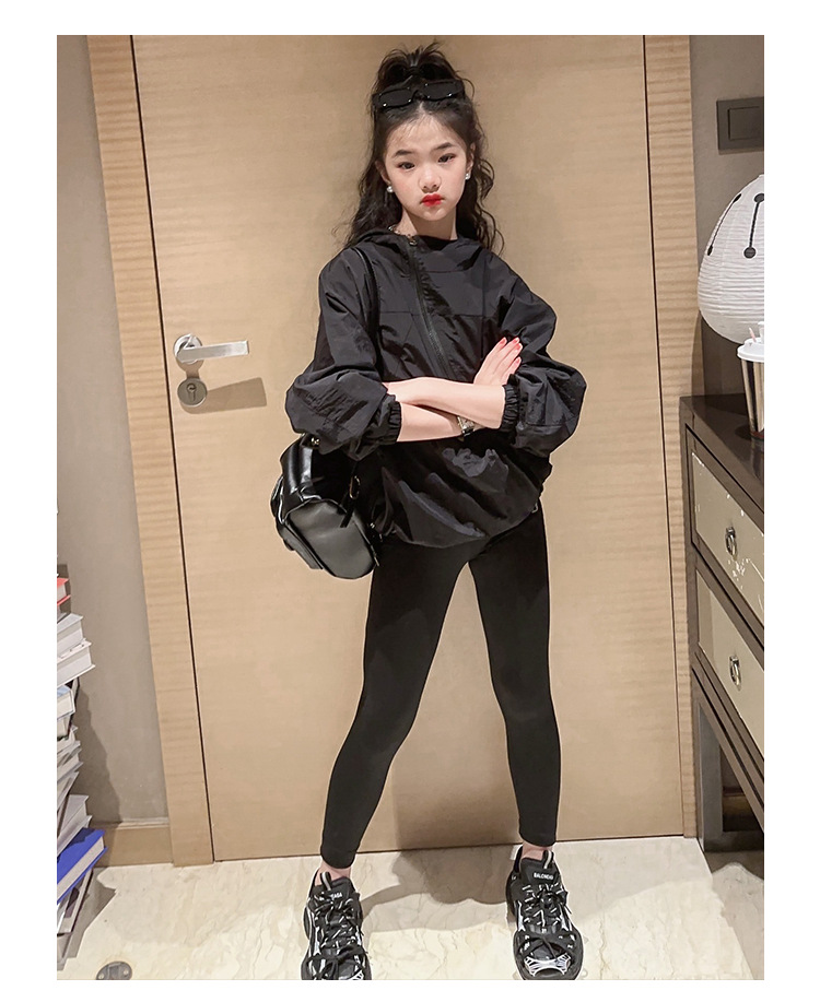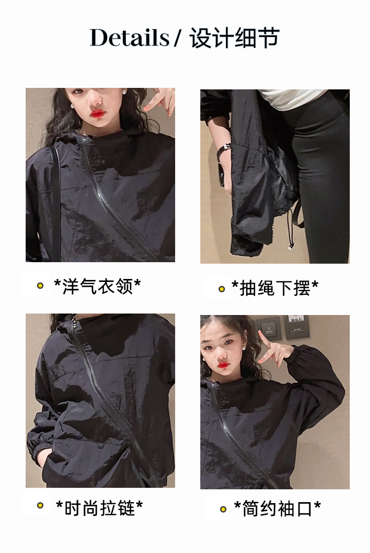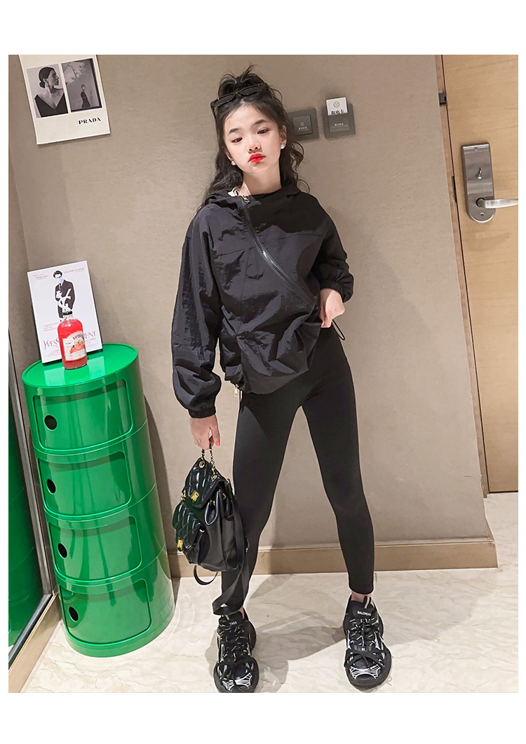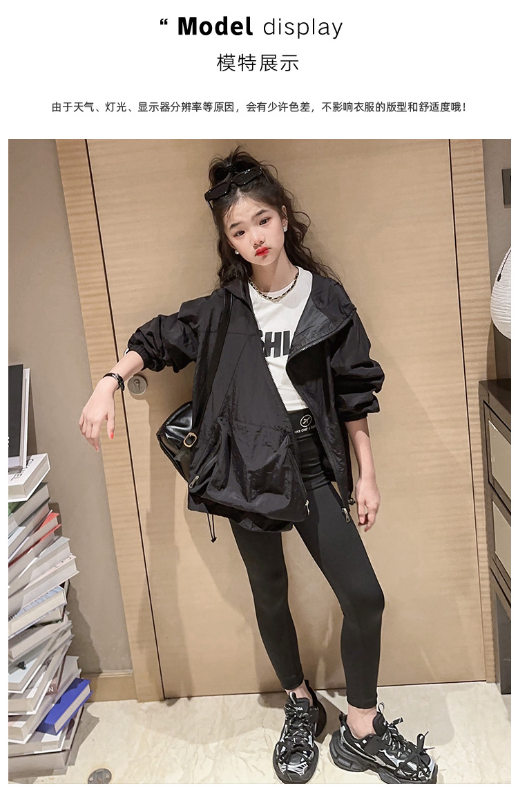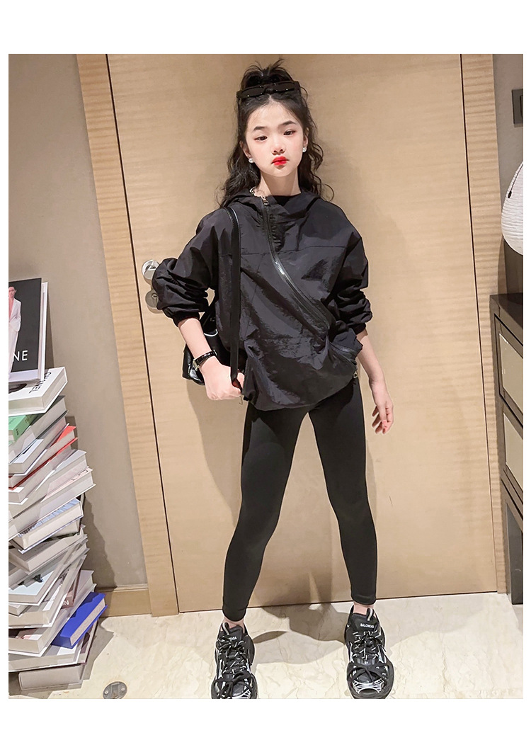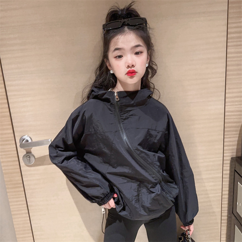 여아 러쉬 자켓 가을 옷 어린이 유행 단색 후드 탑 미드 빅 어린이 늦은 가을 방풍 스포츠 재킷