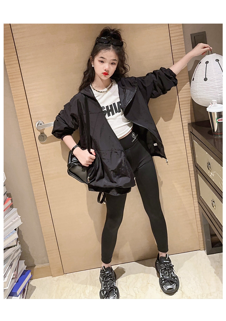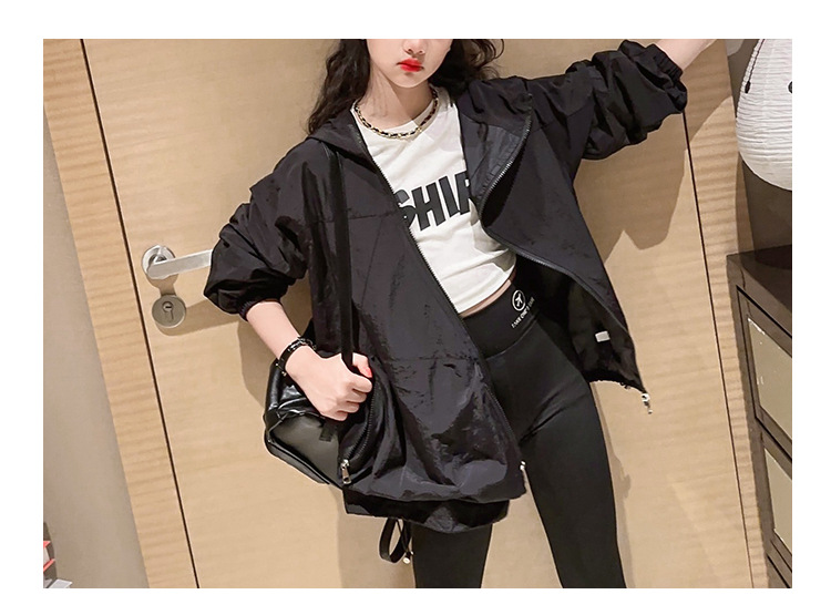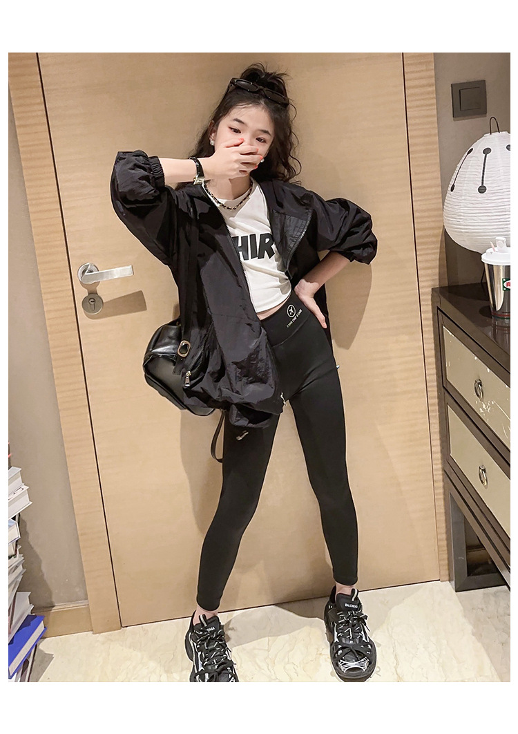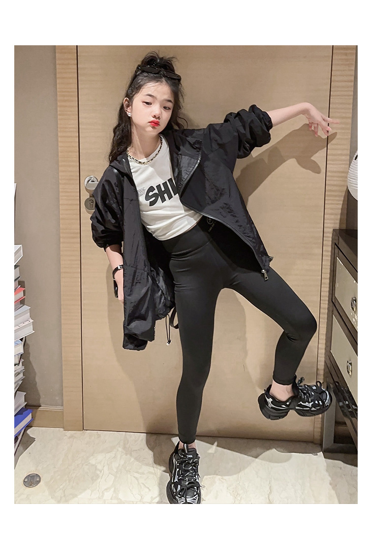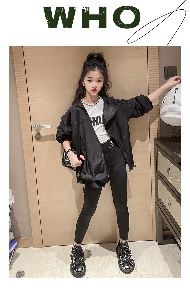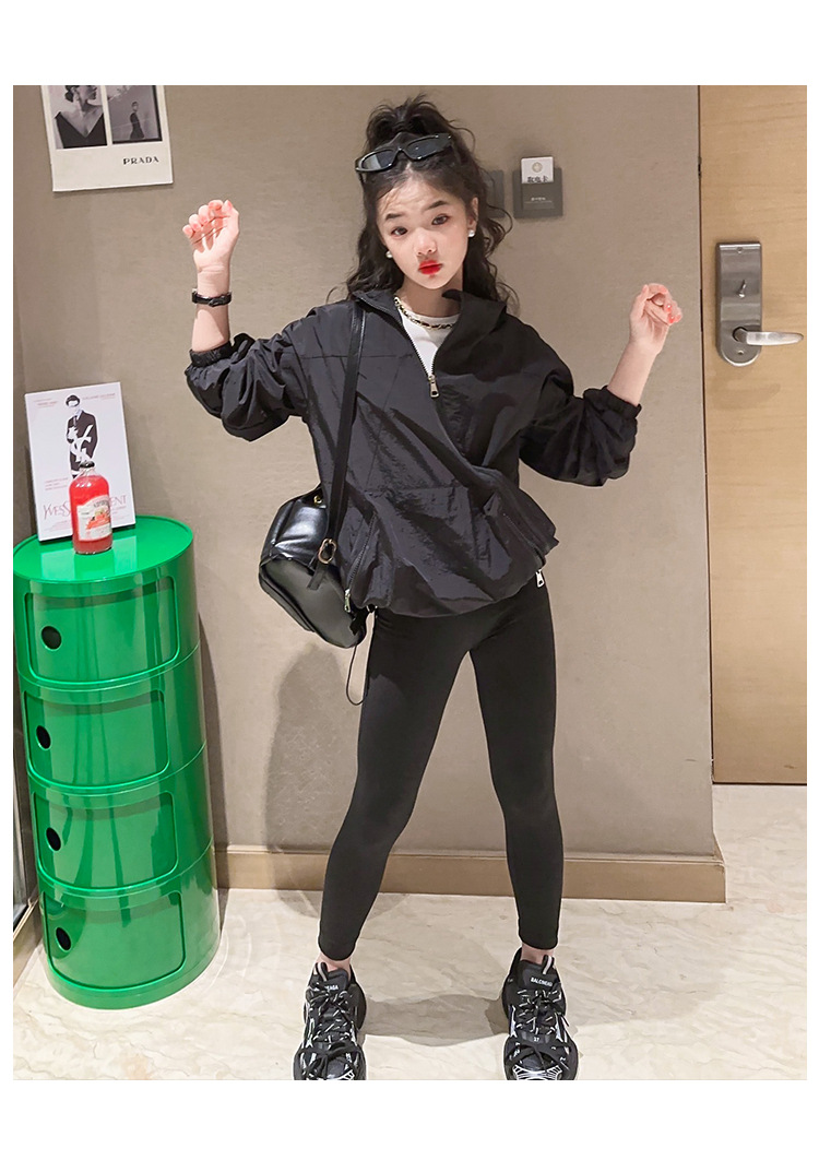 여아 러쉬 자켓 가을 옷 어린이 유행 단색 후드 탑 미드 빅 어린이 늦은 가을 방풍 스포츠 재킷