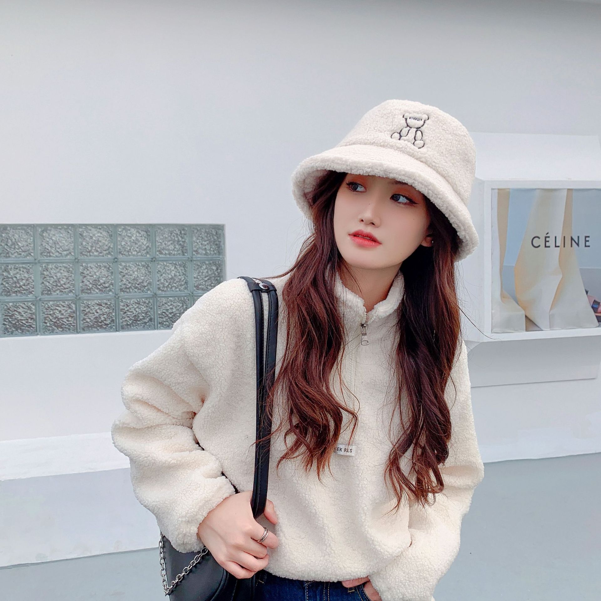 가을과 겨울 뉴 베어 양고기 양모 분지 모자 여성 야외 패션 조커 고급 따뜻한 곰 분지 모자 도매스토어 가기