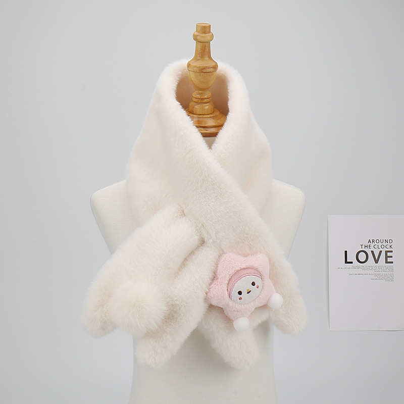 2023 겨울 한국 스타일 모조 토끼 모피 봉제 스카프 부드러운 목 학생 여성의 귀여운 구름 십자가 따뜻한 두꺼운 스카프