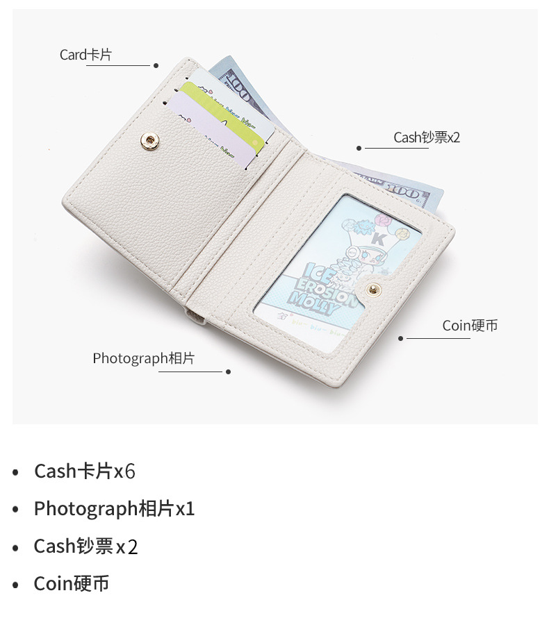 2024 간결한 단색 질감 고급 여성용 지갑 크로스 보더 휴대용 도시 짧은 PU 동전 지갑 학생 가방스토어 가기