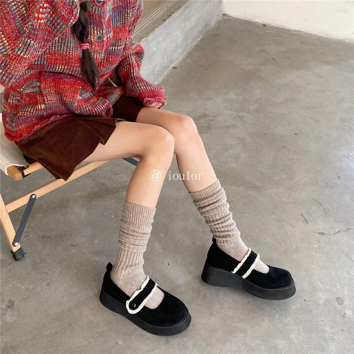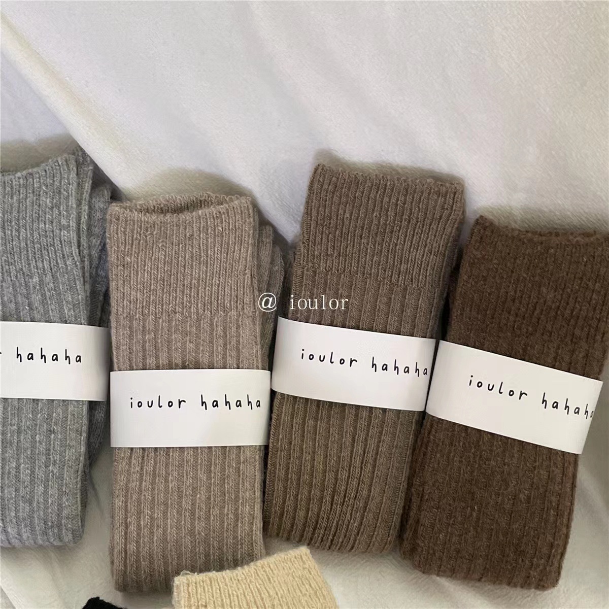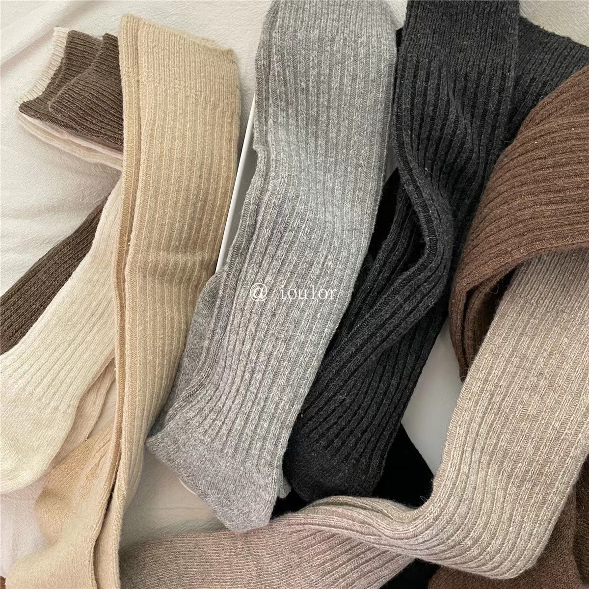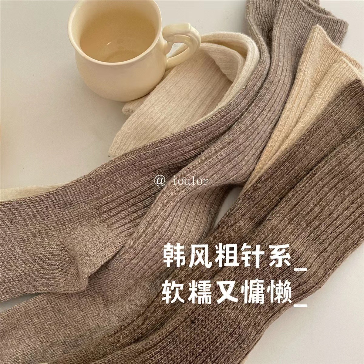 두꺼운 라인 양모 송아지 양말 가을과 겨울 두꺼운 양말 다크 브라운 이중 바늘 더미 양말 일본 여성 양말 무릎 양말 도매