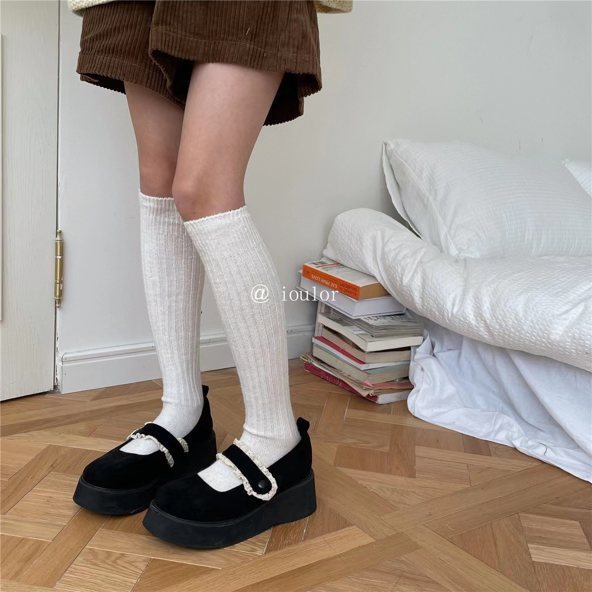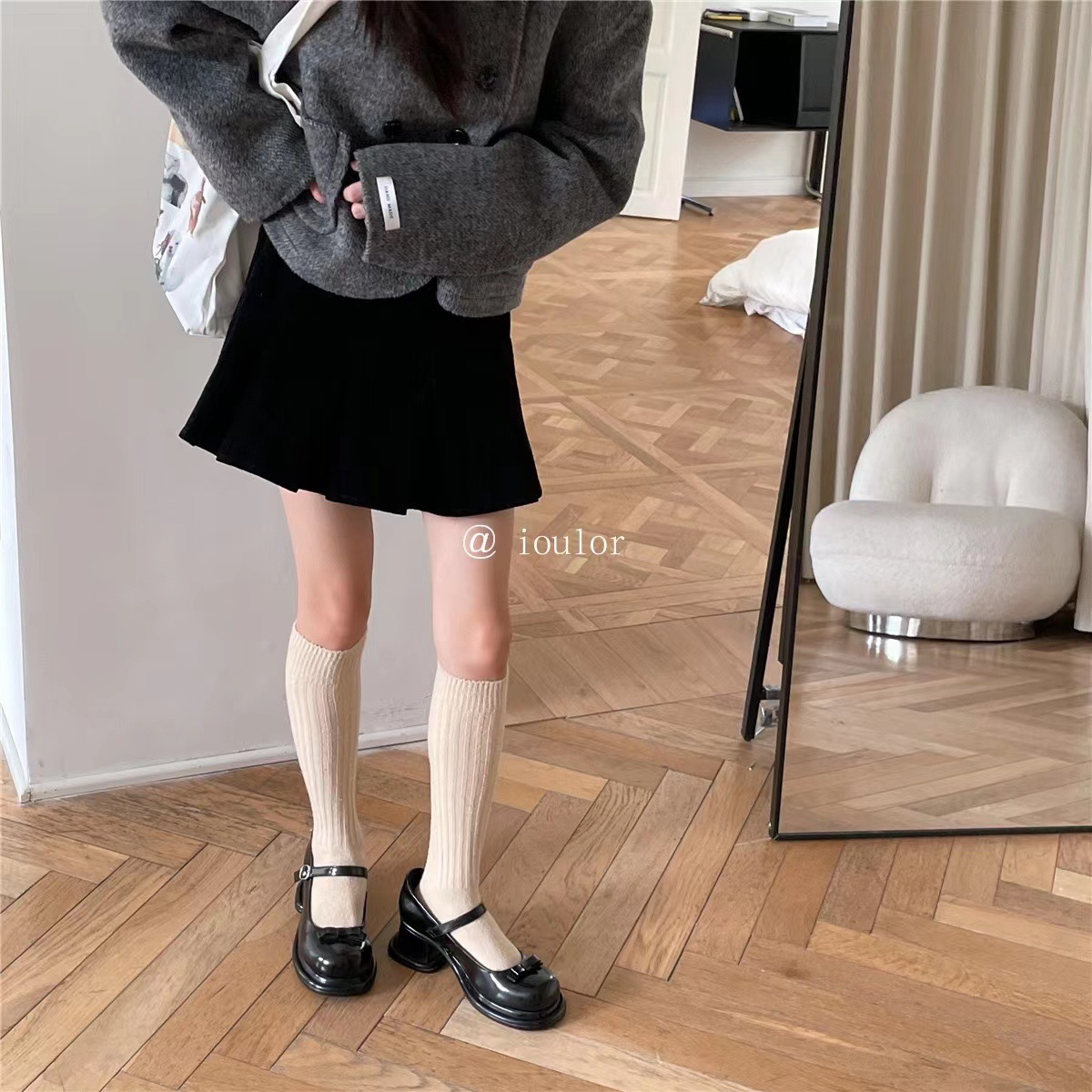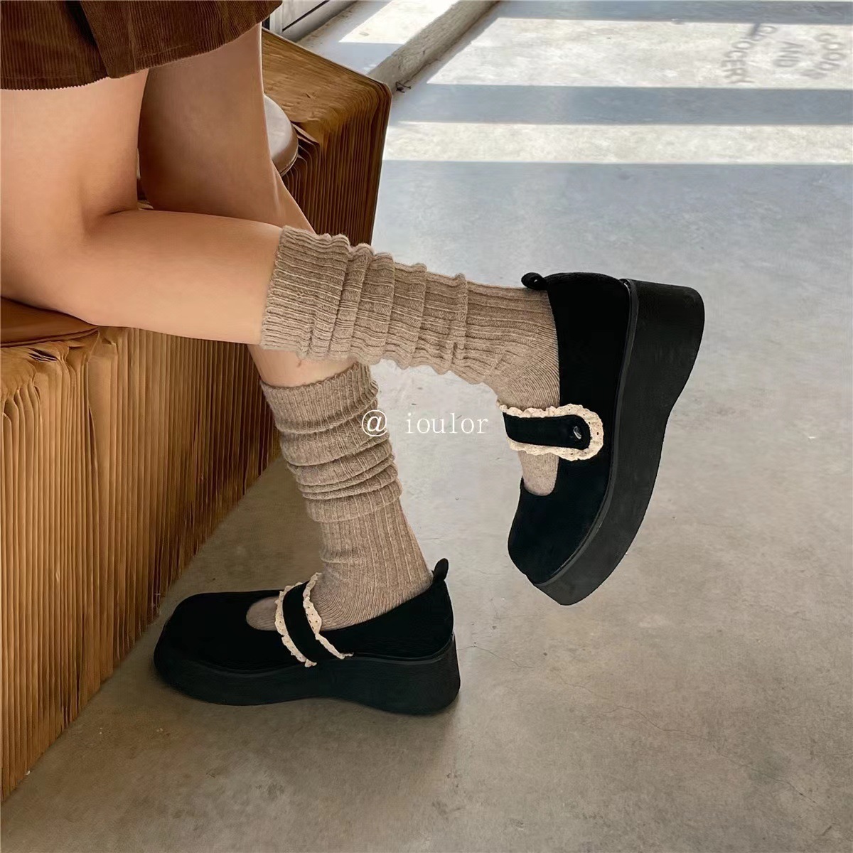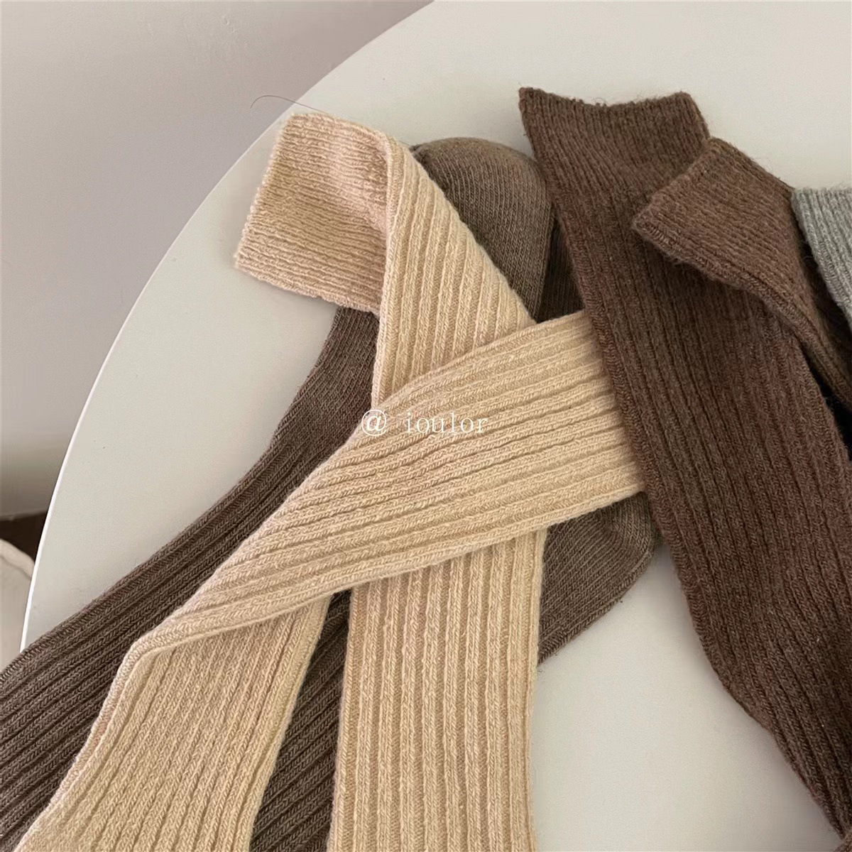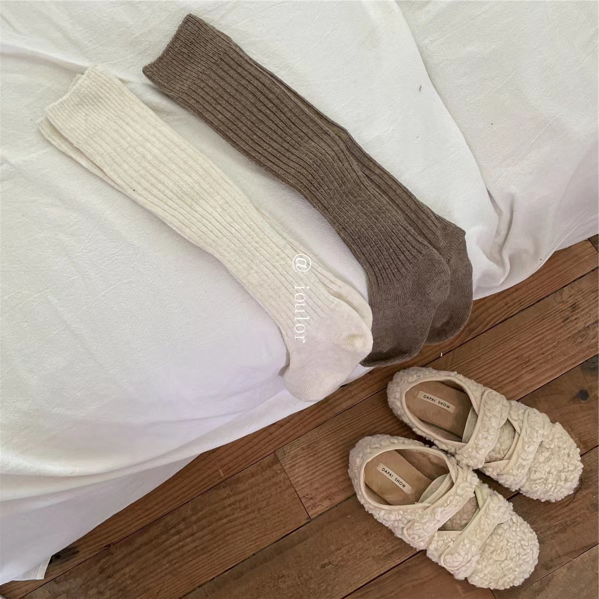 두꺼운 라인 양모 송아지 양말 가을과 겨울 두꺼운 양말 다크 브라운 이중 바늘 더미 양말 일본 여성 양말 무릎 양말 도매