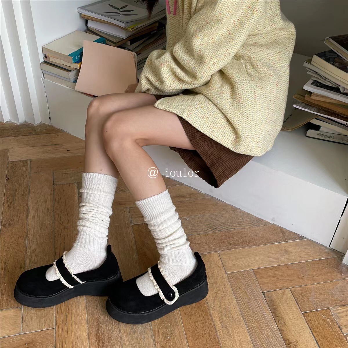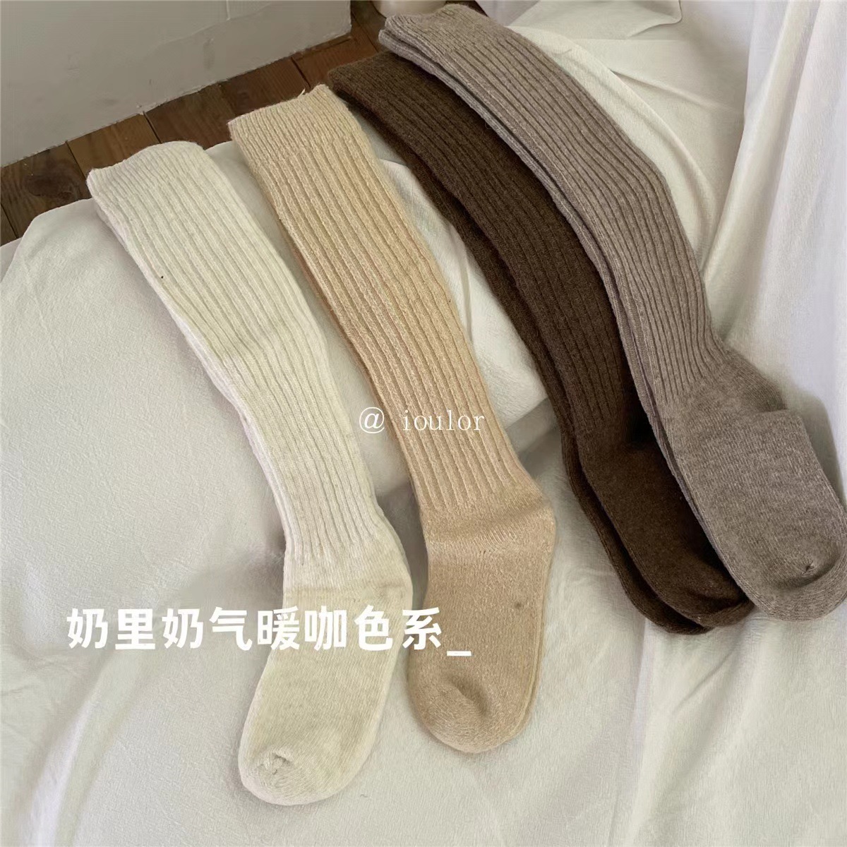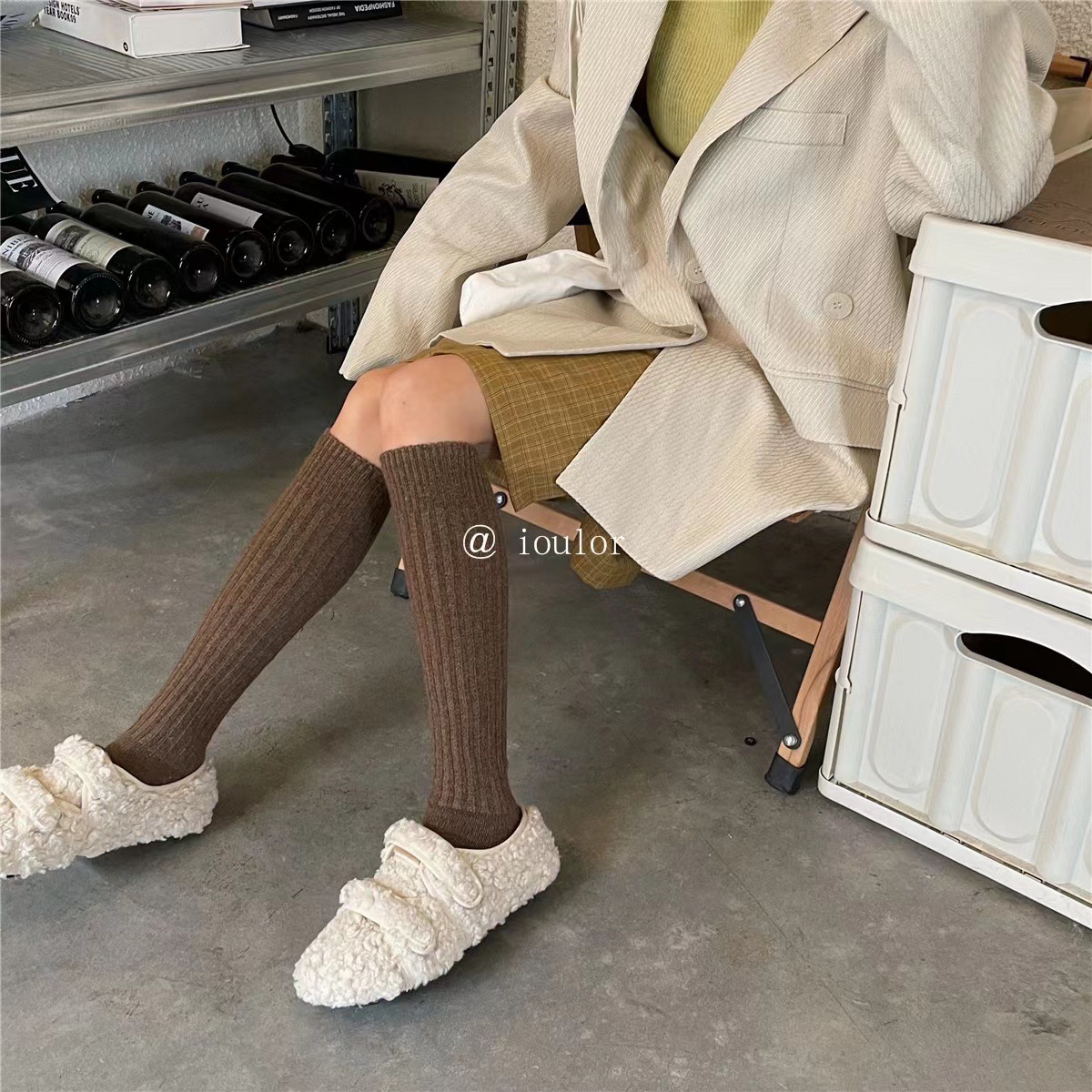 두꺼운 라인 양모 송아지 양말 가을과 겨울 두꺼운 양말 다크 브라운 이중 바늘 더미 양말 일본 여성 양말 무릎 양말 도매스토어 가기