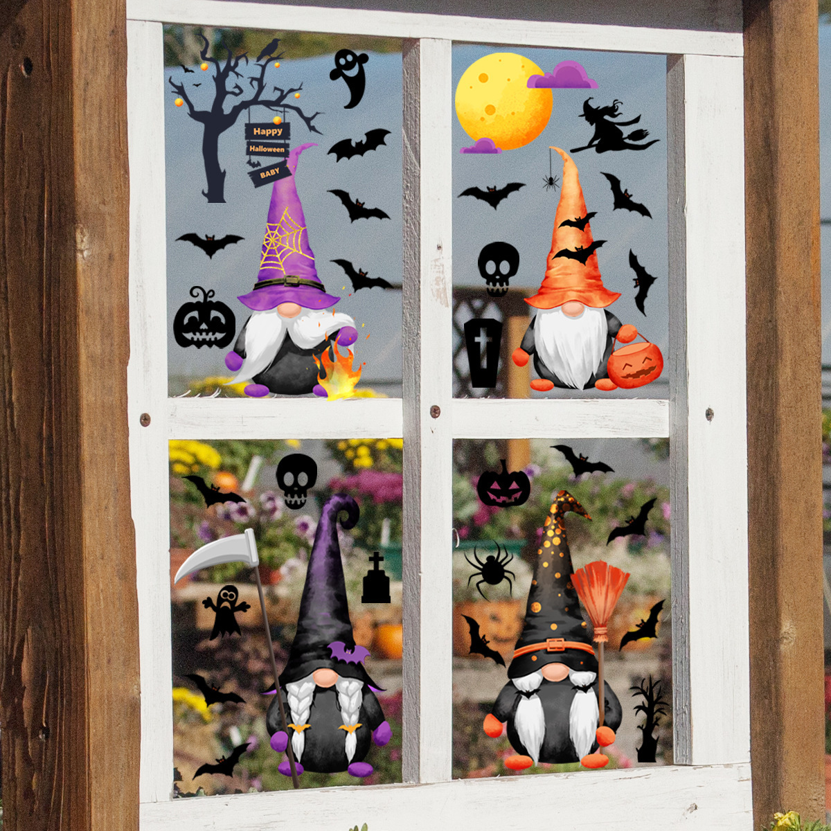 CT2021-KQ 새로운 할로윈 만화 난쟁이 박쥐 유리 정적 스티커 홈 장식 창조적 인 스티커스토어 가기