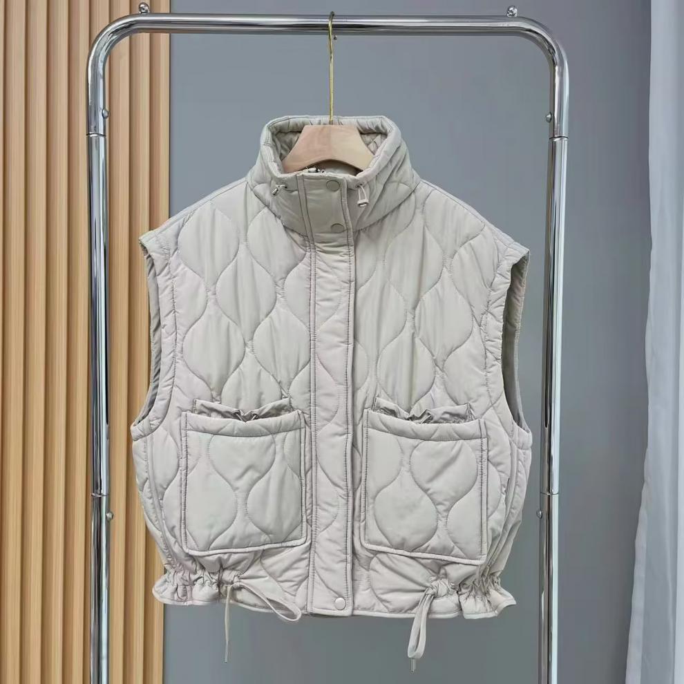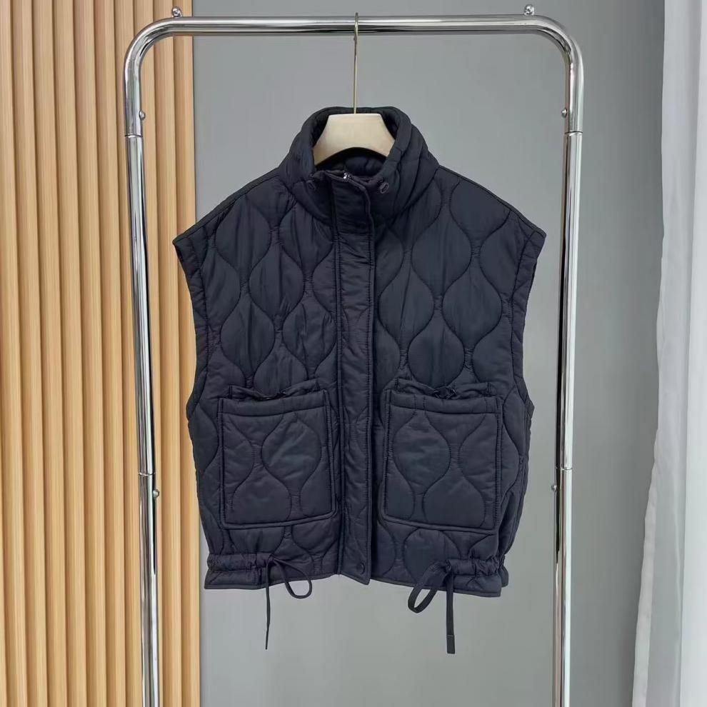 도매 해외 무역 2023 봄 새로운 여성 블랙 스탠드 칼라 가벼운 민소매 면 패딩 재킷 조끼 여성 탑 조수스토어 가기