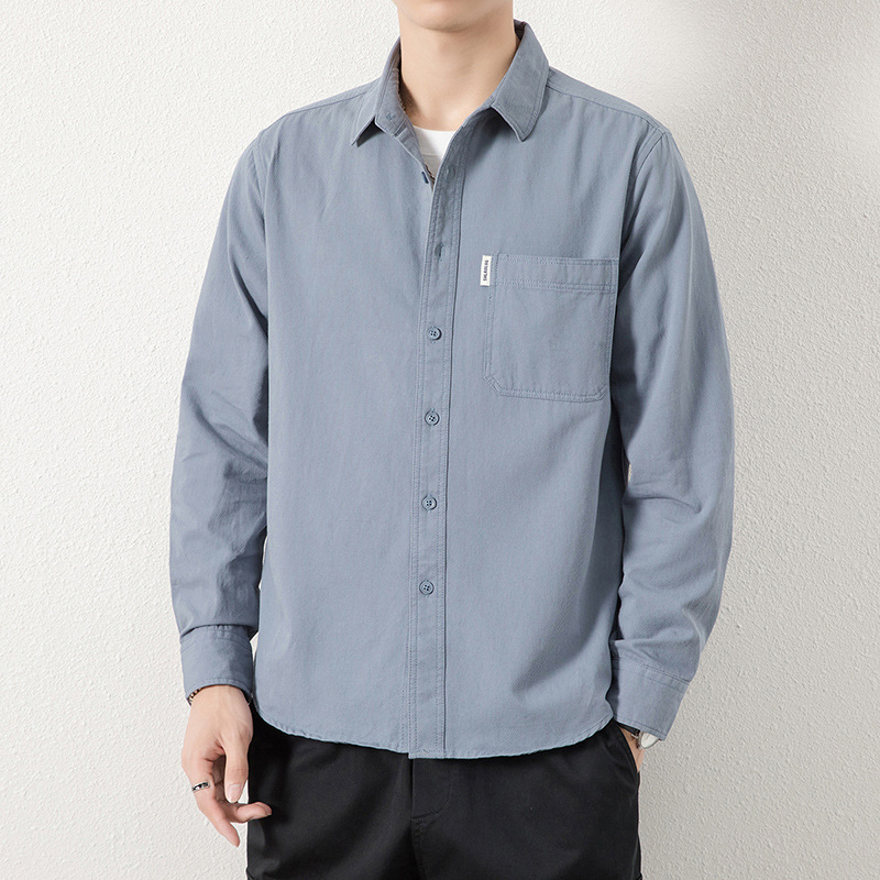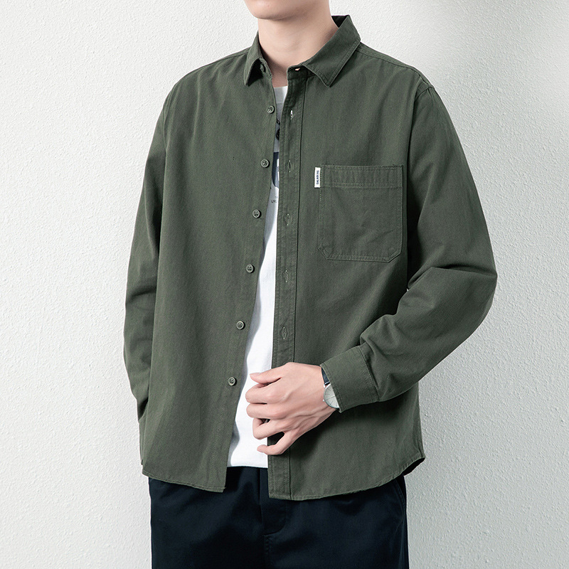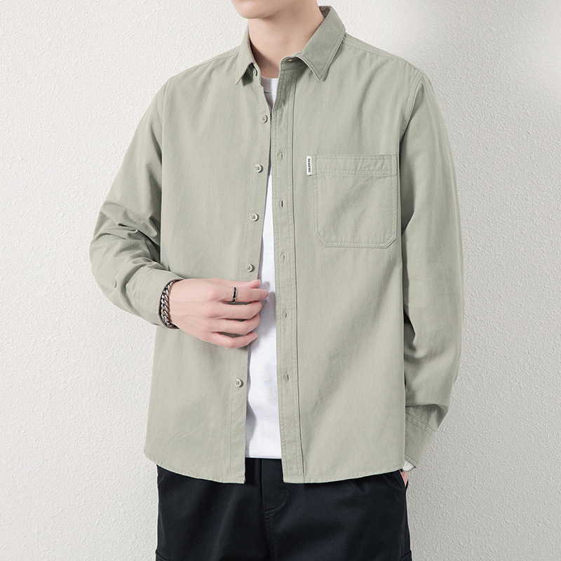 봄과 가을 새로운 남성 긴팔 셔츠 트렌디 한 루즈 캐주얼 워크 셔츠 자켓 워시 코튼 탑스토어 가기