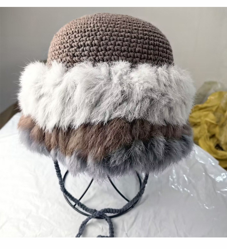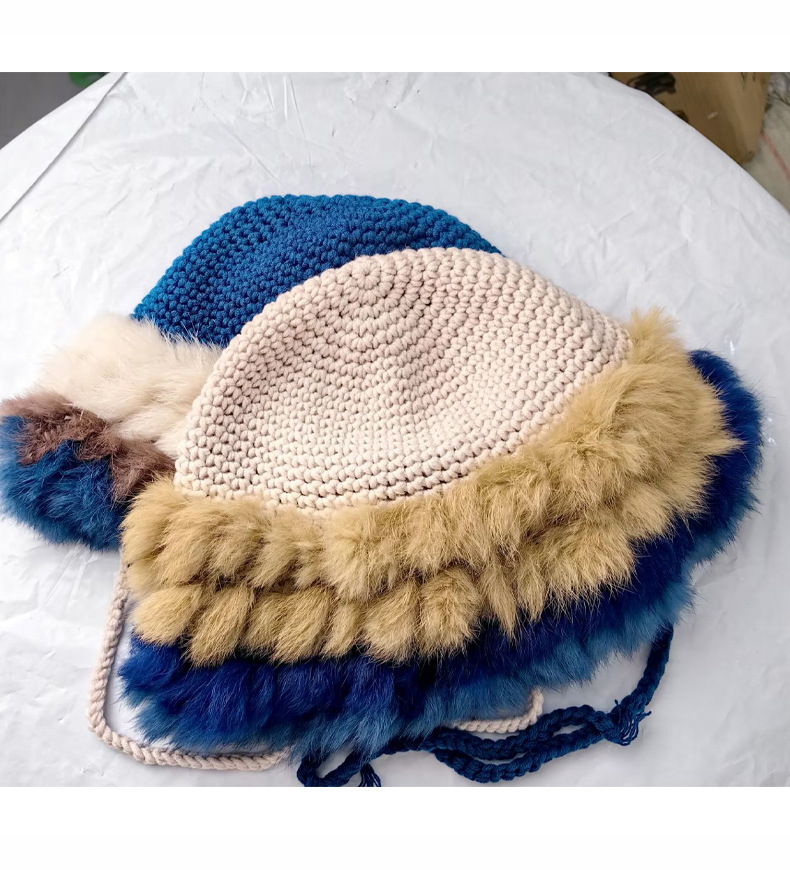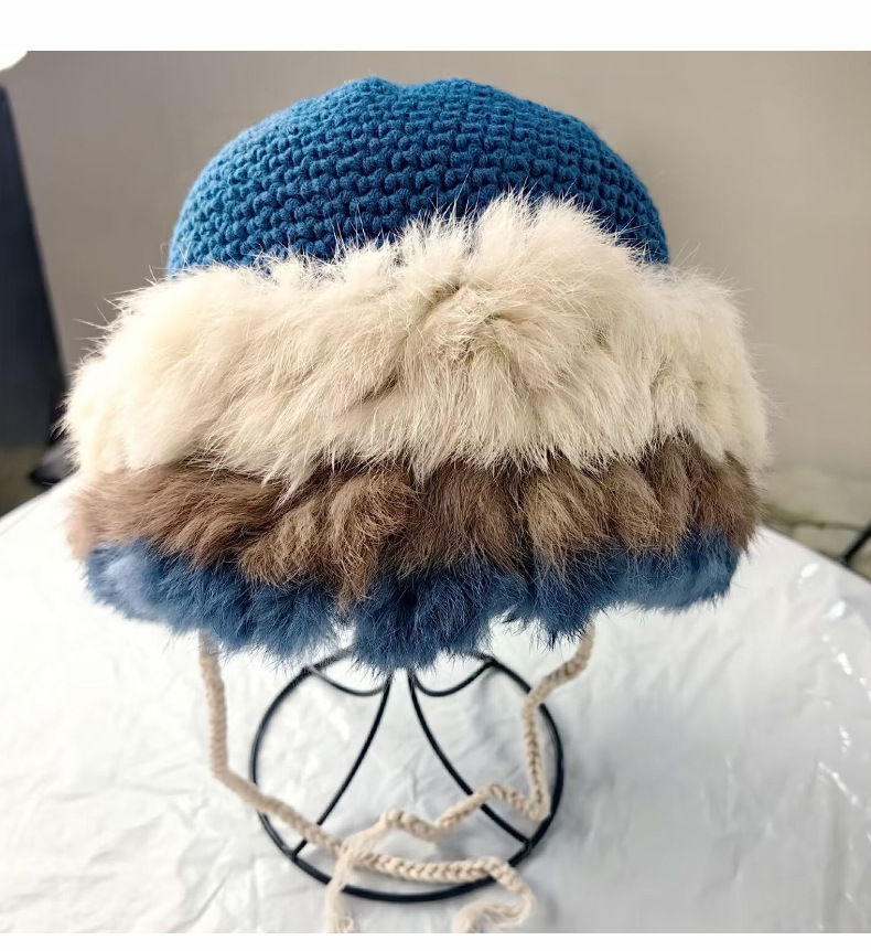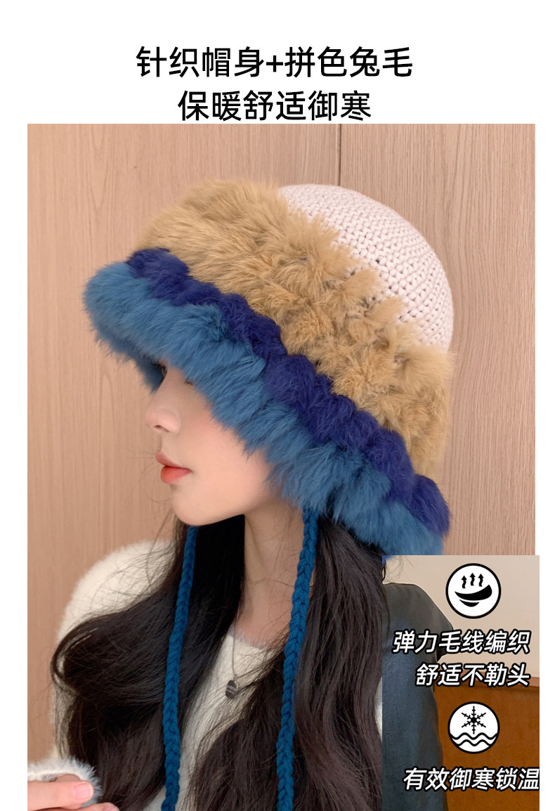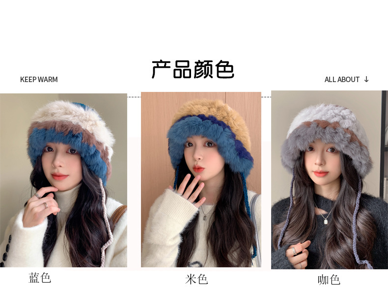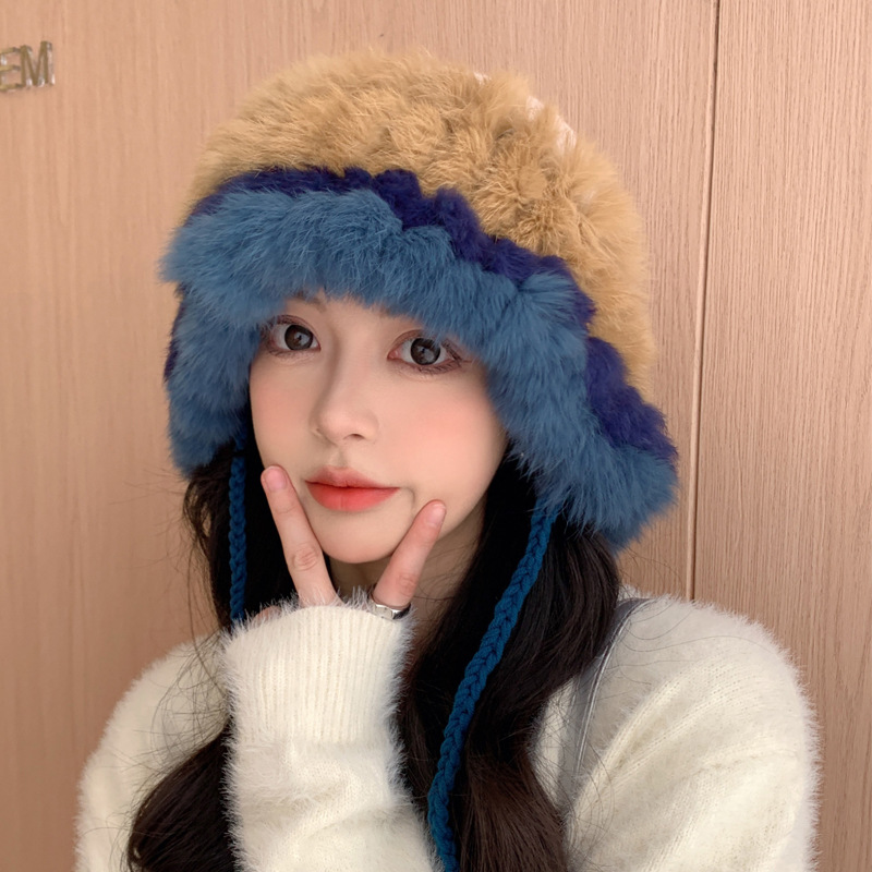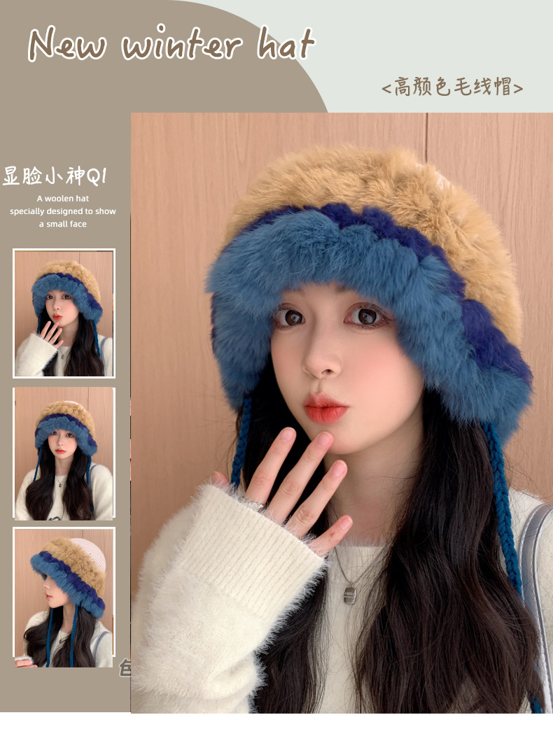 兔毛针织帽女秋冬季拼接保暖毛线帽韩版甜美可爱毛绒护耳包头帽子