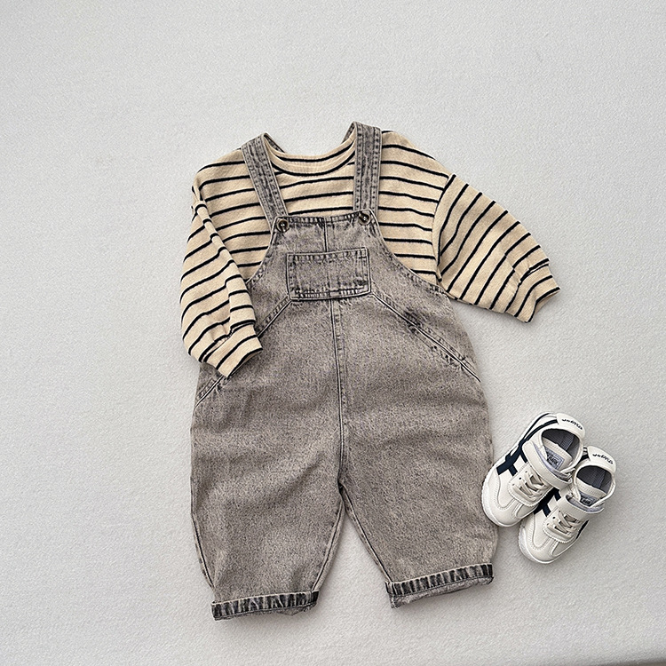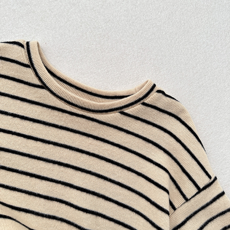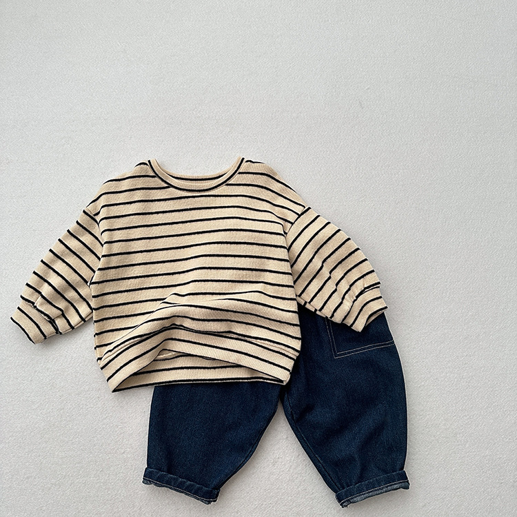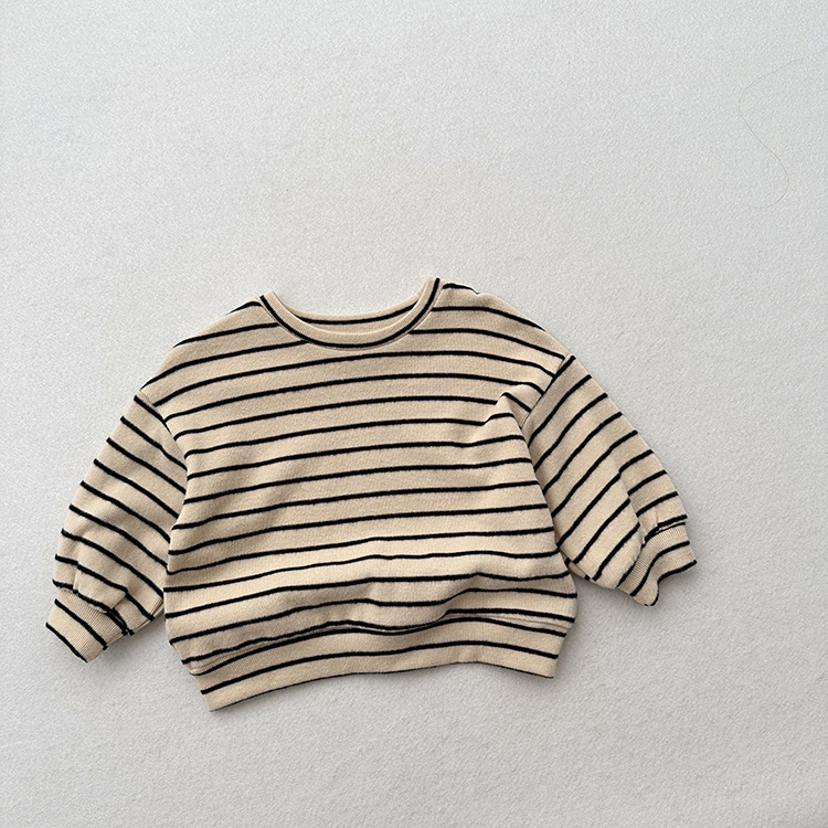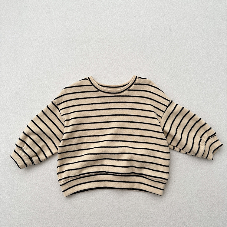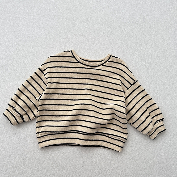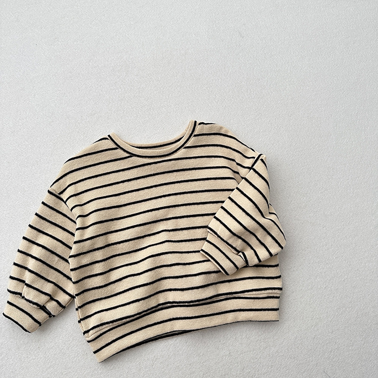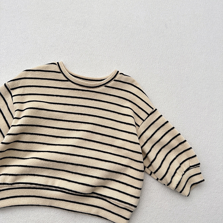 부드러운 하이 퀄리티 ~ 봄과 가을 어린이 샌딩 스트라이프 긴 소매 티셔츠 소년과 소녀를위한 느슨한 복고풍 일본 운동복