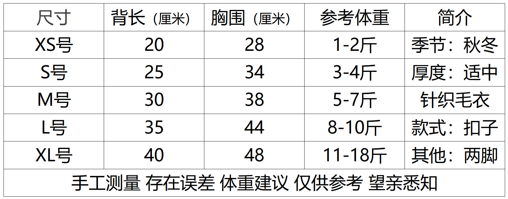 • XS 등 길이 20cm (권장 0.50 kg-1.00 kg