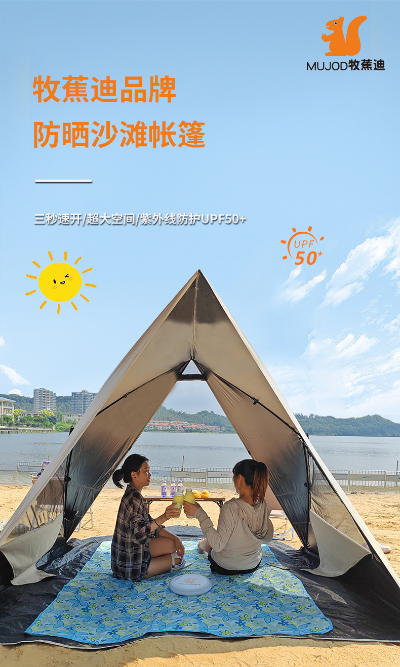 Mu Jiadi 야외 캠핑 공원 비치 텐트 차양 태양 보호 모기 보호 잔디 피크닉 휴대용 자동 퀵 오픈