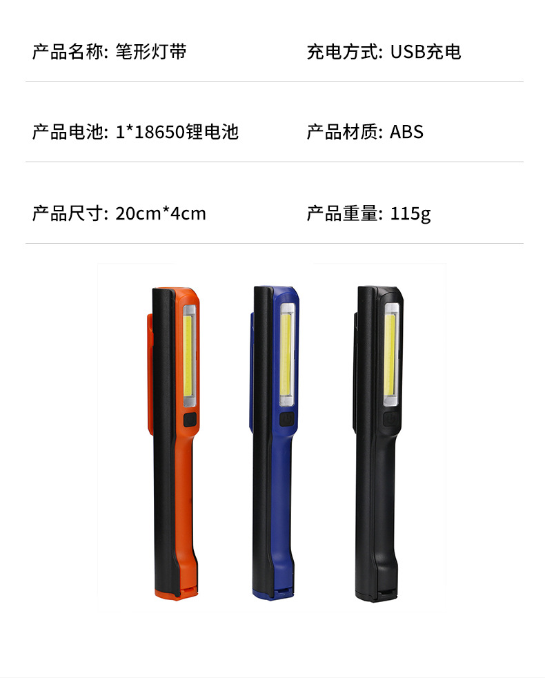크로스 보더 COB 내장 배터리 작업등 USB 충전식 펜 라이트 (펜 클립 포함) 유지 보수 조명 (자기 유지 보수 조명 포함)스토어 가기