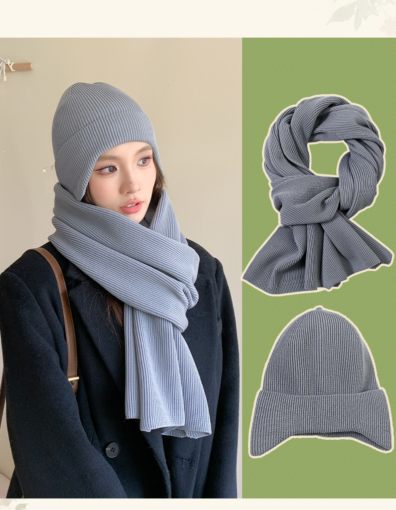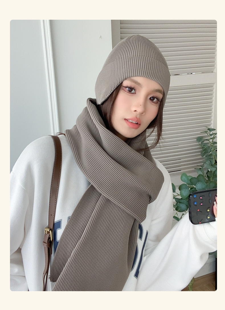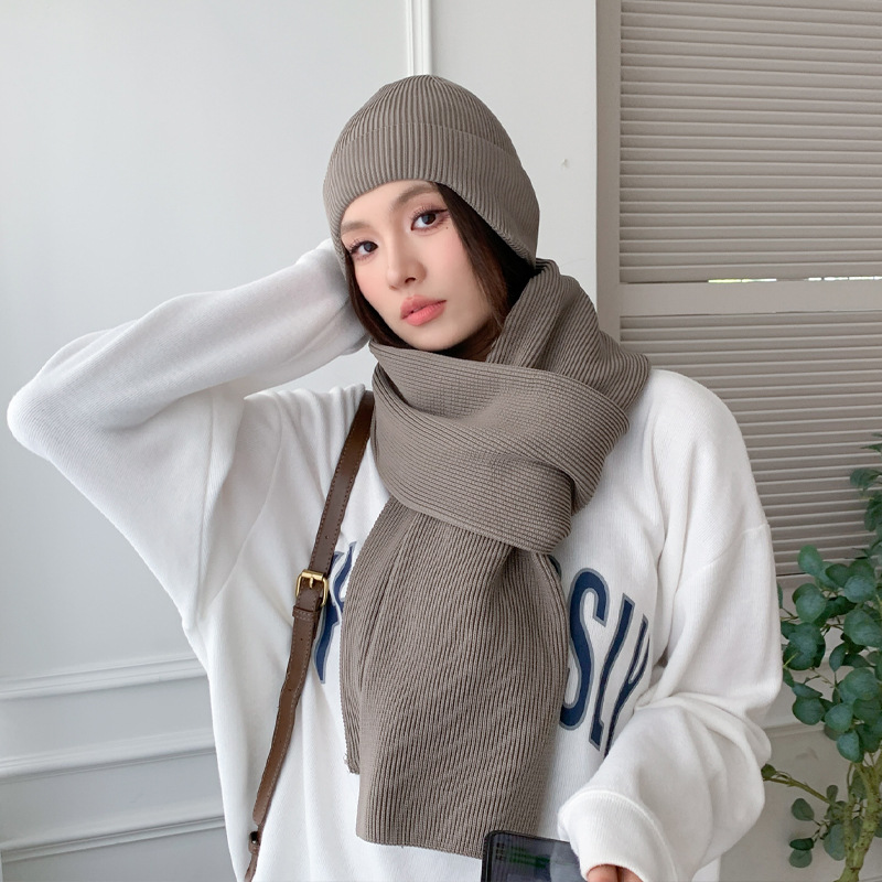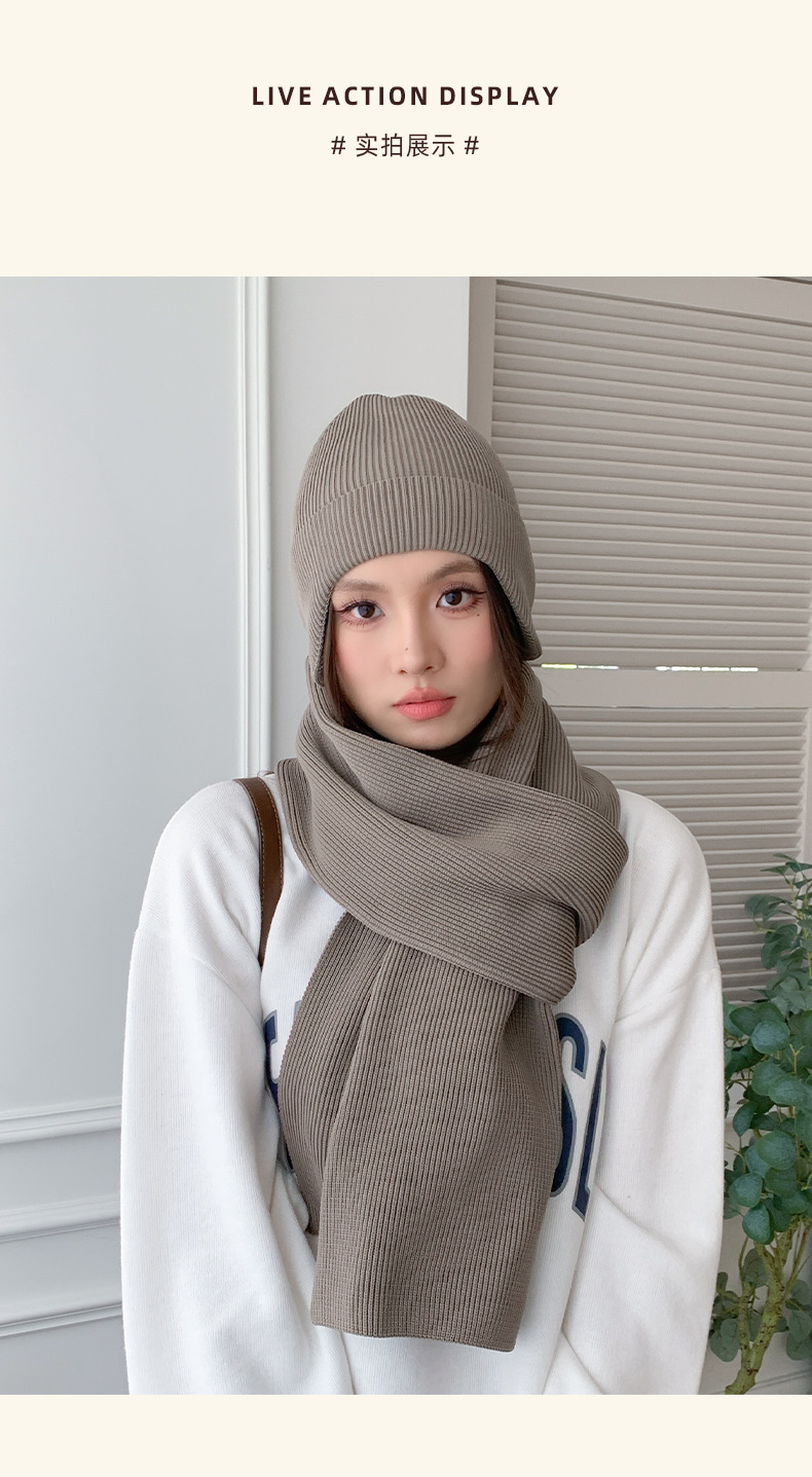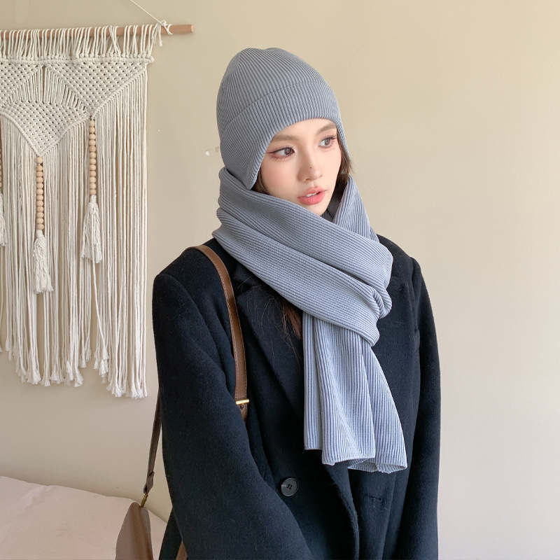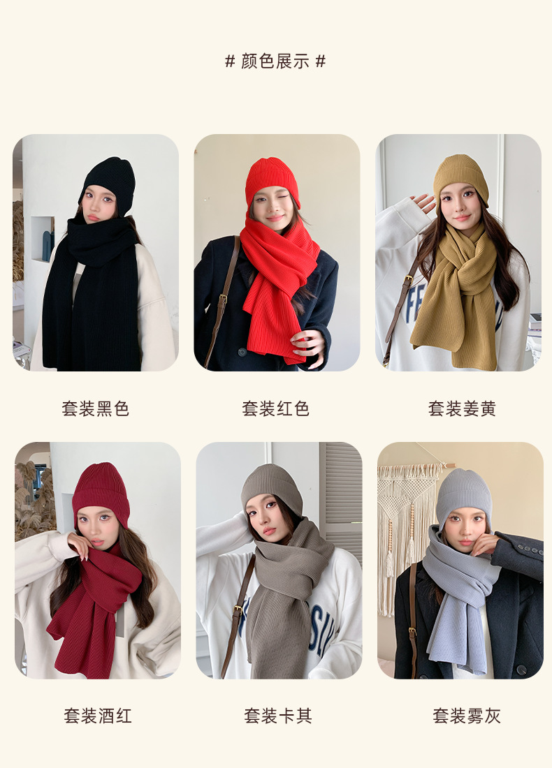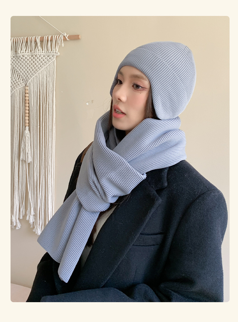 새로운 단색 니트 모자 스카프 투피스 세트 겨울 따뜻한 두꺼운 귀 보호 양모 모자 스카프 세트스토어 가기