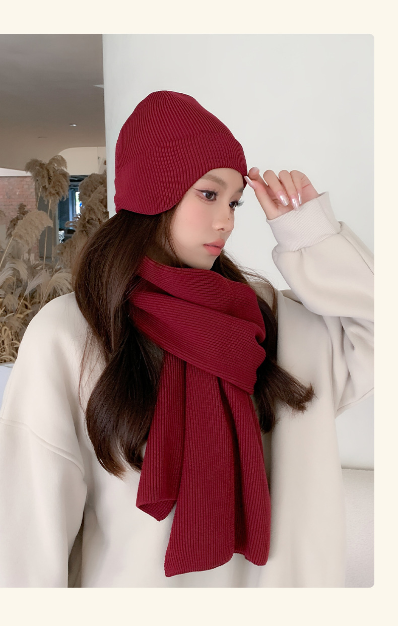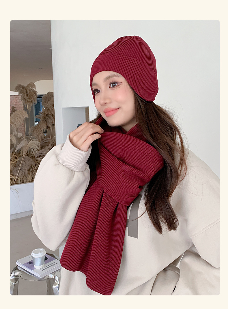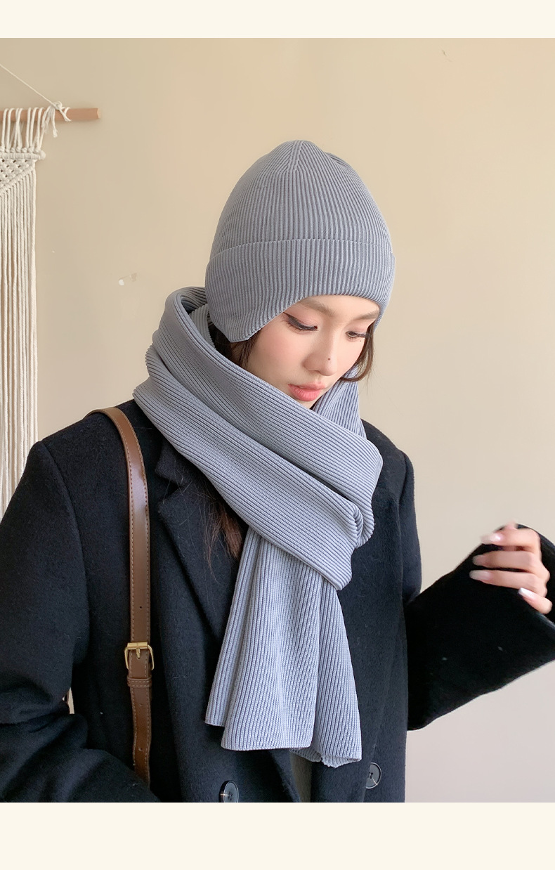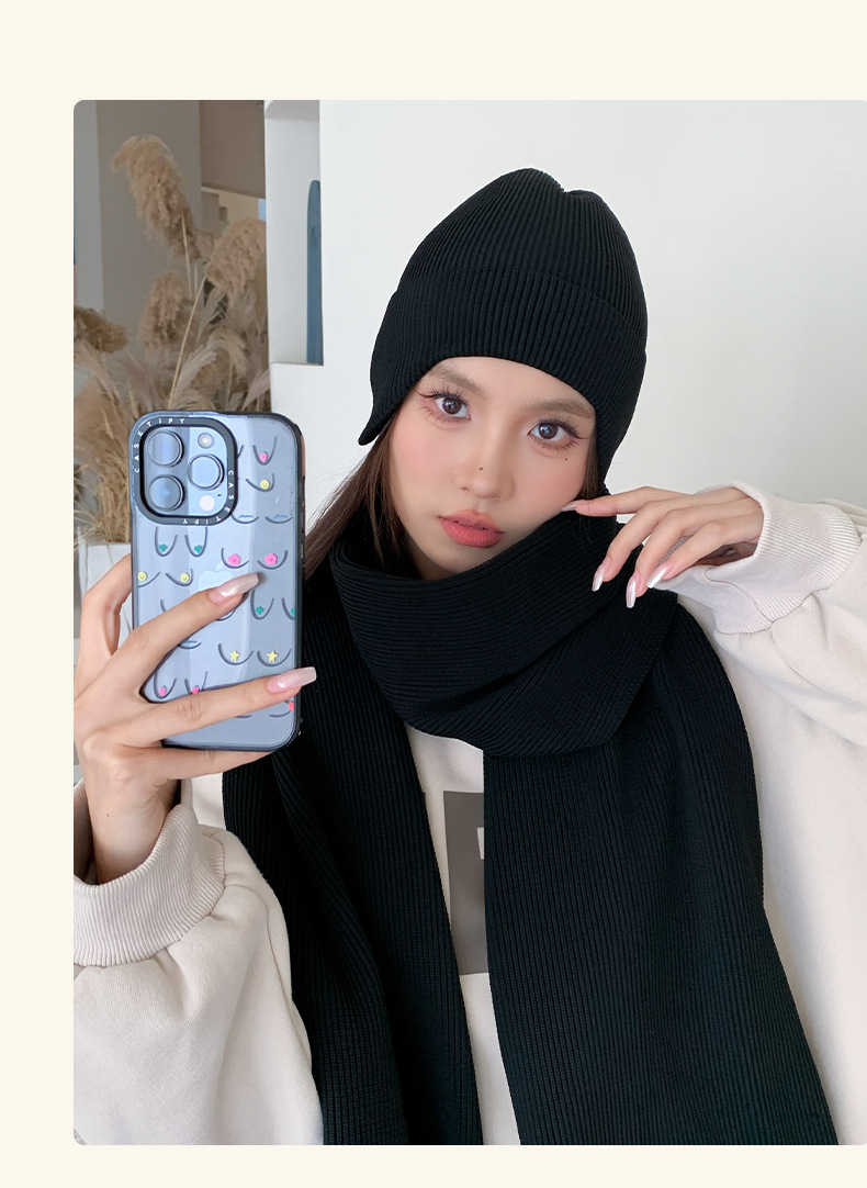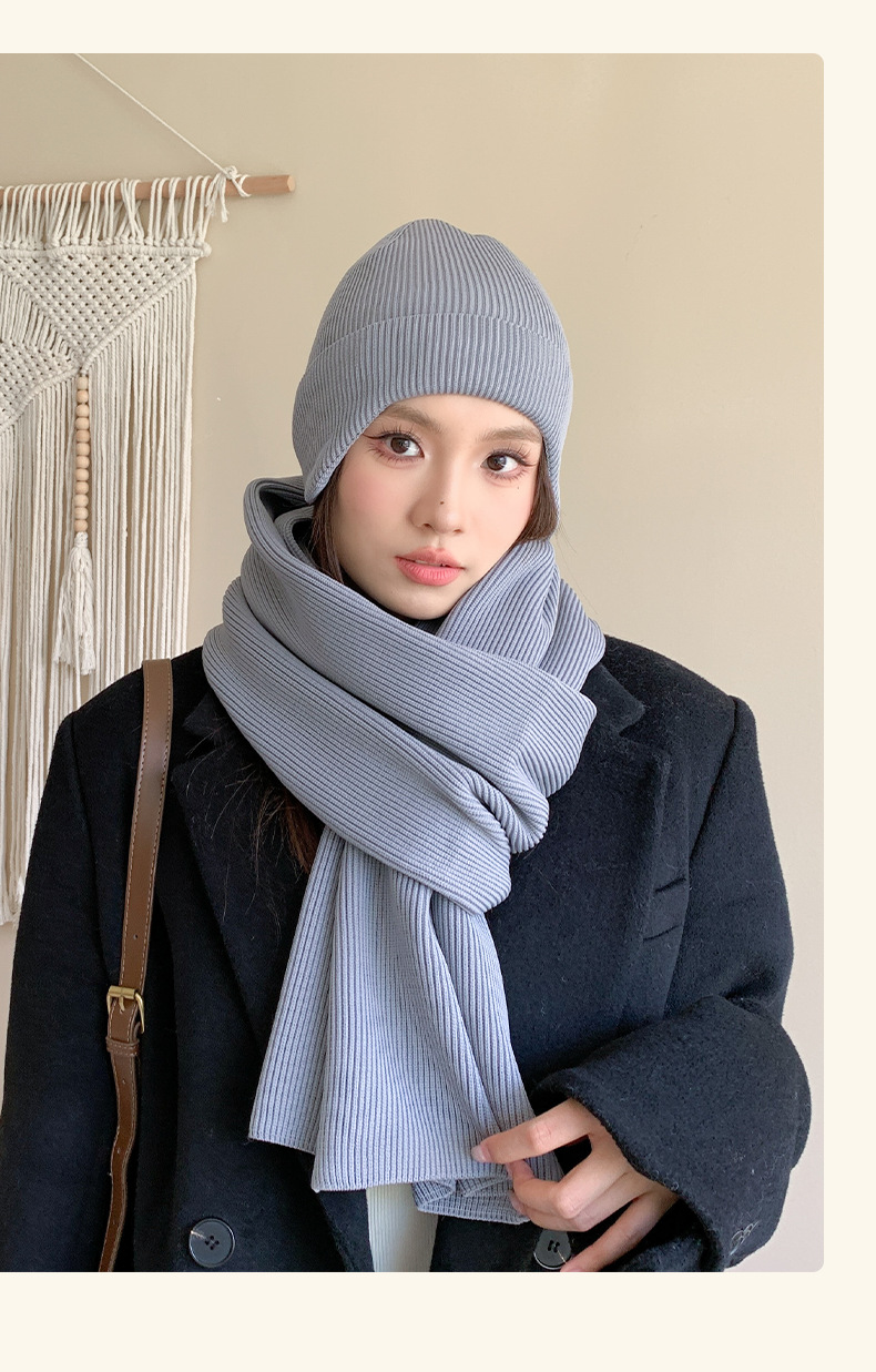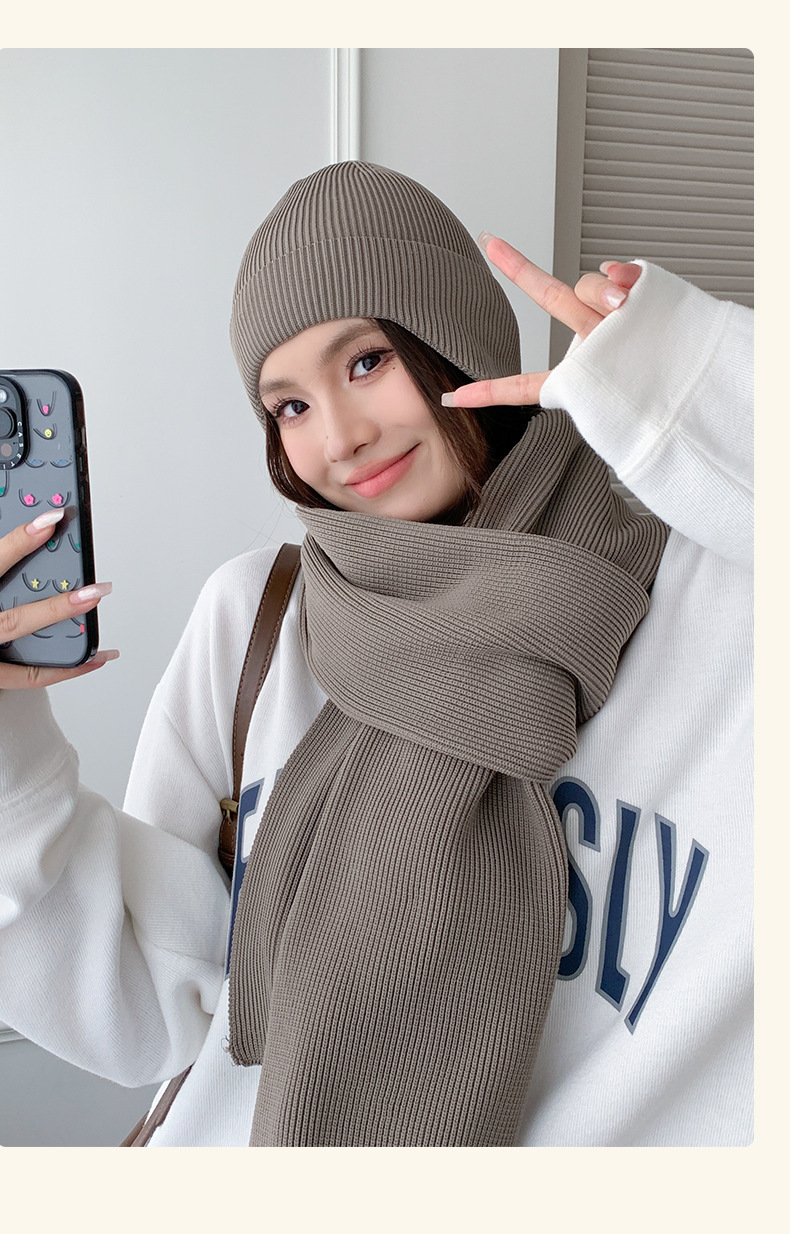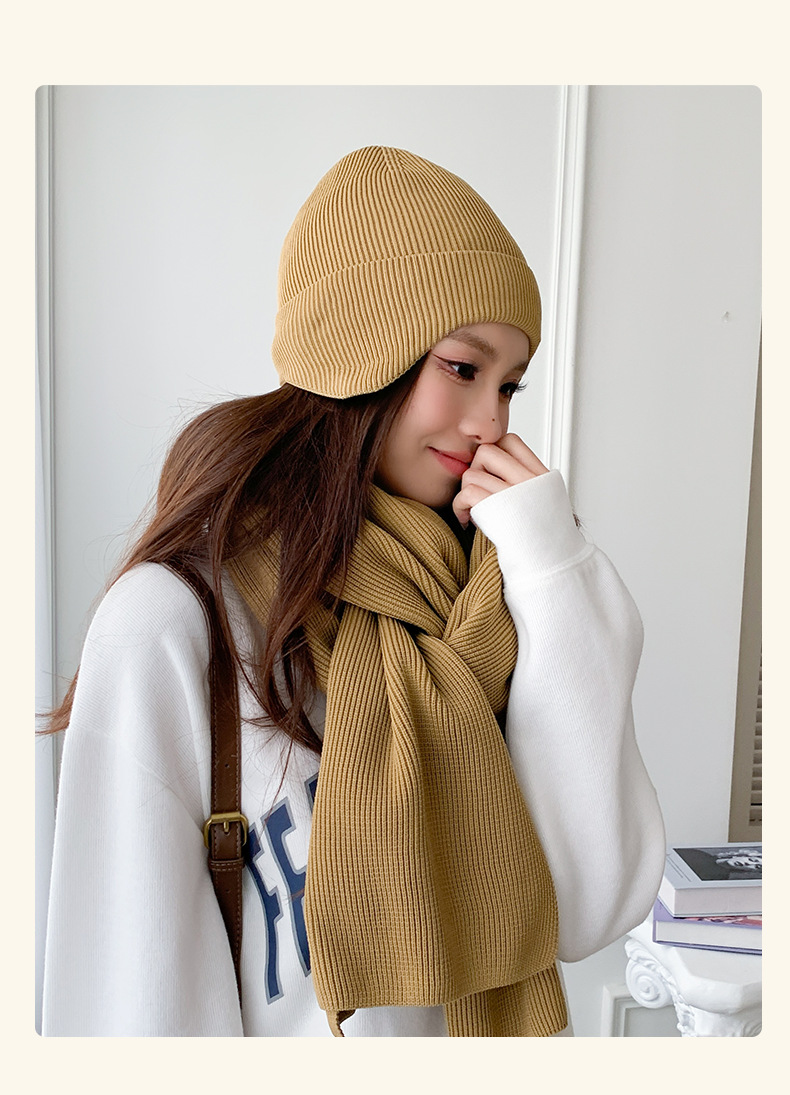 새로운 단색 니트 모자 스카프 투피스 세트 겨울 따뜻한 두꺼운 귀 보호 양모 모자 스카프 세트스토어 가기