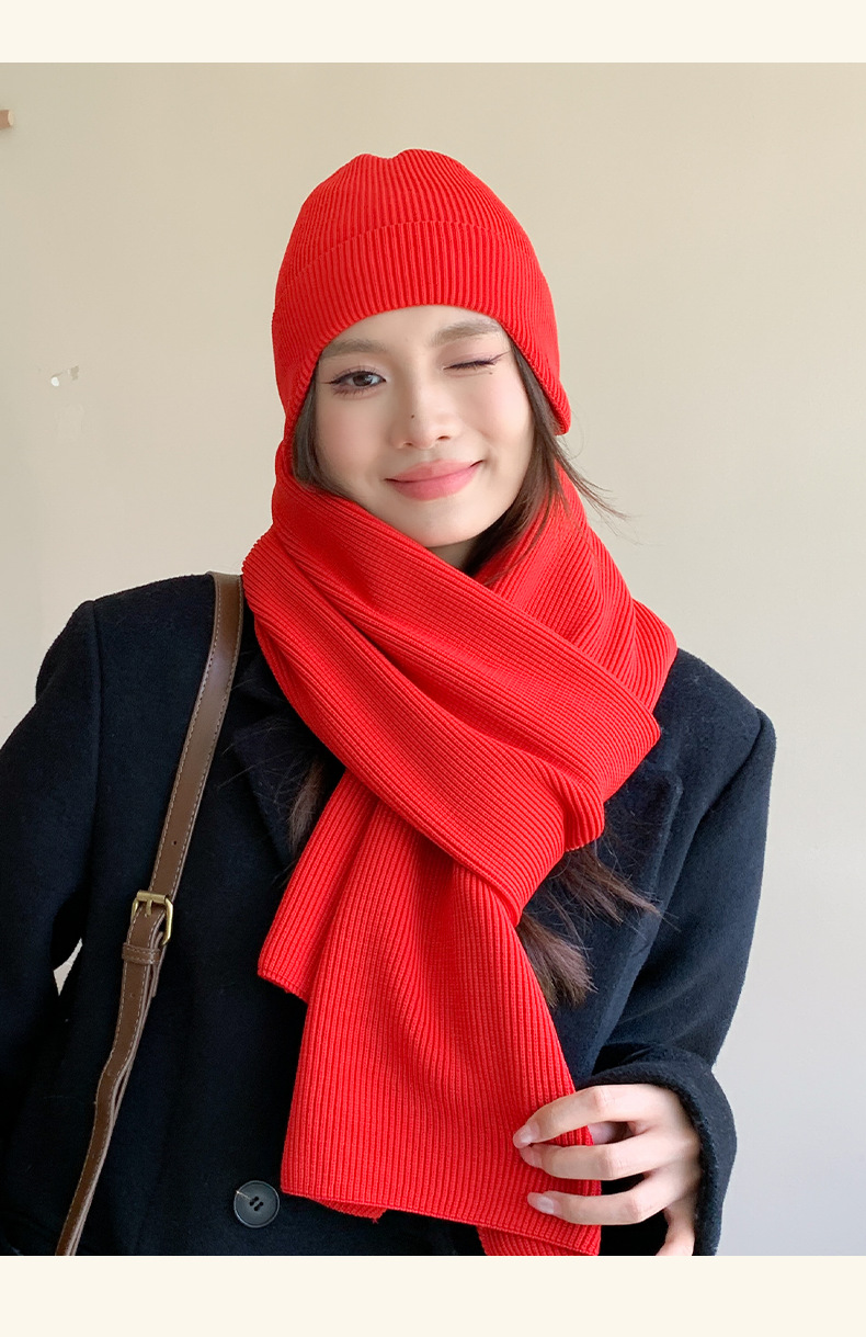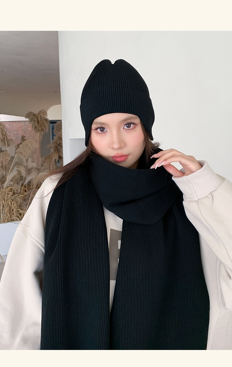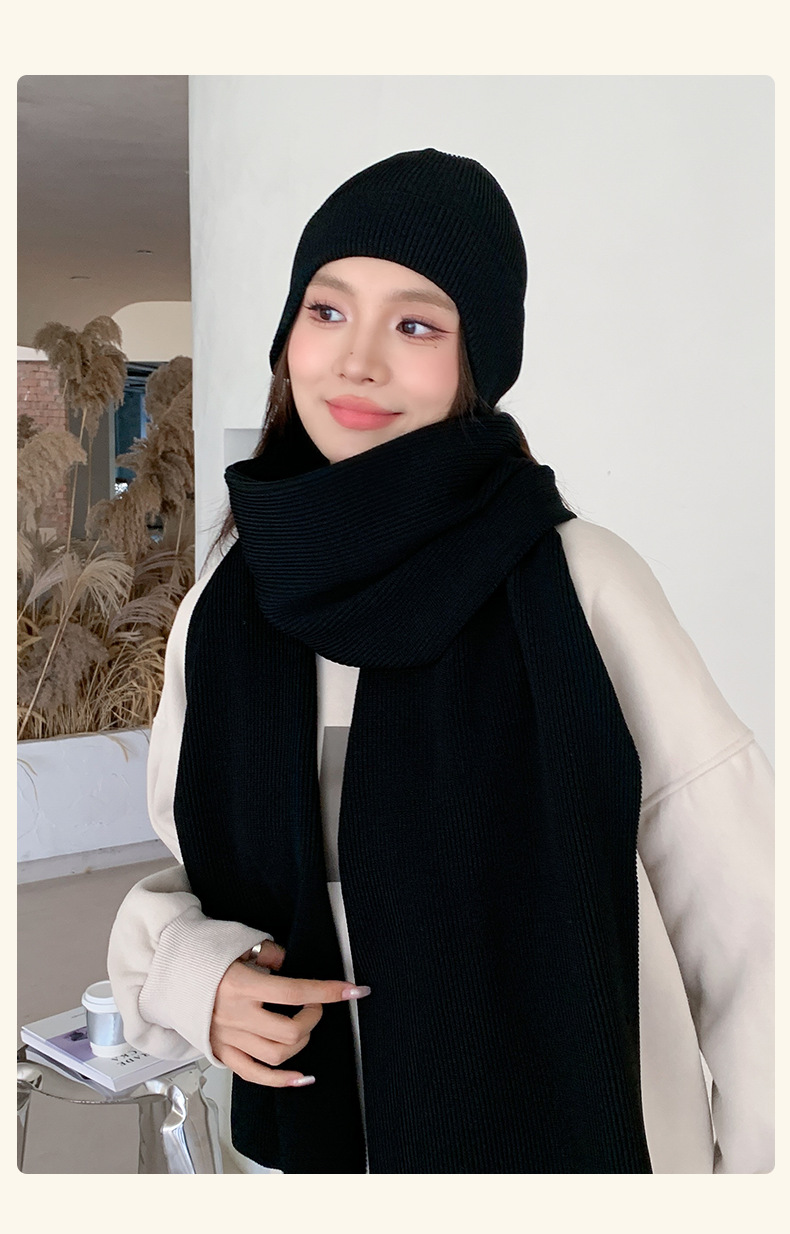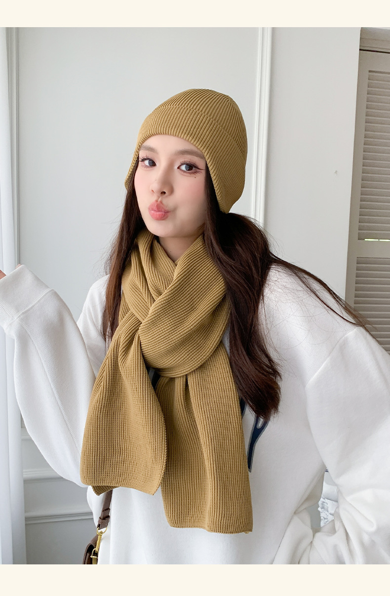 새로운 단색 니트 모자 스카프 투피스 세트 겨울 따뜻한 두꺼운 귀 보호 양모 모자 스카프 세트