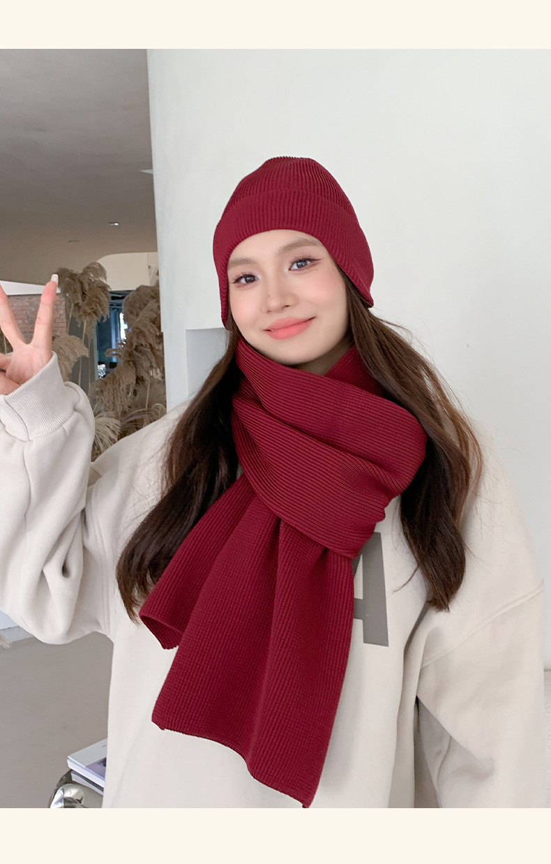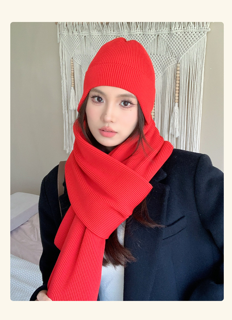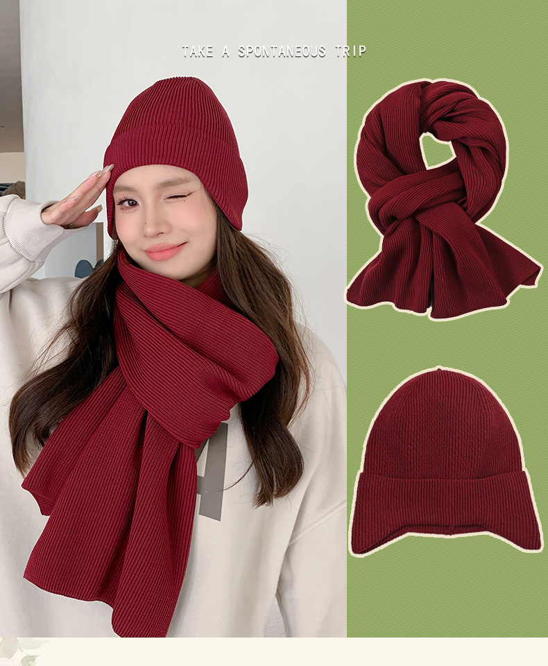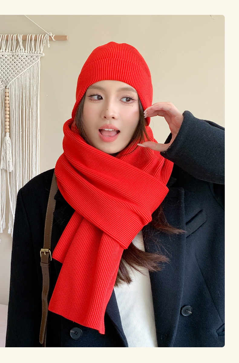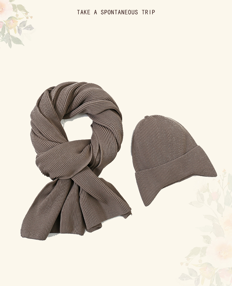 새로운 단색 니트 모자 스카프 투피스 세트 겨울 따뜻한 두꺼운 귀 보호 양모 모자 스카프 세트