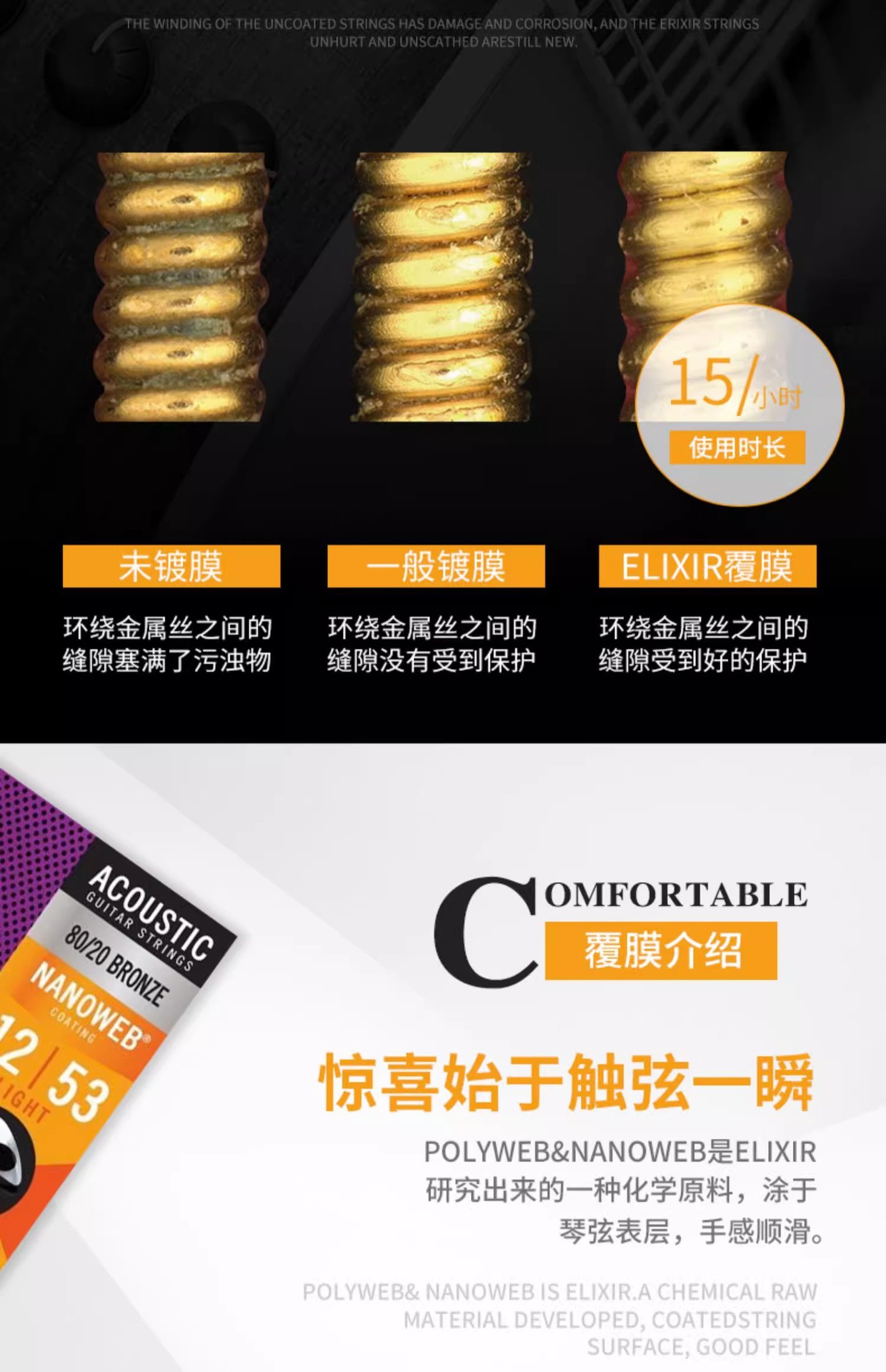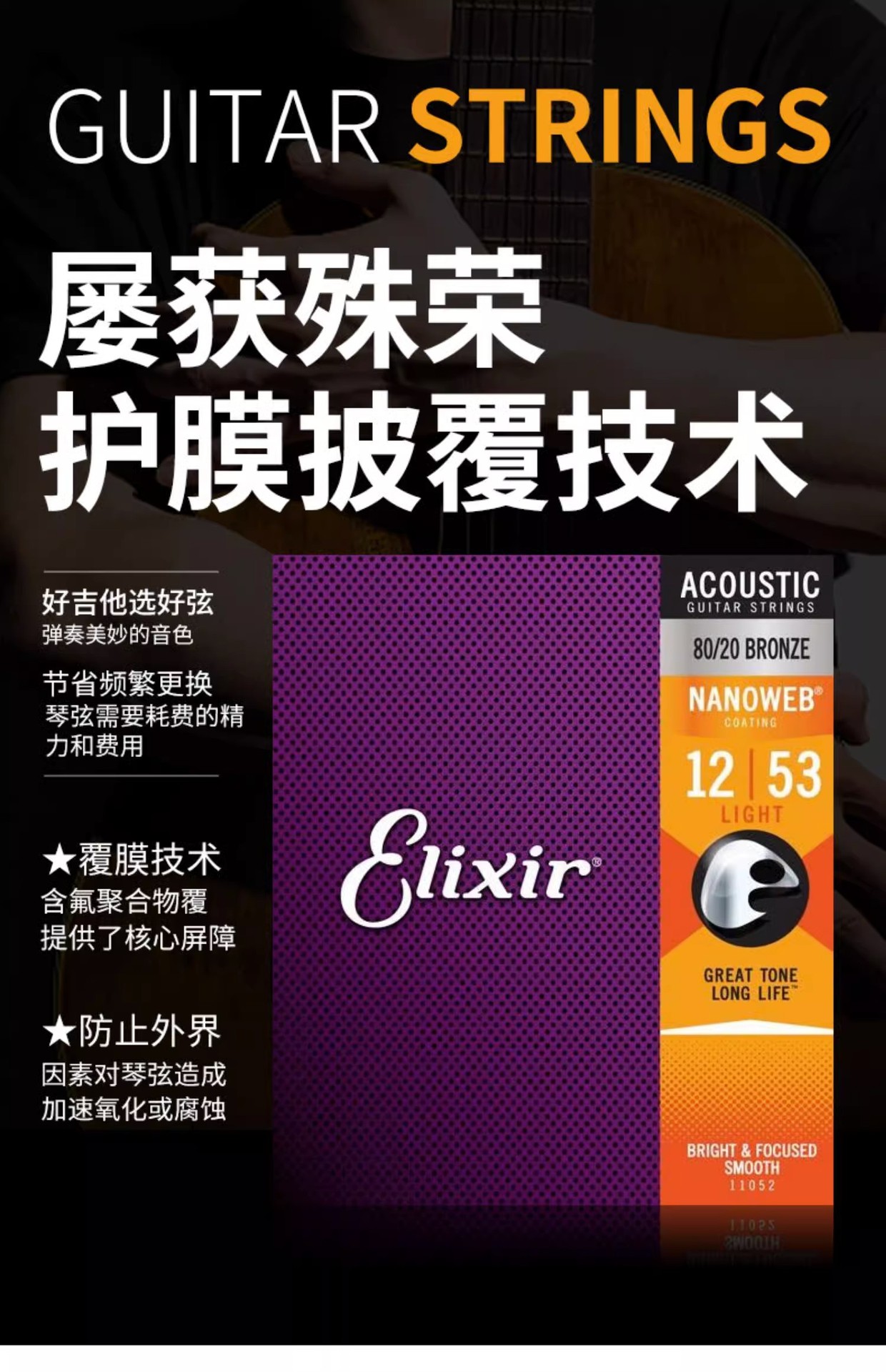 ELIXIR 기타 현 16052 ELIXIR 포크 우드 기타 현 6 개 세트 세트스토어 가기