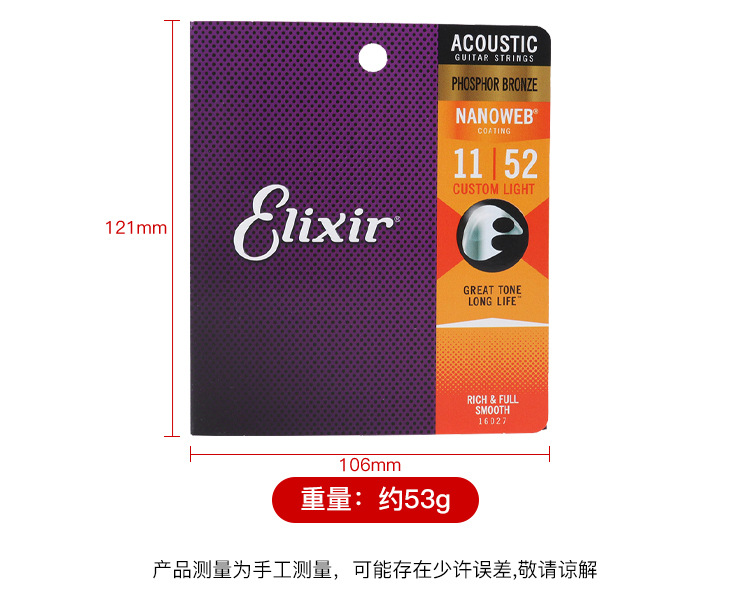 ELIXIR 기타 현 16052 ELIXIR 포크 우드 기타 현 6 개 세트 세트